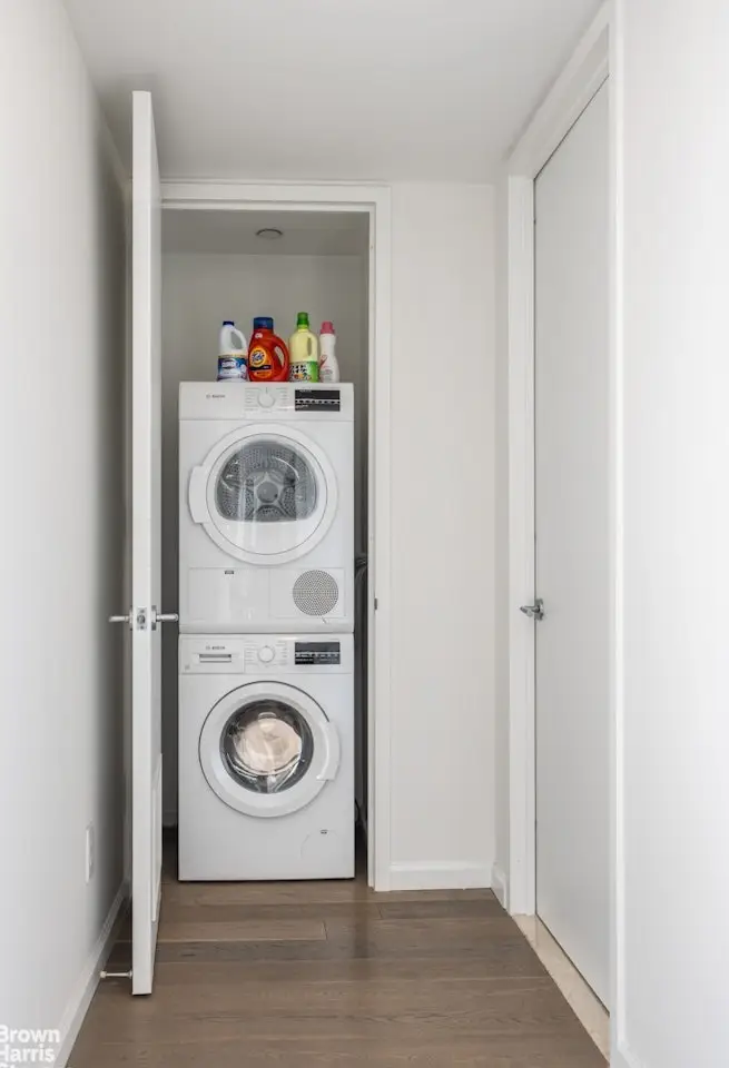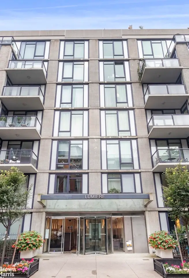 Two Bedroom Condo with Private Outdoor Space Close to Central Park Apartment 6J is a beautifully modern two bedroom residence located at 350 West 53rd Street. This residence features an open kitchen with a full stainless steel appliance suite, a brand new in-unit W/D, an abundance of closet space with motion-activated light bars, hardwood flooring throughout, and smart home capabilities including Wi-Fi controlled Lutron light switches and Wi-Fi controlled HVAC panels throughout. This apartment is a pin drop quiet split two bedroom that receives an abundance of natural light through its floor to ceiling south-facing windows. The entryway, complete with an expansive walk-in coat closet, leads to the open kitchen overlooking the sun-bathed living room and 25-foot south-facing private balcony beyond. The balcony extends from the living room to the primary bedroom. The living room features custom track lighting and the kitchen boasts Leucos fairy pendant lights over the large breakfast bar, marble countertop with under mounted sink, and a full suite of stainless-steel GE appliances - including refrigerator with built in ice maker, full size gas range stove and oven, and full-size dishwasher. Expanding the functional space of the kitchen is custom cabinetry with hardwood and glass shelving designed specifically to be incorporated into the existing wall. The separated layout of Apartment 6J ensures privacy for all occupants. The primary bedroom has an expansive ensuite bathroom that was completely remodeled down to the studs. The ensuite primary bathroom retained its five-fixture layout and features concrete Marilyn waterfall tiles, a stand-alone oversized soaking tub, luxurious shower and dual custom waterfall sinks. The second bedroom enjoys easy across the hall access to the second full five-fixture bathroom that includes a marble-topped double vanity, soaking tub, and spa glass shower. The brand new in-unit Bosch washer/dryer in its own dedicated closet is ideally located at the end of the hallway just outside of the second bedroom. This 7-story full service building at 350 West 53rd Street, known as the Lumiere for its iconic cherry blossom trees that remain illuminated throughout the year, was built in 2005. It was developed by Victor Homes and was designed by Gerner Kronick + Valcarel. 350 West 53rd Street, situated mid-block between 8th and 9th Avenue, is pet-friendly, has an attractive fenestration pattern of floor-to-ceiling windows, a full-time doorman/concierge service, a live-in superintendent, refrigerated storage, a fitness room, individual storage units, bicycle storage and many balconies. There is also a garden for all residents in the rear of the building. Please note the currently advertised real estate taxes reflect primary resident use.