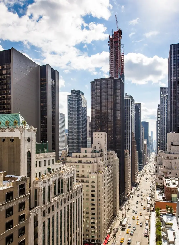 Welcome to Residence 22H at the grand and luxurious 106 Central Park South-a beautifully proportioned 2-bedroom, 2.5-bathroom home with sweeping city views and brilliant natural light from southern, eastern, and western exposures. This spacious 1,581 Sq. Ft. residence opens with a gracious foyer, complete with a stylish powder room and a serene, tucked-away primary suite featuring a windowed five-fixture marble bathroom and generous closet space. Down the entry hall, a modern, Welcome to Residence 22H at the grand and luxurious 106 Central Park South-a beautifully proportioned 2-bedroom, 2.5-bathroom home with sweeping city views and brilliant natural light from southern, eastern, and western exposures. This spacious 1,581 Sq. Ft. residence opens with a gracious foyer, complete with a stylish powder room and a serene, tucked-away primary suite featuring a windowed five-fixture marble bathroom and generous closet space. Down the entry hall, a modern, open-concept kitchen offers a sleek breakfast bar, ample cabinetry, and an in-unit washer/dryer for ultimate convenience. Anchoring the home is the expansive 38-foot living and dining room, perfect for entertaining or relaxing, with high ceilings, warm wood floors, a gas fireplace, and oversized south-facing windows that frame a dazzling view down Sixth Avenue-all the way to One World Trade. Enjoy two charming 66 Sq. Ft. terraces perched at each corner, ideal for morning coffee or evening cocktails with city skyline backdrops. The second bedroom, located on the east side of the home, also boasts impressive city views, an en-suite bathroom, and a large walk-in closet-offering privacy and comfort for guests or family. Originally built in the 1920s as a hotel and transformed in the late 1980s, 106 Central Park South remains one of Manhattan's most distinguished white-glove condominiums. Residents enjoy a full suite of luxury amenities including 24-hour doorman and concierge, valet garage, on-site porters, security, basement storage, central laundry, and optional housekeeping services. Perfectly positioned at the edge of Central Park, with the best of Midtown at your doorstep-world-class dining, flagship shopping, cultural landmarks, and top hotels-this address offers unmatched convenience in a timeless setting. Investor-friendly and welcoming to international and corporate buyers. Purchases via trust or LLC are permitted. Please note: pets are not allowed.