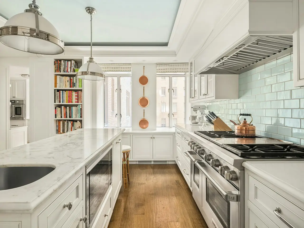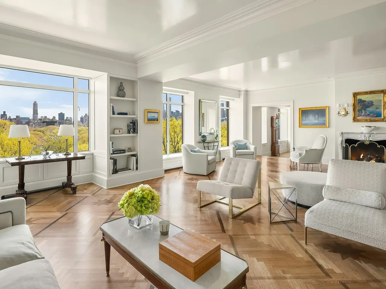 Triple Mint 5 Bedrooms Overlooking Central Park A once-in-a-lifetime opportunity awaits! Now offered: a 6000 SF rare combination of two Central Park-facing apartments, meticulously renovated with 100 running feet of windowed exposure on Central Park in The Majestic, one of the most desirable Central Park West co-ops. Originally 15, now 14 rooms, this townhouse-sized above-the-trees dreamy home has unmatched entertaining space balanced with 5 bedrooms (4 en suite) creating the perfect space for serene private living. Featuring breathtaking, unobscured views of Central Park, the City skyline and open exposures east and north and a south-side angle, this spectacularly renovated space has walls of monumental picture windows-rare among CPW cooperatives-flooding the interiors with dazzling natural light all day long. Perfect for entertaining, Thanksgiving Day parade viewing, fireworks and simply enjoying the changing seasons in Central Park, 9EF is without equal. There is truly nothing else like it on the market-a rare combination of scale, pre-war pedigree and move-in ready condition, saving you the cost, time and psychic energy of a renovation. Public Rooms - Unmatched Entertaining Space Park-facing double living room with wood-burning fireplace Park-facing library with coffered ceilings and wood-burning fireplace Park-facing study-a serene retreat for work or relaxation Formal square dining room with east-facing exposures and bespoke built-ins Plush media room with surround sound Full bar with liquor storage and refrigerator/freezer drawers Bedroom Suites Two spectacular primary suites, each with direct Central Park views: Corner "Solarium" Primary Suite: Flooded with light, featuring a glass-corner solarium, extensive built-ins, cedar-lined closets, walk-in closet, and luxurious en suite bathroom with cast-iron soaking tub and separate stall shower Second Primary Suite: A quiet haven with a park-facing picture window, Bain Ultra tub overlooking Central Park, a Jacuzzi Clearlight Sanctuary 2 sauna, and radiant-heated floors Additional Bedrooms Two additional bedrooms, each with en suite baths (one with steam shower), walk-in closets, and custom cabinetry A fifth flexible bedroom or study with en suite bath and tailored storage Chef's Kitchen - A Culinary Masterpiece Spanning three rooms, the chef's kitchen was designed to delight culinary enthusiasts: Gourmet kitchen with two Sub-Zero refrigerators, three Bosch dishwashers, Wolf 6-burner vented gas range with grill and dual ovens, Blue Star French door electric oven, Wolf warming drawer & microwave, plus a dedicated baking station Breakfast area with coffee bar and refrigerator/freezer drawers Bread drawers Walk-in pantry Built-in wine bar with 60-bottle Sub-Zero wine fridge Exceptional Details & Amenities Powder room, washer/dryer Extensive automation and audio-visual systems All closets cedar-lined with built-in outlets Central air conditioning with four-zone humidifiers All-new double-insulated windows & cast-iron radiators Extensive millwork, custom moldings, and hidden storage The Majestic 24/7 doormen and concierge Newly renovated gym with state-of-the-art equipment Rooftop solarium with all-weather teak furniture and dining table Remote work space Newly renovated children's playroom On-site Managing Agent & Live-in Resident Manager Attended elevators Mail delivered to the door Cold storage available Storage rooms (monthly fee) and bike room Laundry room with commercial-size machines Co-Exclusive