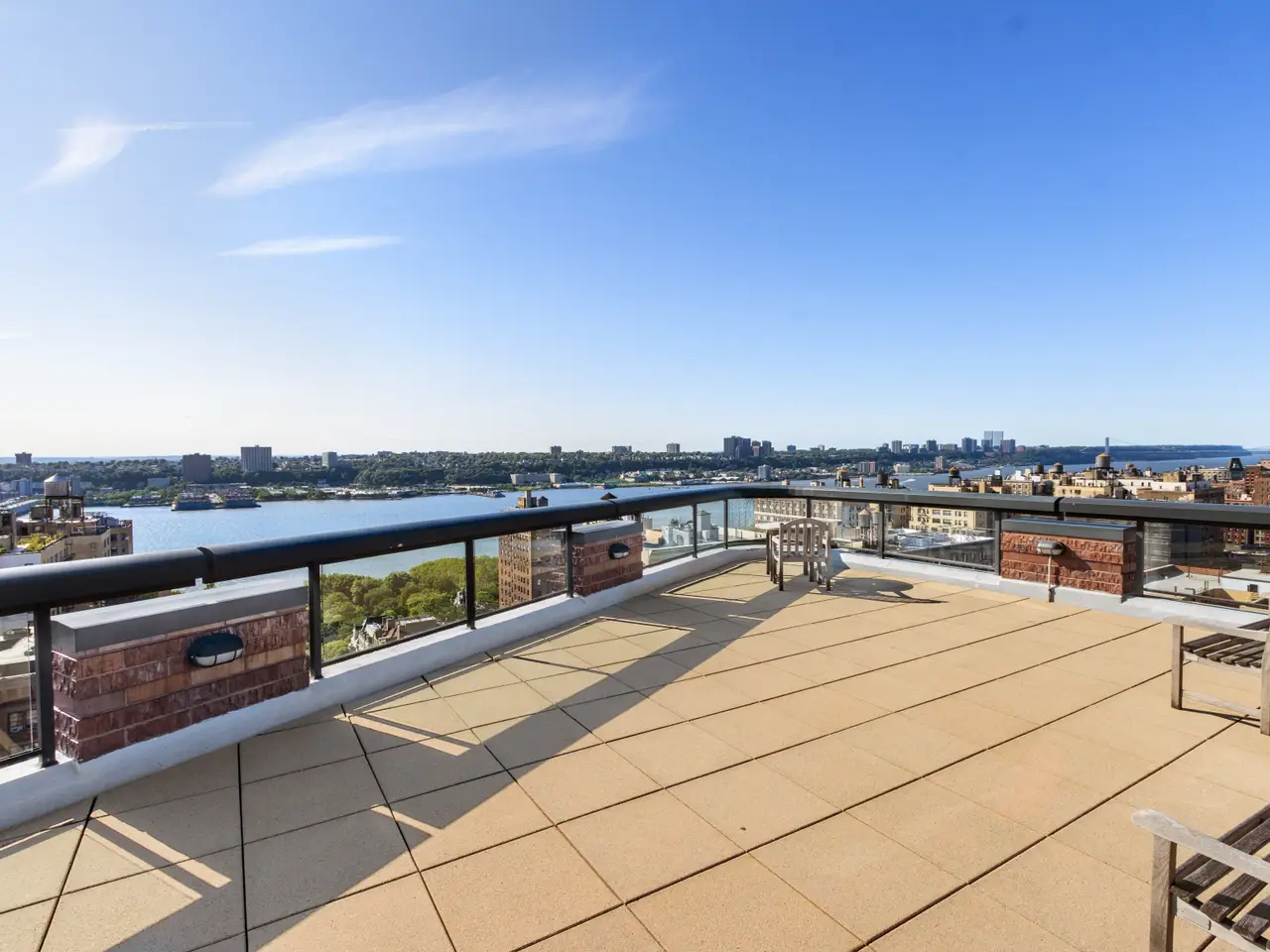Enjoy sunsets and river views from this two-bedroom home facing west over Straus Park and the Hudson River beyond. The gracious layout of this home features a proper entrance foyer, an oversized and renovated chef's kitchen, split bedrooms, a proper laundry room and a generous amount of closet space. Situated perfectly on the 12th floor, apartment 12B has dramatic floor-to-ceiling windows in the living room and oversized windows in both of the bedrooms, providing a tremendous amount of sunlight and space that transition to stunning twilight as the day turns to evening. The chef's kitchen was recently renovated and features exceptionally spacious Quartzite counters and custom cabinetry with Viking and Thermador appliances. Both bathrooms are in pristine condition with fixtures and finishes of the highest quality. There are custom and tasteful built-ins in both bedrooms and there is a five-zone central HVAC system. The Straus Park Condominium, built in 2005 is a full-service luxury condominium. This is an intimate 22-story building with 64 units and only four apartments per floor. There is an incredible landscaped and furnished rooftop terrace with breathtaking and sweeping views of the Hudson River, George Washington Bridge and midtown and lower Manhattan. There is a gym and playroom on the third floor with an additional landscaped and furnished terrace. A block from Riverside Park and the Hudson River Greenway, West 107th Street is a quiet and pretty block. It is most convenient to subways, buses and all of the wonderful stores and restaurants that make the West 100's such a desirable part of the Upper West Side. The Straus Park Condominium is well managed with incredibly sound financials. The hallways have just been renovated and the lobby will be renovated shortly with no existing or upcoming assessments. Pets are welcome.