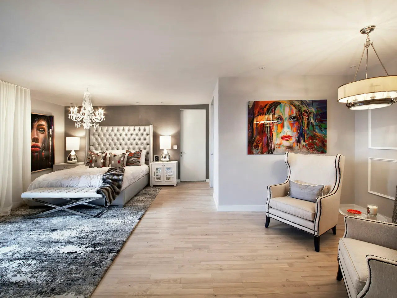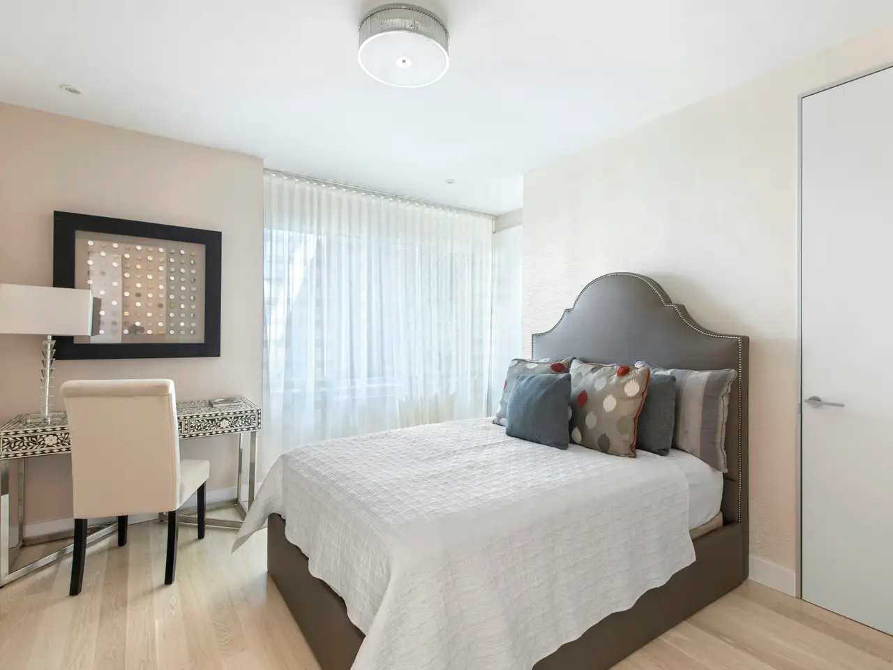 Unique furnished three bedroom, three bath penthouse on the 57th floor with high ceilings and floor to ceiling windows. Central A/C in living area. Beautifully designed, furnishings by Dahari Designs from Florida. The contemporary design includes sheer drapery, chandeliers, recessed lighting, high end custom beddings, and bright colorful artwork. The living room has been recently updated with new furnishings, and the entire floor is brand new oak wood. Magnificent views of Central Park, the GW Bridge, the Hudson River, and views to the east. The Sheffield is neighbor to all the new towers lining 57th St including the new Nordstrom Towers. The huge living room is on the north/east corner with an open kitchen, perfect for entertaining. All high end appliances such as double Miele oven, large Sub Zero refrigerator, Bosch dishwasher and wine cooler are integrated into the Poliform kitchen cabinets with glass doors on top. Included is a huge walk in closet as well as ample other closets throughout the apartment, all well outfitted for maximum storage. There is a Washer and Dryer, and all bedroom windows have black out shades for your comfort. Each of the three bathrooms has a separate shower stalls. The penthouse includes use of the 24,000 sq. ft. of amenity space with two resident lounges, a fitness center, an exercise room, free classes all week, a heated year round pool, decking on all sides of the two floor club, lockers with sauna and steam showers, and a play room. Also, bike storage, garage, drive through, and pet spa. Sorry no pets permitted. Available long or short term.