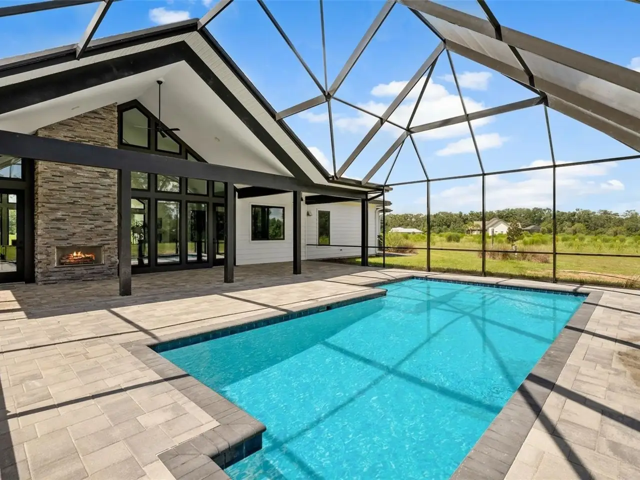 Introducing this extraordinary 5 bedroom, 4 bathroom, custom built home by Atlantic Design, situated on over 3 acres within an exclusive gated community of Dylan’s Grove. You are welcomed with a beautiful front porch that seamlessly flows into floor to ceiling premium Fibrex Composite windows, known for their superior insulation, durability, and low maintenance. Inside you will find an expansive living room with 18’ vaulted ceilings, filled with natural light, accompanied by an indoor vented 50” gas fireplace. Every detail was thoughtfully considered from the grain-matched wood cabinetry in the kitchen, custom-designed by Straw & Co Woodwork, to the upgraded Fisher and Paykel appliances, to the high-end fixtures and hardware that ties the space together. Adjacent to the kitchen is the butler’s pantry, offering additional custom cabinetry, a second sink refrigerator, dishwasher, and extra countertop space and storage. Also included in this space is a chic wet bar, perfect for crafting cocktails and hosting gatherings. This home is not only lavish but also environmentally conscious, boasting energy-efficient features throughout. From high-performance windows to efficient 18 Seer, 2 stage air conditioner systems with wi-fi thermostats, every detail has been carefully considered to minimize energy consumption without compromising comfort. The home has also been pre-wired for an alarm system, (6) gigabit ethernet ports, a wifi system, (4) exterior cameras, smart door locks, and automated lights. The exterior of the home is equally captivating, with an oversized covered lanai-already pre-wired and plumbed for a summer kitchen. The outdoor gas fireplace with stone veneer makes it a perfect sanctuary for those looking to cozy up and soak up the panoramic views. Schedule your private tour today and experience the epitome of luxury living.