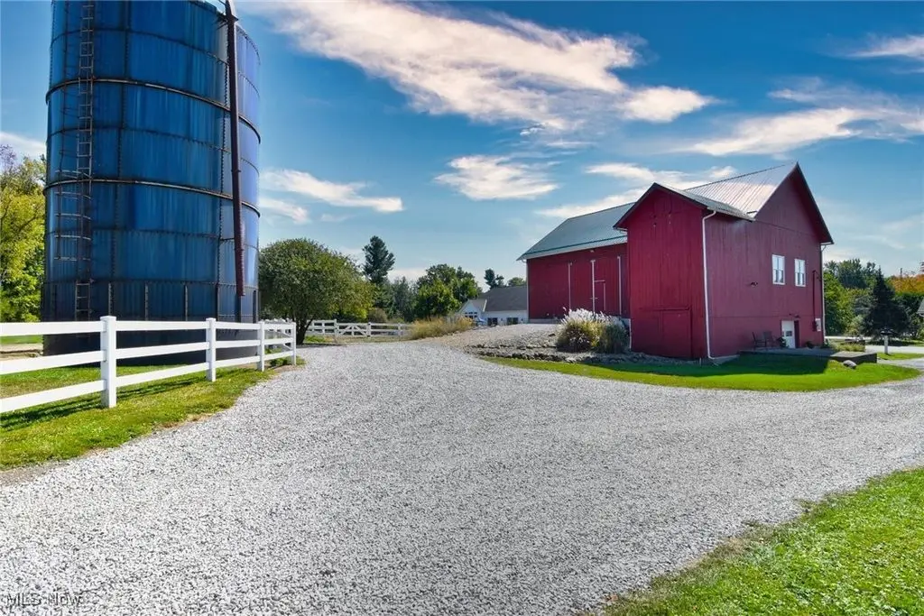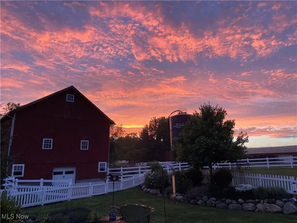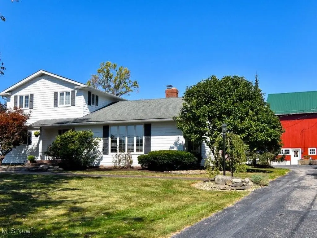 Welcome to Harvest Bell Farm located at 11278 Bell Street, Newbury.A rare opportunity in Geauga County, ideally located near Chagrin Valley suburbs and Route 422. Currently a working farm with agricultural zoning and CAUV tax benefits, Harvest Bell has been home to chickens, pigs, turkeys, horses, and flourishing gardens. The beautifully restored bank barn serves not only as a functional space with four box stalls, tack room, and feed room, but also as a gathering place for summer farm camps and events. Updates include a new roof, siding, windows, and reinforced bank foundation. The property spans 17.5 scenic acres with rolling pastures, an equipment barn, livestock barn, and silo, offering endless opportunities. A picturesque pond and natural wetlands enhance the setting. The 2,500 sqft. farmhouse features a warm front entry, lovely living room with hardwood floors and fireplace, and a spacious kitchen with a floor-to-ceiling brick fireplace. The first-floor primary suite includes dual closets and ensuite bath. A cherry library with glass-front cabinets adds character, while the second floor offers two additional bedrooms and hall bath. The large basement includes laundry, storage, and cellar access to the attached two-car garage with third bay. An enclosed breezeway opens to a private fenced yard with paver patio. Top rated West Geauga Schools.For those seeking a family compound, an additional 3-acre property with a 2017 ranch featuring a 2-bedroom main home with attached in-law suite is available. Combined pricing is offered for both properties. Ask for details. This is more than a home - it's a lifestyle, a legacy, and a one-of-a-kind opportunity in Geauga County.