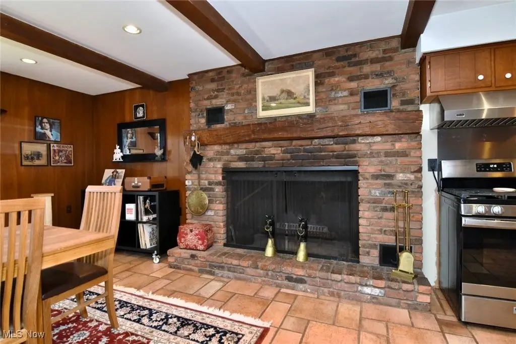Floor-to-ceiling brick fireplace