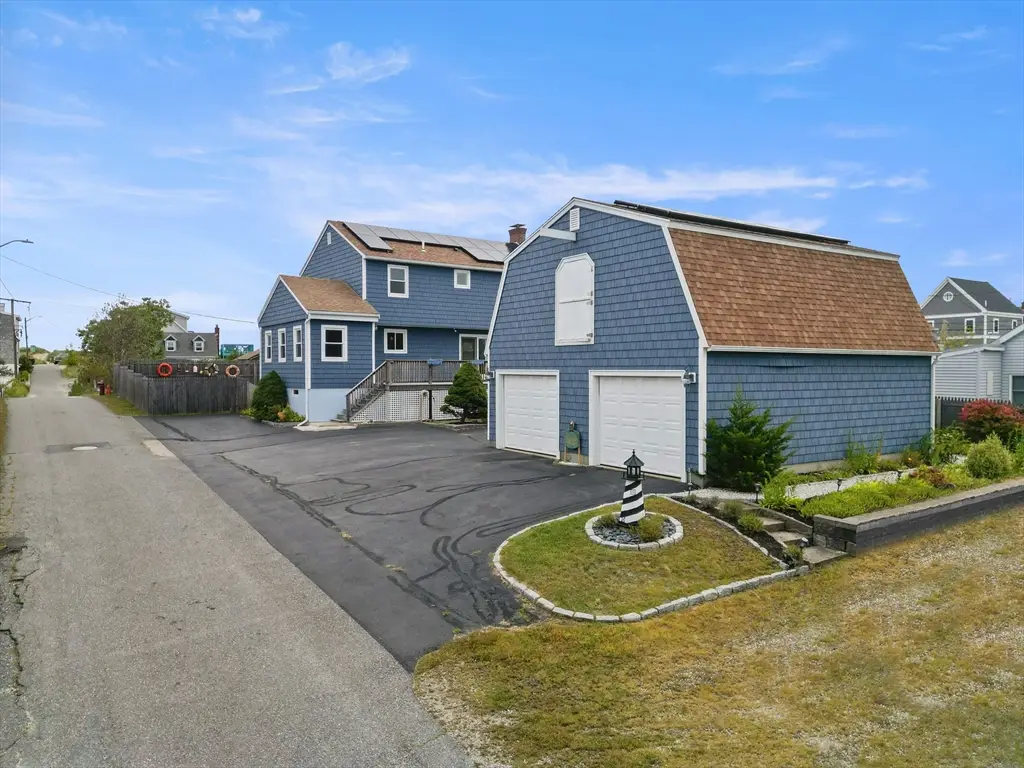 STEPS AWAY FROM BEACH ... This unique offering is located on a dead end street , feet away from the beautiful sandy beach and with the higher elevation you are NOT in a flood zone ! The home has had extensive improvements to all services since ownership . Double lot gives you potential for adding an ADU ( 2nd unit ) subject to approvals and the oversized 2 car garage with workshop area and full 2nd level is great for a recreational / entertainment area or finish fully for a guest suite .The sunfilled custom kitchen / living area is open concept and leads to the oversized deck and yard. Get your relaxation in after a day at the beach in the Swim Spa pool in your private yard . The full basement gives you storage and newer systems . Solar panels help with conserving your energy and keeping costs low - panels are owned and not leased . Enjoy the balcony off of the primary bedroom with ocean views or just open the glass door to listen to the lull of the waves ! Plentiful parking