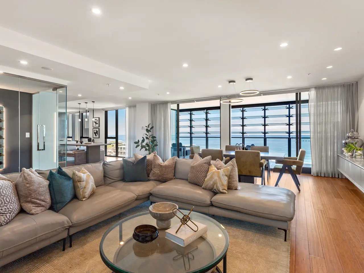 A whole floor oceanfront apartment offering 428sqm of unsurpassed world-class opulence presiding over the Pacific Ocean has hit Newcastle's residential market, and it is an offering this region has never seen before. Occupying the entire twelfth floor, since its initial inception this bespoke masterpiece has been designed and constructed to embody a breathtaking grandeur of international standards, combining six individual apartments into one high-end oceanfront inner-city residence. A secure lift announces your arrival where you will be greeted by a just-completed 2024 renovation lavished in rich luxury, global materials, and a wow-factor panoramic views across the Pacific Ocean, showcasing rolling waves and the annual whale migration. Your exclusive floor is complete with an in-home theatre, private gym, showstopping wine cellar, four hotel standard bedrooms, a state-of-the-art entertainer's kitchen fitted with top-tier appliances and high-end finishes, while surrounded by a contemporary open-plan design featuring multiple living spaces that integrate with two of the three outdoor terraces and invite sophisticated and unforgettable soirees. Newcastle's most prestigious and generous apartment is perfectly placed for effortless access to the beach, a wealth of fine dining options, designer stores, and the vibrant city centre. Start your day with sound of the surf and finish it watching the sunset over the cathedral, this views on offer are the best in the city. While everything you could desire to live a full and prosperous life is delivered right to your fingertips, this residence also boasts four personal and secure car spaces which is a rare commodity in the highly sought-after East End. This is truly a once-in-a-lifetime opportunity to acquire residential excellence in such a distinctive and unique location, gifting an instant passport to an international harbour, the Pacific Ocean and a cosmopolitan lifestyle. - 428sqms of distinguished luxury presiding over the Pacific Ocean - Recent (2024) renovation completed to international standards and fitted with high-end global materials and fixtures - North Easterly unobstructed panoramic sea views from the front and city and harbour sunset views from the rear - Chef's kitchen finished in Caesarstone Statuario Maximus and including a full suite of top-tier Miele appliances, right down to the coffee machine - Four first-class hotel standard bedrooms supported by five opulent bathrooms - The master-suite fit for royalty with 'his and her' ensuites and three-wardrobes, one featuring a dressing room - Secure lift delivering you directly to your entire personal twelfth floor - Your own exclusive gold class home theatre - Grand Cru wine fridges and a feature wine cellar room catering for up to 500 hundred bottles - Newcastle Airport is a thirty-minute drive, Sydney airport and CBD is a two-hour drive, and the Hunter Valley Vineyards are under an hour away - Top tier schools within close proximity: Newcastle Grammar School 0.41kms, Newcastle East Public School 0.73kms, Newcastle Grammar Park School Campus 2.18kms