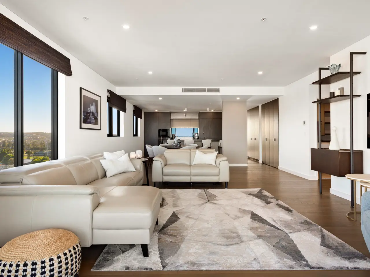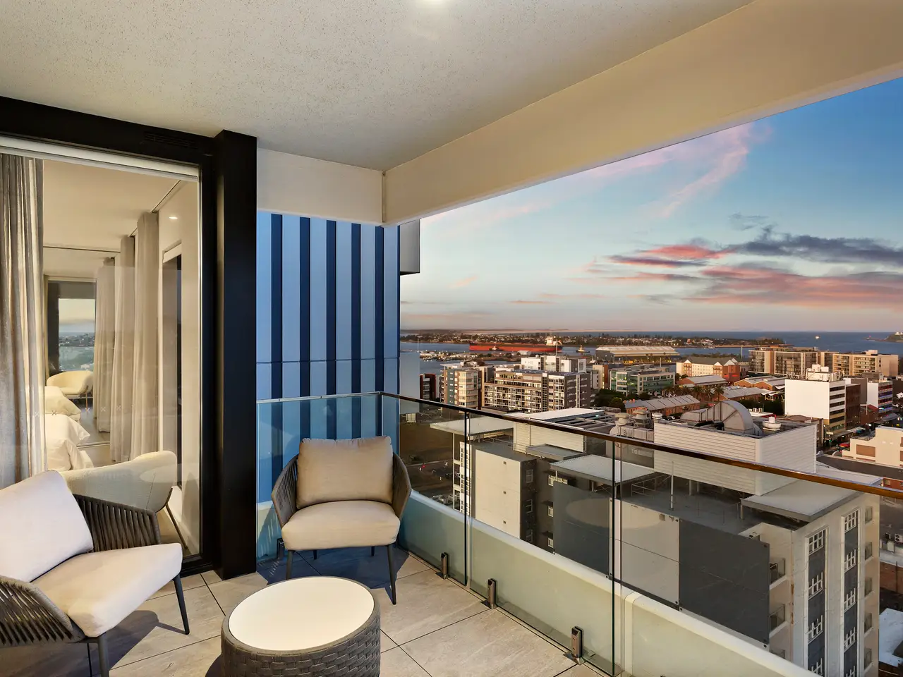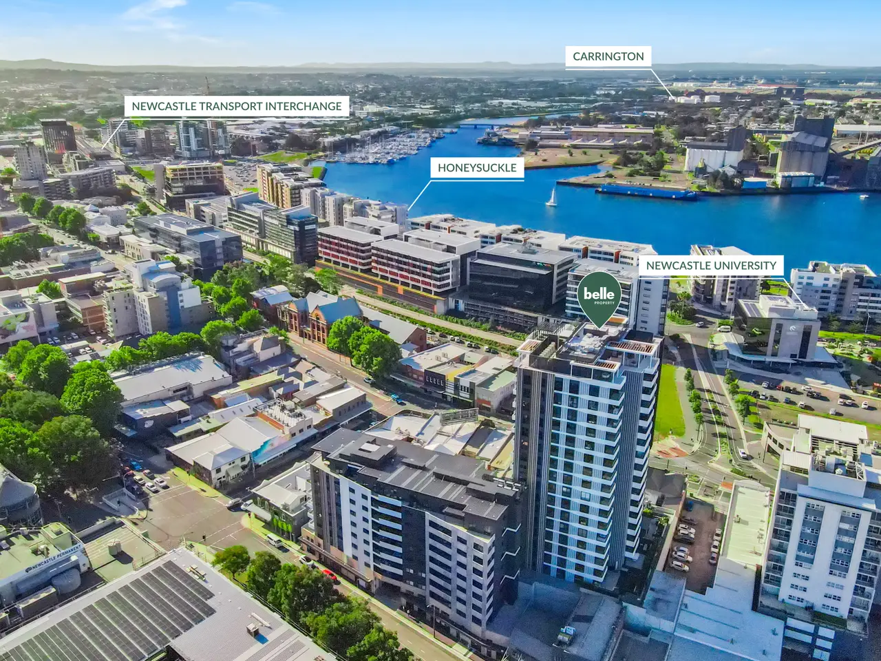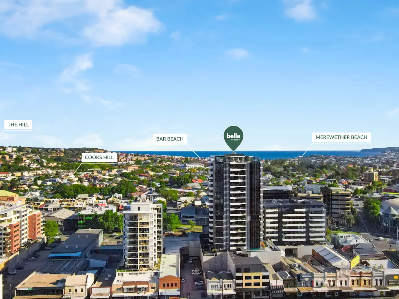Located in one of Newcastle's most exclusive CBD positions, this opulent apartment set in the coveted 'Sky Residences' is a celebration of luxury and style, possessing a sensational 180-degree view across the city skyline, coast and mountain ranges from private east and west alfresco terraces, punctuating the outlook from both living areas and the master suite. Elegant simplicity is at the heart of the interior, with a rich palette of materials and an industrial theme embodying luxury of international standards, showcasing bespoke finishes that deliver ultra-luxe living in a setting that is both private and secure. Perfectly placed to access a plethora of fine dining options, designer stores, and Newcastle's thriving city centre, this is a rare opportunity to acquire a prized property, complimented by an inspiring vista, a top position, and plenty of prestige. - Generous provision of space and proportion – this apartment is house-like in size - Curated to complement breathtaking views that form a dramatic backdrop to daily life - Sun-splashed open plan interior with a media room and two alfresco terraces - Smooth stone surfaces, integrated Smeg appliances and butler's pantry appoint the kitchen - Three bedrooms (two oversized), three bathrooms (incl. two en suites), ducted air conditioning - Engineered timber flooring, Euro laundry, designer lighting walk/built-in wardrobes - Remote garage access to a whopping two secure car parks; intercom system and swipe card - Resident-only amenities include an in-ground pool, well-equipped gym, and rooftop terrace - Exit the building for cafes, light rail, and shopping, stroll to Honeysuckle Precinct and beaches