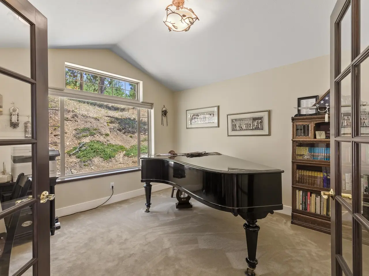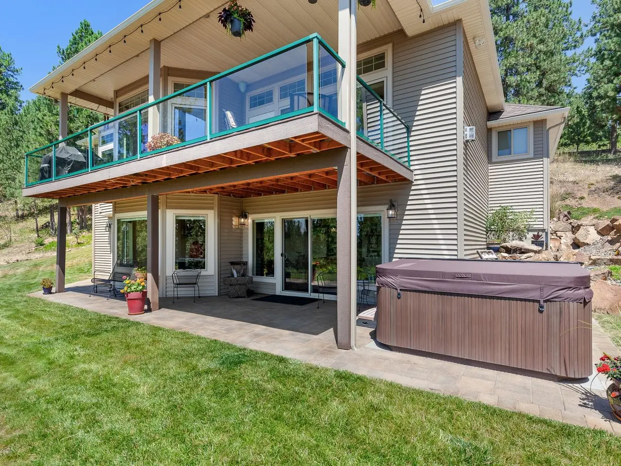 Beautifully maintained custom home in a gated community with sweeping views of Liberty Lake. Main-level living includes the primary suite, kitchen, family room, den, half bath, and laundry. The fully finished daylight basement features two bedrooms with large walk-in closets, a full bath and a spacious family/game room opening to a new patio with an oversized spa. Home highlights include 10' ceilings, radiant floor heating, granite counters, Viking appliances and numerous updates: new roof, siding, gutters, A/C, natural gas boiler, water softener/filtration system, security system, and laundry room upgrades. The oversized 4-car garage (2 wide, 2 deep) has radiant heat & a utility sink. A new 30x40x14 shop with 200A power and 12' door, plus a 10x16 shed, offer great hobby/storage space. Nestled on 5 serene acres with amazing views, privacy, security, and a cleared area ready for a future sport/pickleball court. Peaceful yet convenient to Spokane, Liberty Lake, and Coeur d'Alene.