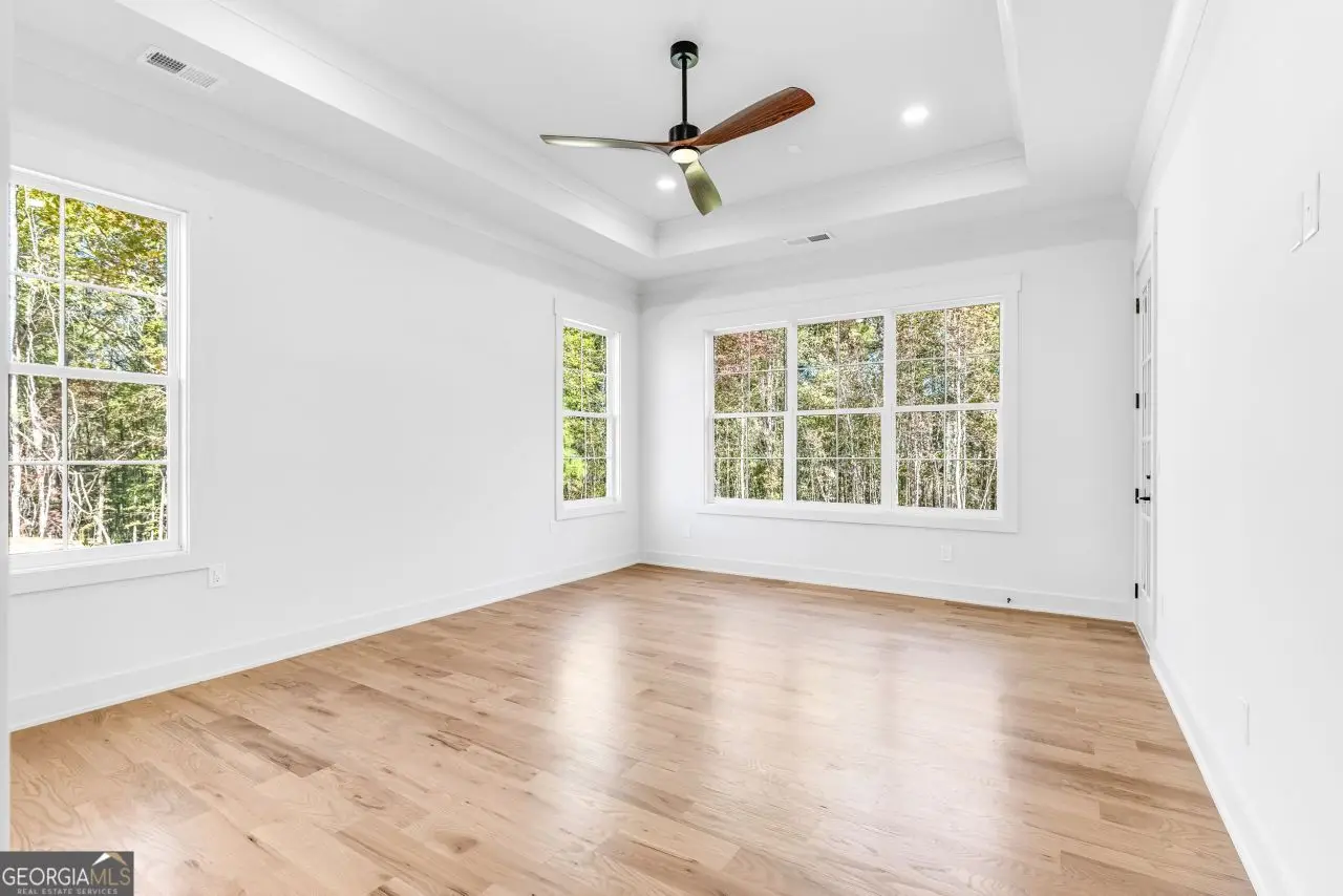Welcome to Refined Living in Arbor Springs. Experience casual elegance in this beautifully crafted home located in the prestigious Arbor Springs community. Perfectly situated on a serene lot, this home offers an ideal blend of luxury, comfort, and thoughtful design-perfect for entertaining or enjoying peaceful everyday living. Step into a bright, open-concept layout featuring 10-foot ceilings, 5 red oak hardwood floors, and custom trim work throughout. At the heart of the home is a stunning gourmet kitchen with quartz countertops, a wine station, an oversized center island with seating, and high-performance appliances. A very large walk-in pantry offers ample storage and convenience, ideal for any culinary enthusiast. The kitchen flows seamlessly into a spacious great room, complete with a cozy fireplace and elegant boxed ceiling beams crafted from cedar, adding warmth and natural character to the space. A custom sliding glass door system opens to a covered rear porch, providing a smooth transition between indoor and outdoor living-ideal for year-round entertaining. The main-level Owner's Suite is a private retreat featuring a spa-inspired bathroom with a freestanding soaking tub, frameless glass shower, and generously sized custom closets. The laundry room is thoughtfully placed away from the Owner's Suite for added privacy and practicality. Also on the main level, you'll find a flex room, perfect for a home office, study, or formal dining room, as well as a convenient half bath for guests. Upstairs, you'll find three spacious bedrooms, each with its own private full bathroom, offering comfort and privacy for family members or guests. A large bonus room adds versatility for media, recreation, or additional living space. Notable features include: Cedar ceiling beams in the great room, Spray foam insulation for energy efficiency, Custom cabinetry and built-ins throughout, Glass-enclosed showers in every bathroom, Mudroom for everyday organization, 3-car garage with extra space for storage, Pre-wired for EV charger, sound system, and security cameras, Enhanced lighting in bedrooms and flex spaces, Backyard is pool-ready, offering the ideal setting for your future oasis, Professionally designed with premium finishes-and still time to personalize selections to match your style. As a resident of Arbor Springs, enjoy access to resort-style amenities including a clubhouse, pool, tennis and pickleball courts, parks, walking trails, and playgrounds. Conveniently located near top-rated schools, the new Publix center, Ashley Park, and I-85, with just a 20-minute drive to Hartsfield-Jackson International Airport and Atlanta. PREFERRED LENDER OFFERING LENDER FEE CREDIT! Don't miss the opportunity to own this stunning luxury home! Schedule your showing today!