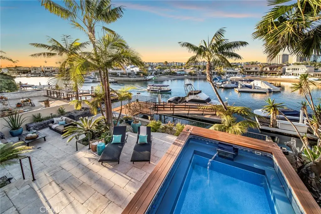 Prestigious Double-Lot Waterfront Estate on Newport Island! Welcome to one of the most exclusive waterfront offerings in Newport Beach. Positioned on a rare double lot along the north side of Newport Island, this exceptional bayfront estate combines timeless design, modern amenities, and an unbeatable location. With over 50 feet of water frontage, a private pool, and a full-size boat dock, the property is tailor-made for both elegant entertaining and laid-back coastal living. The expansive open-concept layout is designed for effortless indoor-outdoor flow. A disappearing glass wall opens the main living space to a spacious bayfront terrace, creating the perfect setting for everything from sunset soirees to quiet mornings with coffee by the water. The gourmet kitchen is centered around a large island and equipped with top-of-the-line appliances, sleek cabinetry, and premium finishes. At the front of the home, a beautifully landscaped courtyard and elevated patio lead to a dramatic entry. Upstairs, a second living area currently functions as an office but offers flexibility to suit your lifestyle. The two oversized bedrooms could easily be reimagined to accommodate more, depending on your needs. The primary suite is a private retreat, offering stunning bay views from a large balcony. The spa-inspired bathroom features luxurious finishes, and the walk-in closet is spacious enough to satisfy any wardrobe. Additional amenities include a two-car attached garage and exclusive off-street parking directly in front -- an invaluable perk on Newport Island. This is a rare opportunity to live the iconic Newport Beach lifestyle in a truly one-of-a-kind home on the water.