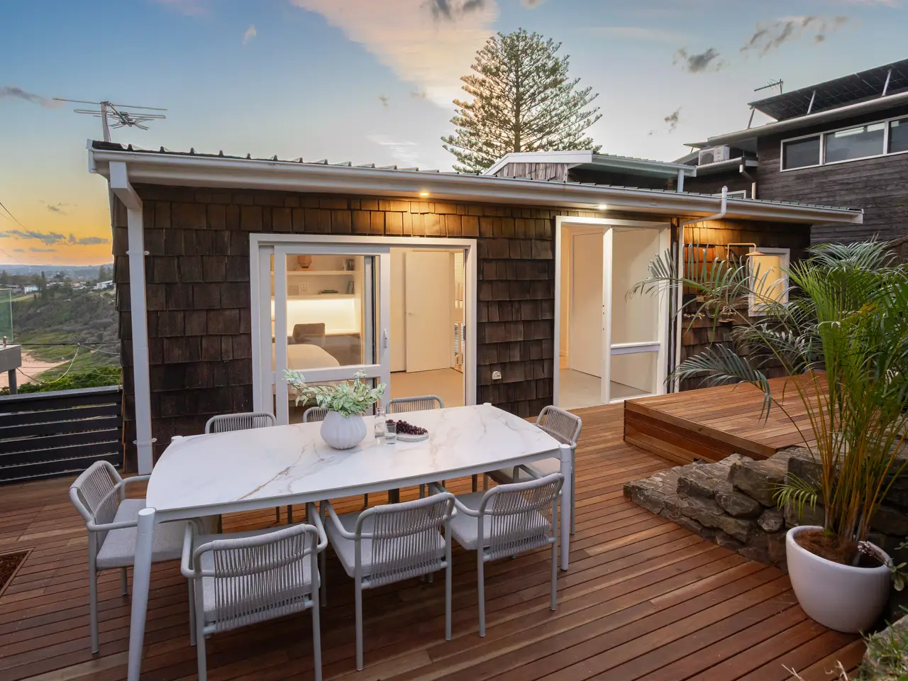 Claiming a commanding position near the tip of Bungan Headland, this has got to be one of the most breathtaking spots on the Northern Beaches; the views are incredible, capturing the entire sweep of Bungan Beach, right down to Manly. The residence is more than a match for the setting with its streamlined design and barefoot-at-the-beach vibe; this is a home where everything clicks quietly into place – the layout, the finishes and most obviously, the views. Fully renovated, it's characterised by clean, linear forms, custom-designed joinery and a pared-back material palette across the split-level design. Should you ever tire of the spectacular ocean views from the front deck, there's also a great alfresco dining area, tucked against the tiered gardens in back; to top it off, it's just a five minute stroll to Bungan Beach Surf Club, where the days roll easily from coffee to surf to sunset. - Phenomenal setting; captures the entire sweep of Bungan Beach - Incredible views; integrated interiors framed by galleries of glass - Innovative split-level layout; spacious living/dining + media room - Ocean-facing entertaining deck with alfresco deck in rear gardens - Newly renovated; sleek, designer kitchen with quality appliances - Great views from the master suite; oversized bedrooms w/built-ins - Deluxe bathrooms, wide plank floors, ducted air, plantation shutters - Garage plus off-street, 733.5sqm parcel, storage room for weekend toys - Five-minute stroll to the beach; easy walk to the centre of Newport Disclaimer: Whilst all care has been taken to ensure accuracy in the preparation of the particulars herein, no warranty can be given, and interested parties must rely on their own enquiries.