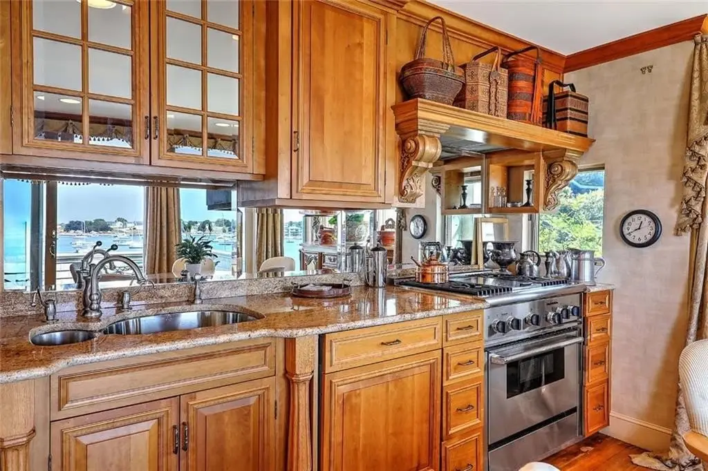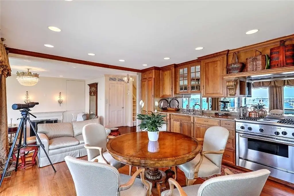 This remarkable townhouse-style condo is part of the coveted Beechbound Condo Association, and available for the first time in 25 years. Offering a front row seat to the most beautiful views of Newport Harbor front. Overlooking a steady parade of boating life and the Newport Bridge - the ever-changing sky, sun and clouds promise a view that always delight. This beautiful property has been renovated to the highest standards with meticulous custom cabinetry in each of the four ensuite bedrooms. The expansive primary suite occupies the upper level and enjoys a large deck that over looks Beautiful Newport Harbor. The finely finished primary bathroom offers teak and holly flooring, and custom teak cabinetry throughout. The lower level has two well-sized bedrooms each with finely finished bathrooms. The lower level also has a second beautiful kitchen, meticulously outfitted, perfect for when housing a group of sailors or extended family. The lower level also has its own terrace for enjoying the outdoors. Beechbound stately grounds are the perfect setting for enjoying life on the waterfront. The Beechbound boat house dock and launch pad add wonderful access to fun on the waterfront, whether its to launch a paddle board and enjoy the harbor or taking the Launch boat over to Bannisters Wharf for Dinner, the Life Style offered with this property is exceptional.