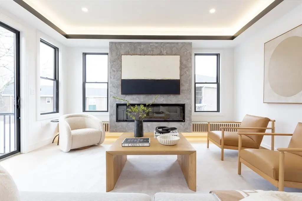 LAST UNIT LEFT! This new construction townhome over 4K square feet of thoughtfully designed space. Living like a single family home with windows on all 4 walls, it features a 1-car private garage and an oversized exclusive backyard. The open concept main level showcases stunning features including a chef's kitchen with high-end appliances, gorgeous cabinetry, a sophisticated Venetian plaster linear fireplace, and a generous mudroom. A flexible en-suite bedroom/office completes the first floor. The second level houses three en-suite bedrooms, including a primary retreat with its large walk-in closet and a gorgeous spa-inspired bathroom with soaking tub. A convenient laundry room with cabinetry, sink, and folding station. The fully finished third floor provides bonus space with endless possibilities, while the lower level offers endless possibilities plus a private bedroom with full bathroom ideal for guests. Located steps from Newtonville Village Center.