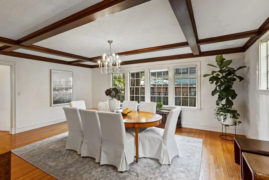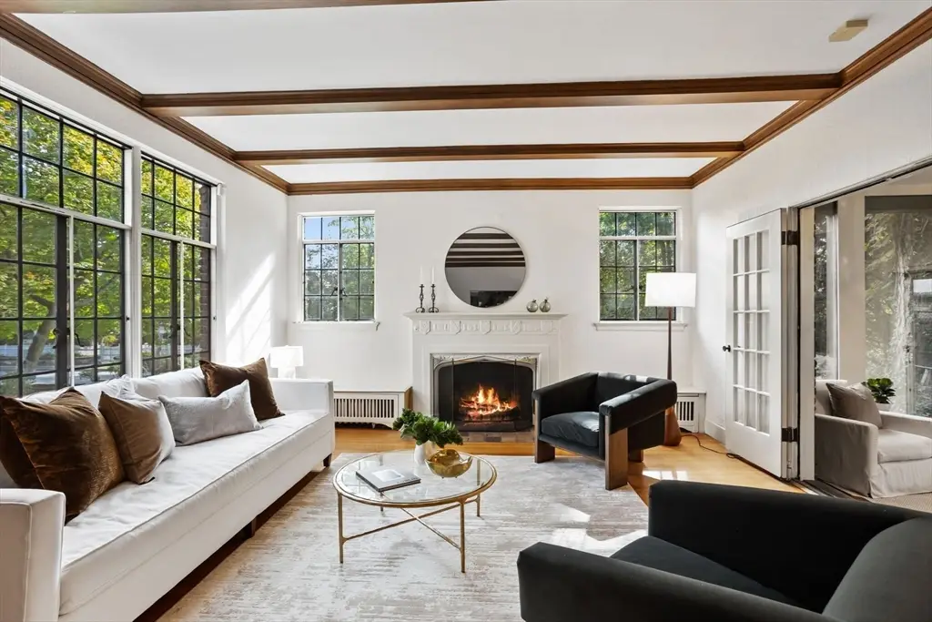 Gracious Tudor home in desired Newton location. Step-down fireplaced living room features high beamed ceilings, arched openings, oversized windows, hardwood floors and flows into an inviting sun room with floor to ceiling windows. Eat-in kitchen offers island, granite counters, bay window, plentiful cabinets and pantry. A spacious formal dining room with beamed ceiling completes this floor. Upstairs features a primary suite with private bath, 3 additional bedrooms, 2 full shared bathrooms and a bedroom/home office with separate entrance. Partially finished basement features a wood bar, play room/media room, laundry, storage and systems. 2 car garage plus parking for 4 more cars in the driveway. Driveway and garage access on Fairmont. Lush yard features a patio and is ideal for BBQ's and relaxation. Welcome home!