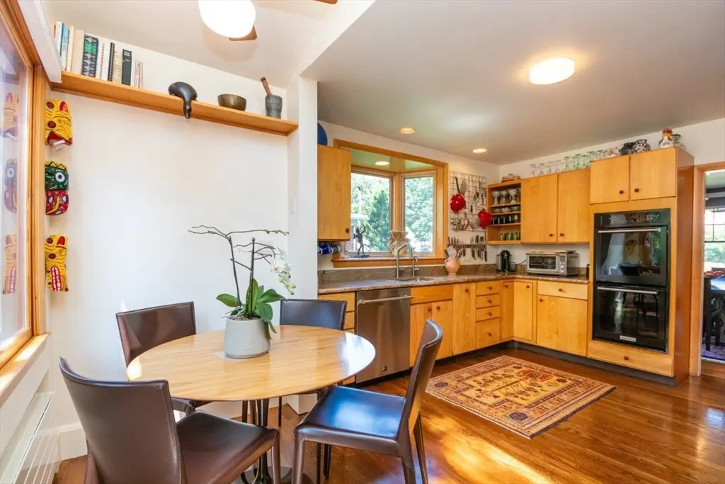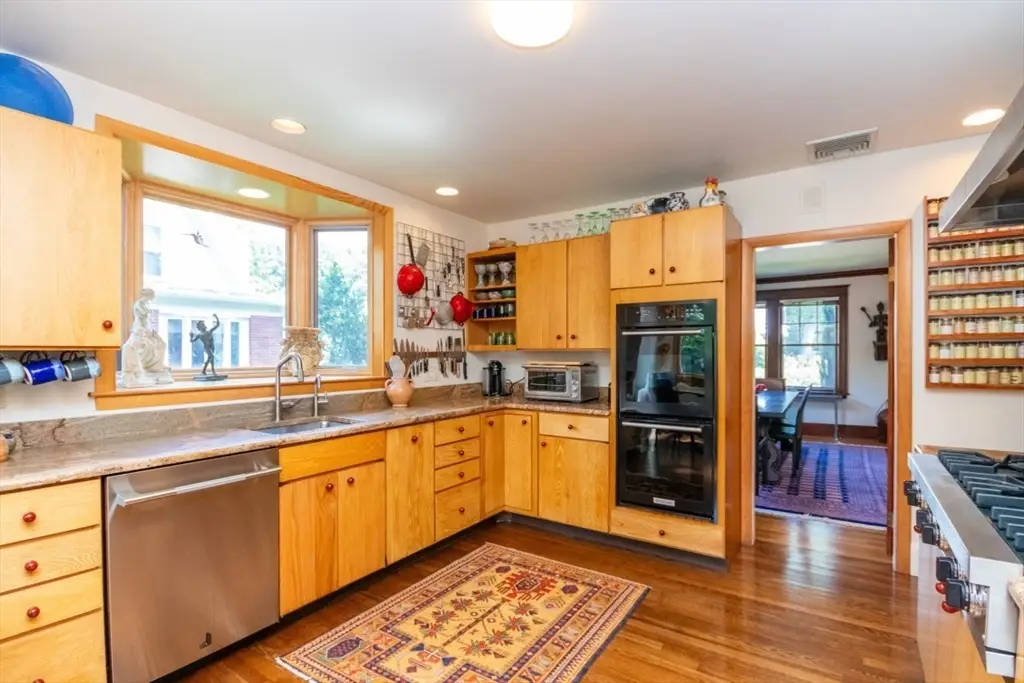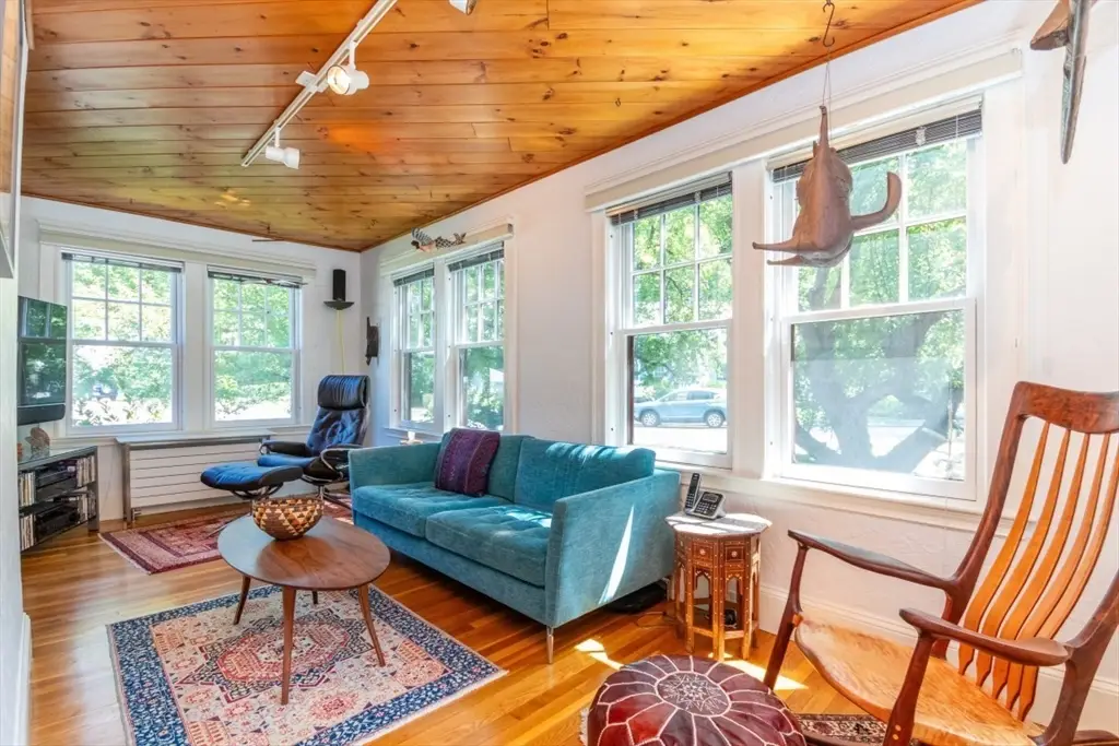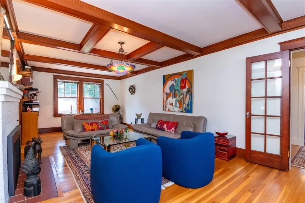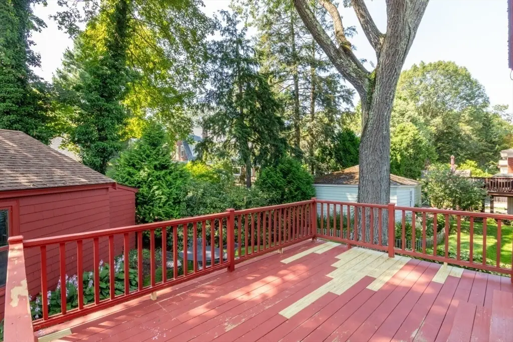 Storybook home on lush grounds in prime Newton Centre location. This special property has been thoughtfully renovated and lovingly maintained. Architectural features abound - gumwood trim, gleaming hardwood floors, crown molding and a fireplaced living room with beamed ceiling and French doors. Custom designed eat-in-kitchen with granite counters, breakfast area, skylight, and 6 burner Viking stove. Formal dining, sunroom and full bathroom tiled with marble walk-in shower room completes the first floor. Second floor has four bedrooms and a renovated bathroom. Basement offers workspace and plentiful storage. Large deck, serene yard for entertaining and relaxing and an oversized 2 car detached garage. Moments to Mason Rice Elementary School, Library, shops, Whole Foods, restaurants, Cold Springs Park and swimming and water sports at Crystal Lake. Open Houses Saturday 8/2 and Sunday 8/3 from 1:00PM - 2:30PM both days...Offer Deadline of Tuesday, 8/5 @ Noon.