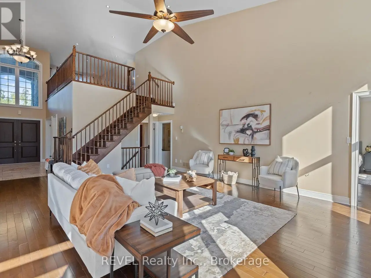 Nestled in one of Niagara's most prestigious neighbourhoods, Calaguiro Estates in North-End Niagara Falls, 6718 Domenic Crescent offers an extraordinary residence on a 100 x 193 ft estate-sized lot. With approximately 3,000 sq.ft. of above-grade living space, this custom-built home is designed with sophistication and comfort in mind. The main floor impresses with 20-ft soaring vaulted ceilings, a fireplace, and an open-concept layout that perfectly blends elegance and function. The custom kitchen features granite countertops and ample cabinetry, flowing seamlessly into the bright living and dining areas filled with natural light. The main floor primary suite offers a 5-piece ensuite and walk-in closet, while main floor laundry and a dedicated office add everyday convenience. Upstairs, the open-concept family room overlooks the main level, enhancing the homes spacious, connected feel.The basement features a finished bedroom and a 5-piece bathroom, with plenty of additional space to complete another bedroom, a workout room, and a recreation area. It also offers a walk-up to the backyard. Outside, the expansive, fully fenced yard lined with mature cedars provides exceptional privacy and the potential to create your dream resort-like retreat. Ideally located near the QEW, top schools, and all North-End Niagara Falls amenities, this stunning property embodies luxury living in one of Niagara's most coveted communities. (id:7434)