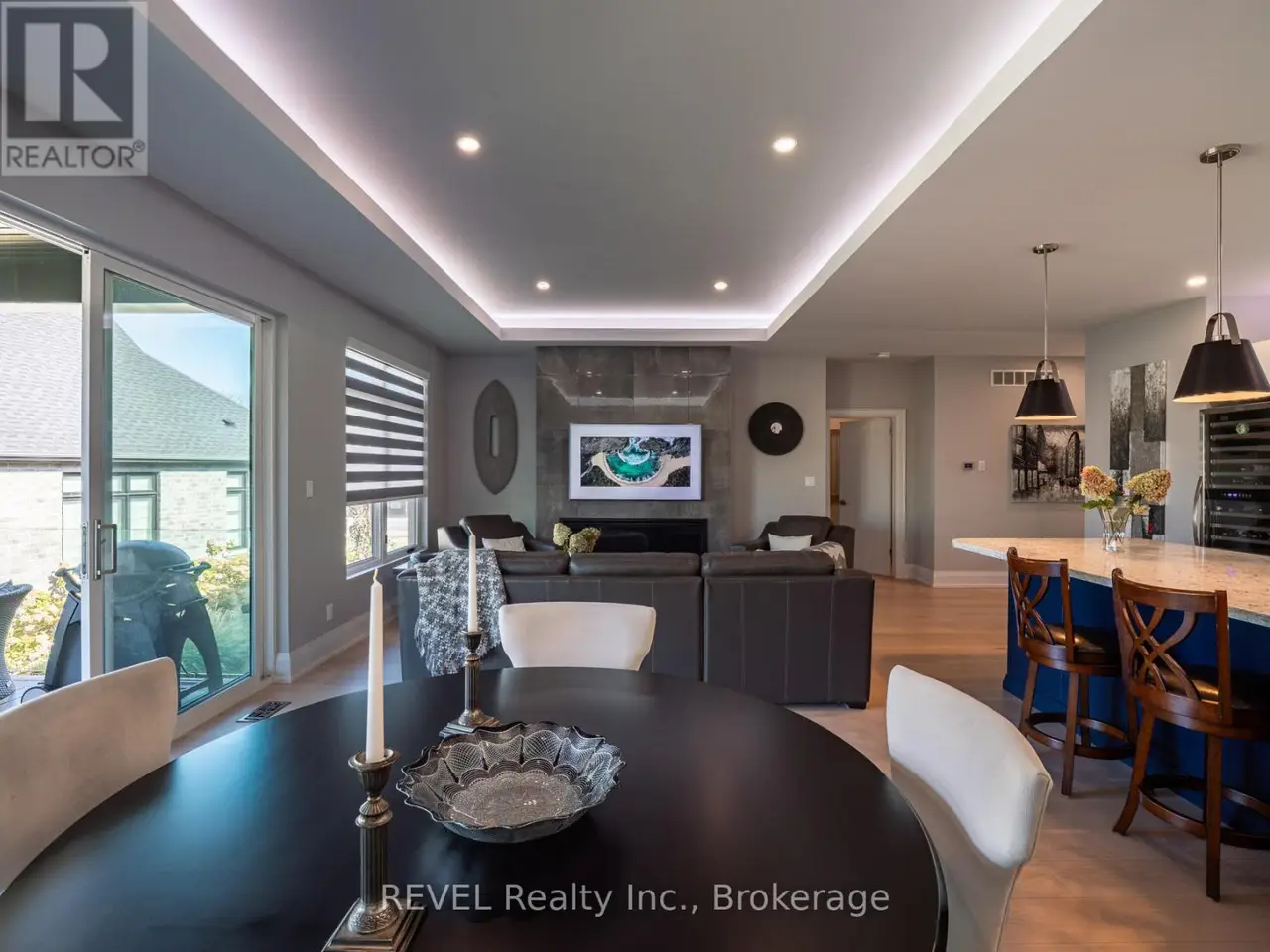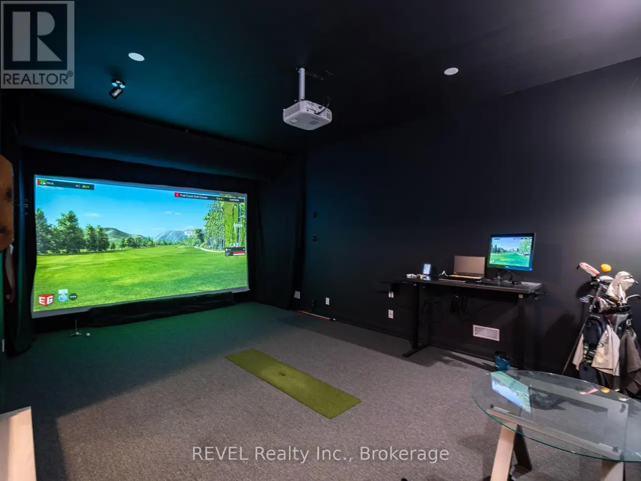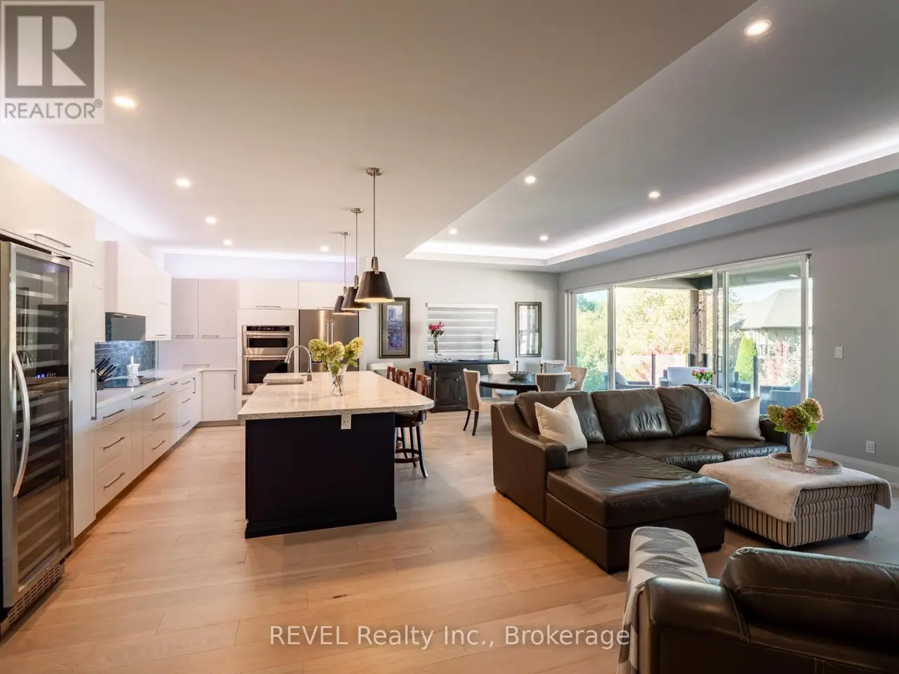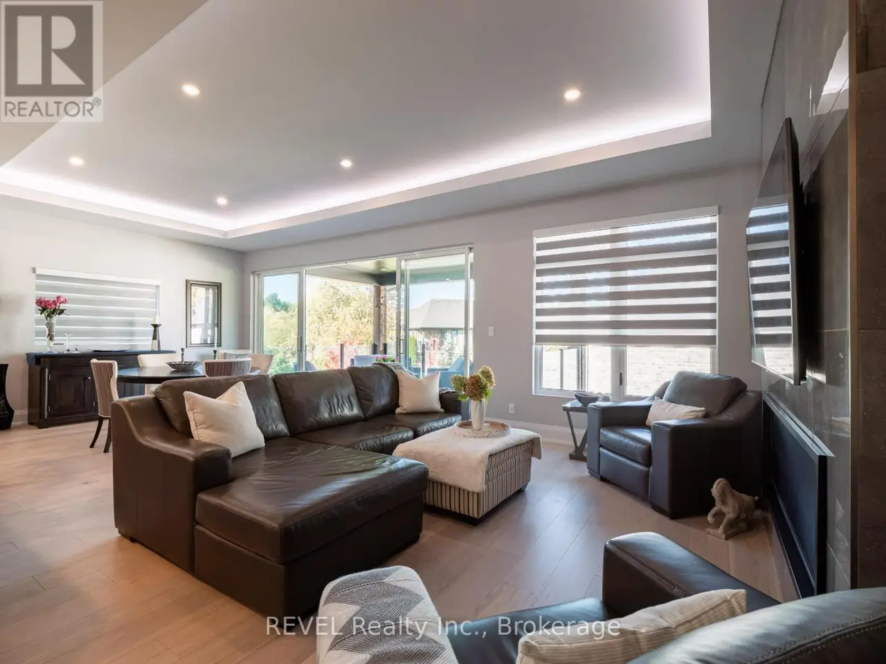 Welcome to this stunning custom-built bungalow nestled on an exclusive cul-de-sac of only 9 homes in the heart of St. David's, one of Niagara-on-the-Lake's most coveted communities. Blending sophisticated architecture with contemporary comfort, this home offers the perfect balance of elegance and lifestyle.Step inside to discover a bright open-concept design highlighted by soaring ceilings,designer lighting, and expansive windows that flood the space with natural light. The gourmet kitchen features premium appliances, quartz surfaces, and a stylish centre island-perfect for entertaining or everyday family gatherings. The adjoining dining and great room spaces flow seamlessly to a covered terrace, ideal for enjoying Niagara's picturesque sunsets.The main floor offers two spacious bedrooms, including a serene primary suite with a spa inspired ensuite bath, freestanding tub, glass shower, and dual vanities. The walkout lower level expands the living space with two additional bedrooms, a full bath, and an impressive golf simulator and theatre room, perfect for year-round recreation and relaxation.Outside, thoughtful landscaping, a double garage with modern doors, and clean architectural lines create exceptional curb appeal.Located just steps from The Grist restaurant and minutes from Niagara's finest wineries,golf courses, trails, and Old Town's boutique charm, this property embodies the Niagara-on-the-Lake lifestyle-a perfect blend of luxury, leisure, and location. More than a home, this is a lifestyle statement. (id:7434)