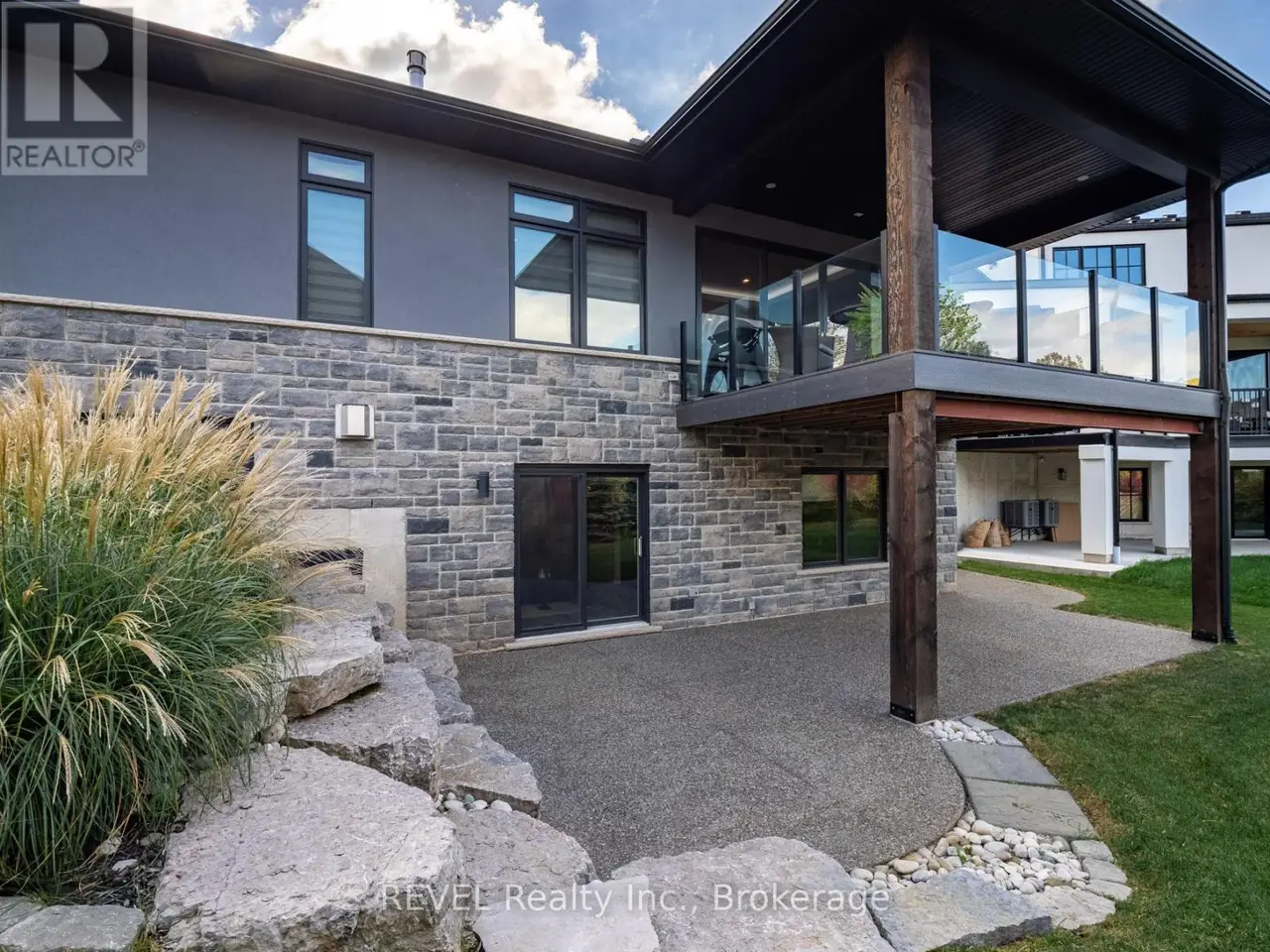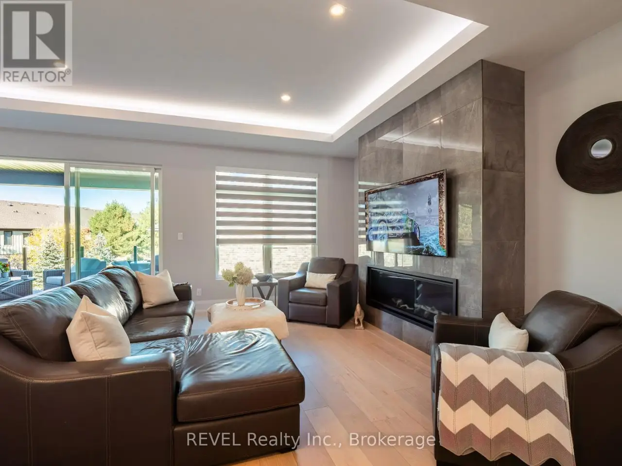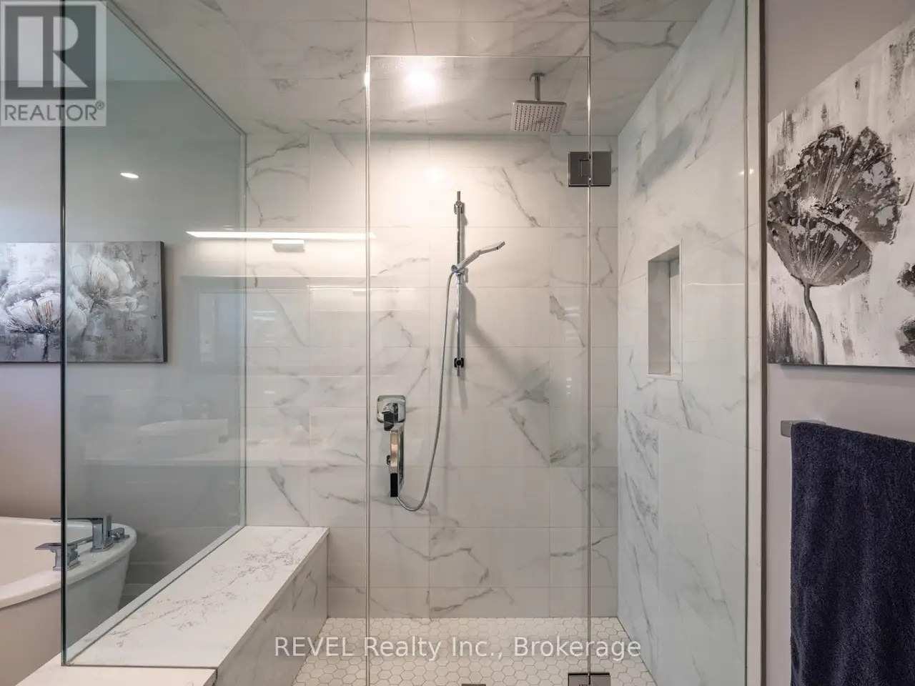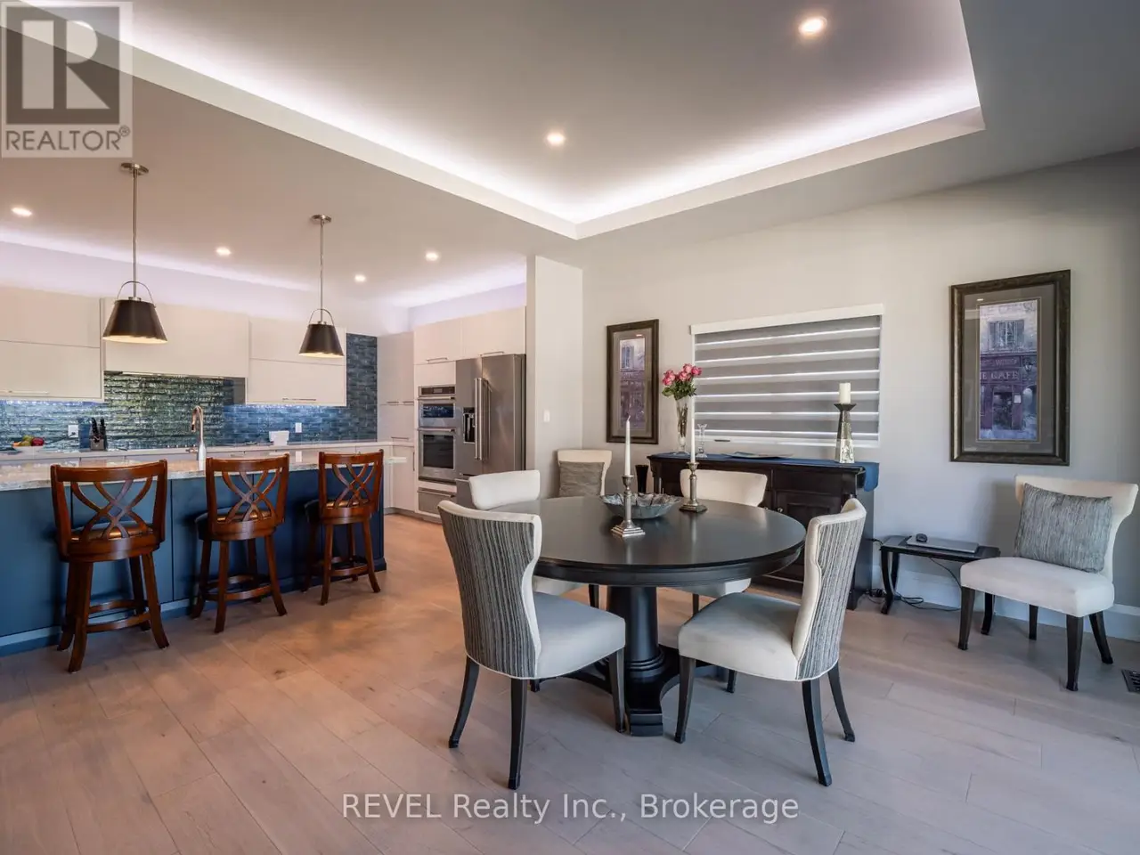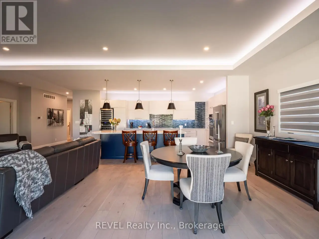 Welcome to this stunning custom-built bungalow nestled on an exclusive cul-de-sac of only 9 homes in the heart of St. David's, one of Niagara-on-the-Lake's most coveted communities. Blending sophisticated architecture with contemporary comfort, this home offers the perfect balance of elegance and lifestyle.Step inside to discover a bright open-concept design highlighted by soaring ceilings,designer lighting, and expansive windows that flood the space with natural light. The gourmet kitchen features premium appliances, quartz surfaces, and a stylish centre island-perfect for entertaining or everyday family gatherings. The adjoining dining and great room spaces flow seamlessly to a covered terrace, ideal for enjoying Niagara's picturesque sunsets.The main floor offers two spacious bedrooms, including a serene primary suite with a spa inspired ensuite bath, freestanding tub, glass shower, and dual vanities. The walkout lower level expands the living space with two additional bedrooms, a full bath, and an impressive golf simulator and theatre room, perfect for year-round recreation and relaxation.Outside, thoughtful landscaping, a double garage with modern doors, and clean architectural lines create exceptional curb appeal.Located just steps from The Grist restaurant and minutes from Niagara's finest wineries,golf courses, trails, and Old Town's boutique charm, this property embodies the Niagara-on-the-Lake lifestyle-a perfect blend of luxury, leisure, and location. More than a home, this is a lifestyle statement. (id:7434)