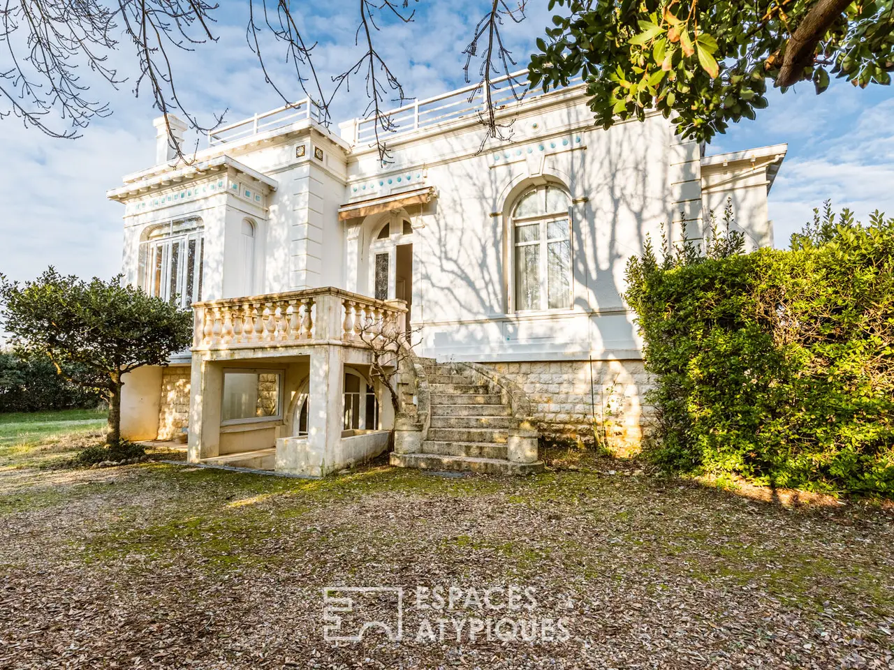 EXCLUSIVE ATYPICAL SPACES Located in Vaux-sur-Mer in a popular residential area, this late 19th century bourgeois villa of approximately 213 m2, proudly set in the heart of a plot of 1349 m2, just 120 m from the sea and the beaches , reflects the splendor of a bygone era with its ornamental elements on the facade with its enamelled turquoise blue flowers. A remarkable, multi-faceted architecture awaiting renovation. With an inverted lifestyle, the porch with its majestic cut stone staircase and its arched transoms reveals an entrance hall with a period cement tile floor, itself revealing the living spaces. The living-dining room with its parquet floors and its molded oak coffers on the ceiling offers a living space capable of accommodating a stove or a fireplace existing at the time with a magnificent ceiling height. Two other rooms are converted into a living room-library and bedroom, both decorated with marble fireplaces and a bathroom. A kitchen with old-world charm with multiple layout perspectives completes this level. On the lower garden level, the sleeping areas offer three beautiful bedrooms and an office. A bathroom, a shower room and a toilet supplemented by a laundry room and a boiler room area with water point offer autonomy with a door which gives access to the garden, thus allowing you to enjoy the garden or the sea in complete quietude. Completing this mansion, an annex of approximately 10 m2 converted into a bedroom with bathroom and toilet is supplemented by an independent garage and an underground wine cellar. At the rear of the garage, with independent access, a studio of approximately 20 m2 is converted into a bedroom with bathroom and toilet, thus offering two bedrooms in addition to the villa for the greatest pleasure of the youngest while a small workshop formerly converted into a painting workshop completes this property. Like a viewpoint, the villa offers a breathtaking perspective and view from the flat roof, accessible by a small exterior staircase: an avant-garde and astonishing point of view for this elegant bourgeoisie. Unmissable and majestic, this sleeping beauty with its wooded garden offers a unique living environment and architecture awaiting projects to restore all its letters of nobility and its splendor of yesteryear. To see without delay. ENERGY CLASS: E / CLIMATE CLASS: E. Estimated average amount of annual energy expenditure for standard use established from energy prices for the year 2021: between EUR3,950 and EUR5,400 REF. EALR1733 Additional information * 8 rooms * 5 bedrooms * 1 bathroom * 5 shower rooms * 1 floor in the building * Outdoor space : 1349 SQM * Property tax : 2 399 €