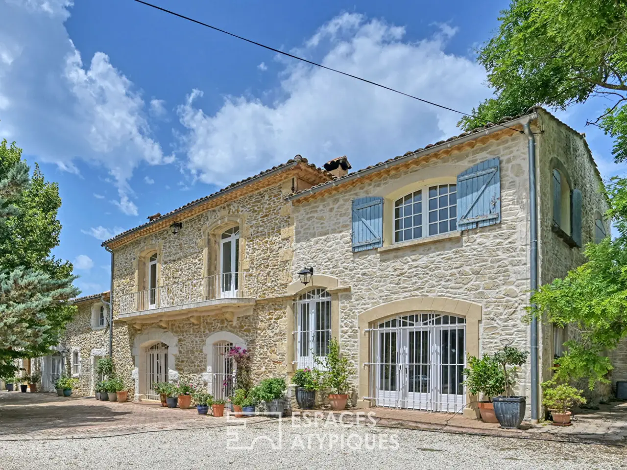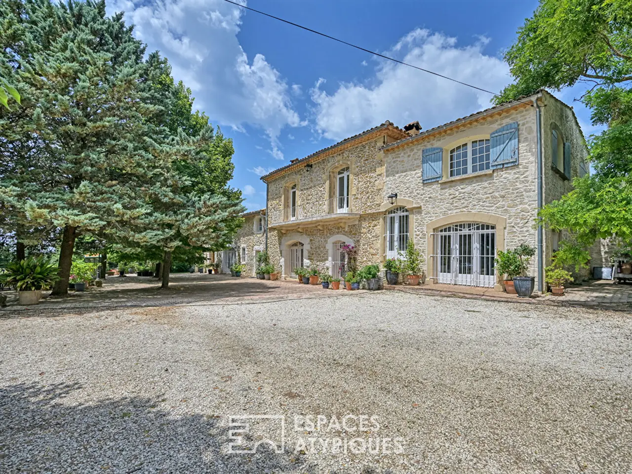 This charming farmhouse of approximately 450 sqm is located in the heart of a beautiful natural setting just minutes from Sommieres. The property, benefiting from a recent high-quality renovation, elegantly combines old-world charm with modern comfort. Upon arrival, we discover the beautiful natural stone facades that testify to the character and authenticity of the farmhouse. The interior reveals very beautiful volumes and a harmonious distribution of spaces. The vaulted living room, approximately 73 sqm, impresses with its high ceilings and warm atmosphere, highlighted by a stone fireplace and an open mezzanine that extends the space with lightness. The 57 sqm eat-in kitchen embodies elegance and conviviality: fitted with noble materials and very high-end equipment, it has been designed as a true living space, ideal for cooking, entertaining and sharing beautiful moments. This large kitchen opens onto a covered outdoor space designed as a warm summer lounge, open to the surrounding nature. Upstairs, the very comfortable bedrooms and tastefully renovated bathrooms offer lovely unobstructed views as far as Pic Saint-Loup. A separate 65 sqm apartment completes the property, with a living room and its new kitchen on the ground floor, as well as the sleeping area upstairs, ideal for entertaining or for a reception project. The property is located in the heart of a private 3.9-hectare estate, a veritable green setting inviting tranquility. The carefully landscaped exteriors display a palette of Mediterranean landscapes: natural meadows, tree-lined paths, flower garden and olive grove. There is a vast swimming pool area, accompanied by its equipped pool house, ideal for fully enjoying the sunny days in a peaceful setting without vis-a-vis. Horse lovers will also find their happiness here thanks to quality equestrian facilities: paddocks, shelters, meadows and a riding school. Numerous outbuildings, sheds and storage spaces complete the complex with functionality. The garden is home to more than 60 olive trees, allowing the production of its own olive oil, as well as a remarkable collection of old rose bushes, which diffuse their rare fragrances and enhance every corner of the garden. The natural environment, both vast and intimate, gives this property a unique atmosphere of serenity and refinement, conducive to outdoor living without sacrificing elegance and comfort. Certainly a rare property to discover without delay. ENERGY CLASS: B / CLIMATE CLASS: A Estimated average amount of annual energy expenditure for standard use, established from energy prices for the year 2025: between EUR3,027 and EUR4,095. Information on the risks to which this property is exposed is available on the Georisques website: www.georisques.gouv.frContact: Claudine 06.22.17.01.66REF. 11843Additional information* 10 rooms* 7 bedrooms* 1 bathroom* 4 shower rooms* Outdoor space : 39000 SQM* Property tax : 5 374 €Energy Performance CertificatePrimary energy consumptionb : 92 kWh/m2.yearHigh performance housing*A*92kWh/m2.year3*kg CO2/m2.yearB*C*D*E*F*GExtremely poor housing performance* Of which greenhouse gas emissionsa : 3 kg CO2/m2.yearLow CO2 emissions*3kg CO2/m2.yearA*B*C*D*E*F*GVery high CO2 emissionsEstimated average annual energy costs for standard use, indexed to specific years 2021, 2022, 2023 : between 3027 € and 4095 € Subscription IncludedAgency feesThe fees include VAT and are payable by the vendorMediator