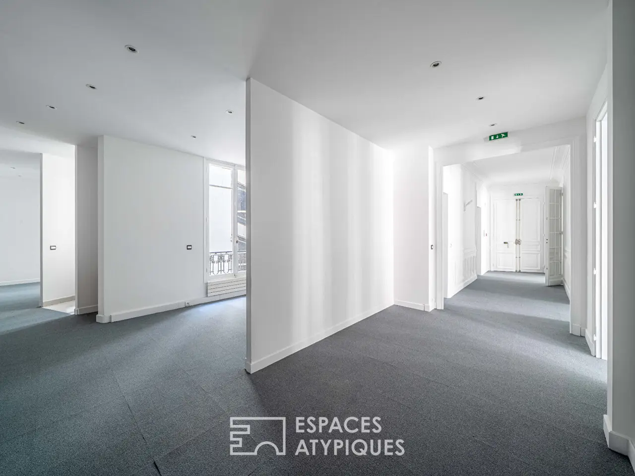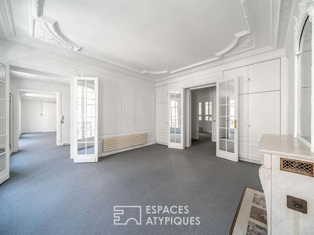 Just steps from the 6th arrondissement, between Le Bon Marche and the Croix-Rouge intersection, this 179.47 m2 (Carrez law) property zoned for residential or office use also includes a 10.80 m2 maid's room (Carrez law) and is peacefully tucked away in a pedestrian cul-de-sac. Located on the second floor with elevator access in an elegant Haussmann-style building, the space impresses with its generous volumes and vast potential. Currently configured as office space, it offers a turnkey work environment. For more imaginative buyers, it serves as a blank canvas for creating a reception apartment or family residence. The flexible layout allows for the creation of several bedrooms and bathrooms. The large front-facing rooms have preserved their original features, including herringbone parquet flooring, refined moldings, and an antique fireplace. They benefit from beautiful natural light thanks to their western exposure, enhanced by a continuous balcony that extends the views and sense of space. On the 7th floor, the maid's room can be converted into an independent office, guest room, or storage area. Located in the heart of Saint-Germain-des-Pres, this property stands out for its character, transformation potential, and prime location just steps from shops, art galleries, and prestigious schools. The property also includes two cellar spaces and a communal heating system. Nearest metro stations: Sevres-Babylone (Lines 10 & 12)Saint-Sulpice (Line 4) Additional information * 6 rooms * 3 bedrooms * 1 bathroom * Floor : 2 * 7 floors in the building * 12 co-ownership lots * Annual co-ownership fees : 12 000 € * Property tax : 3 722 €