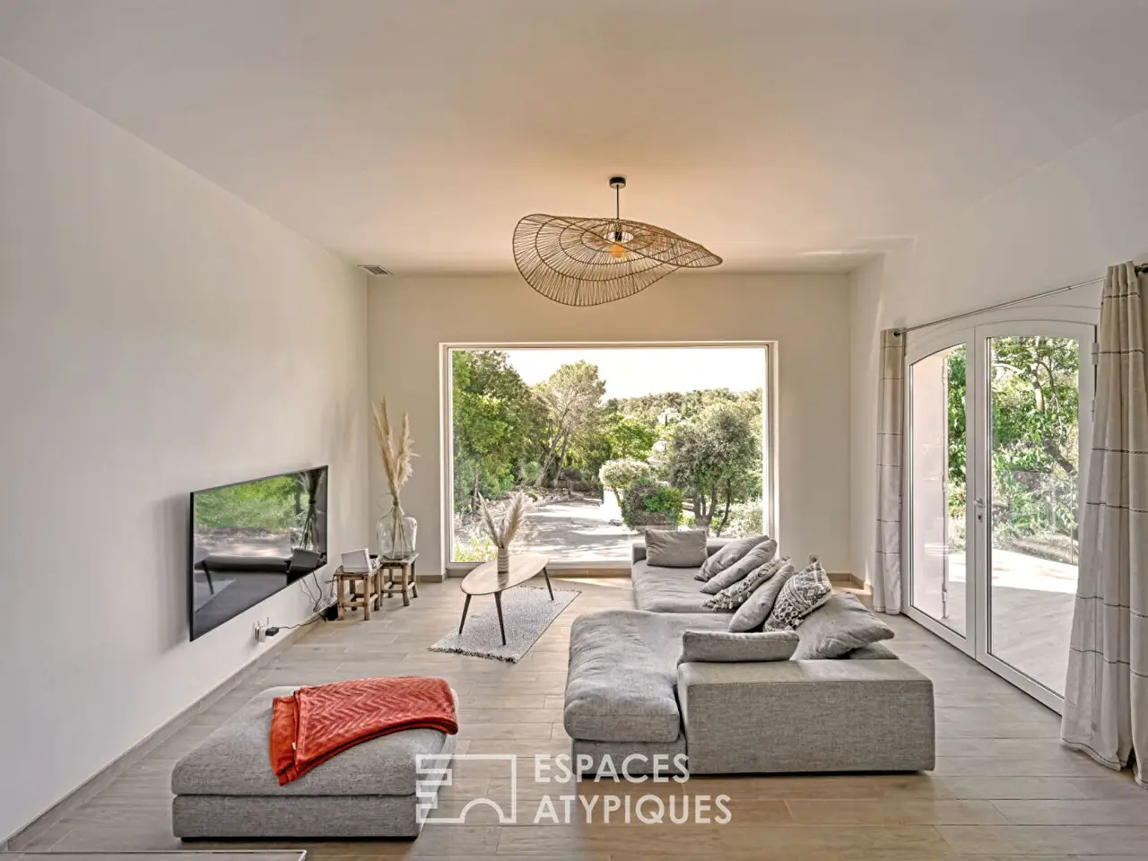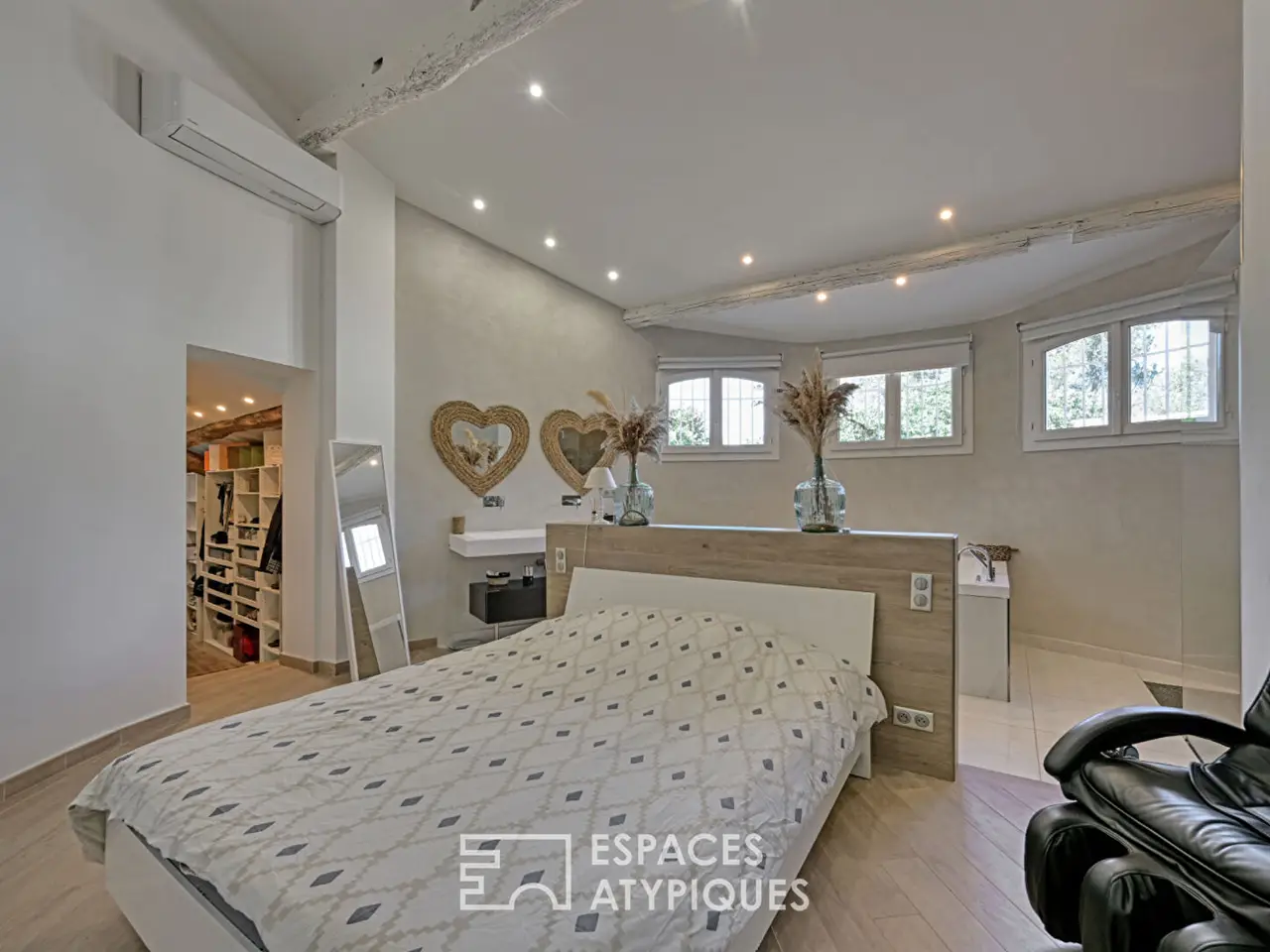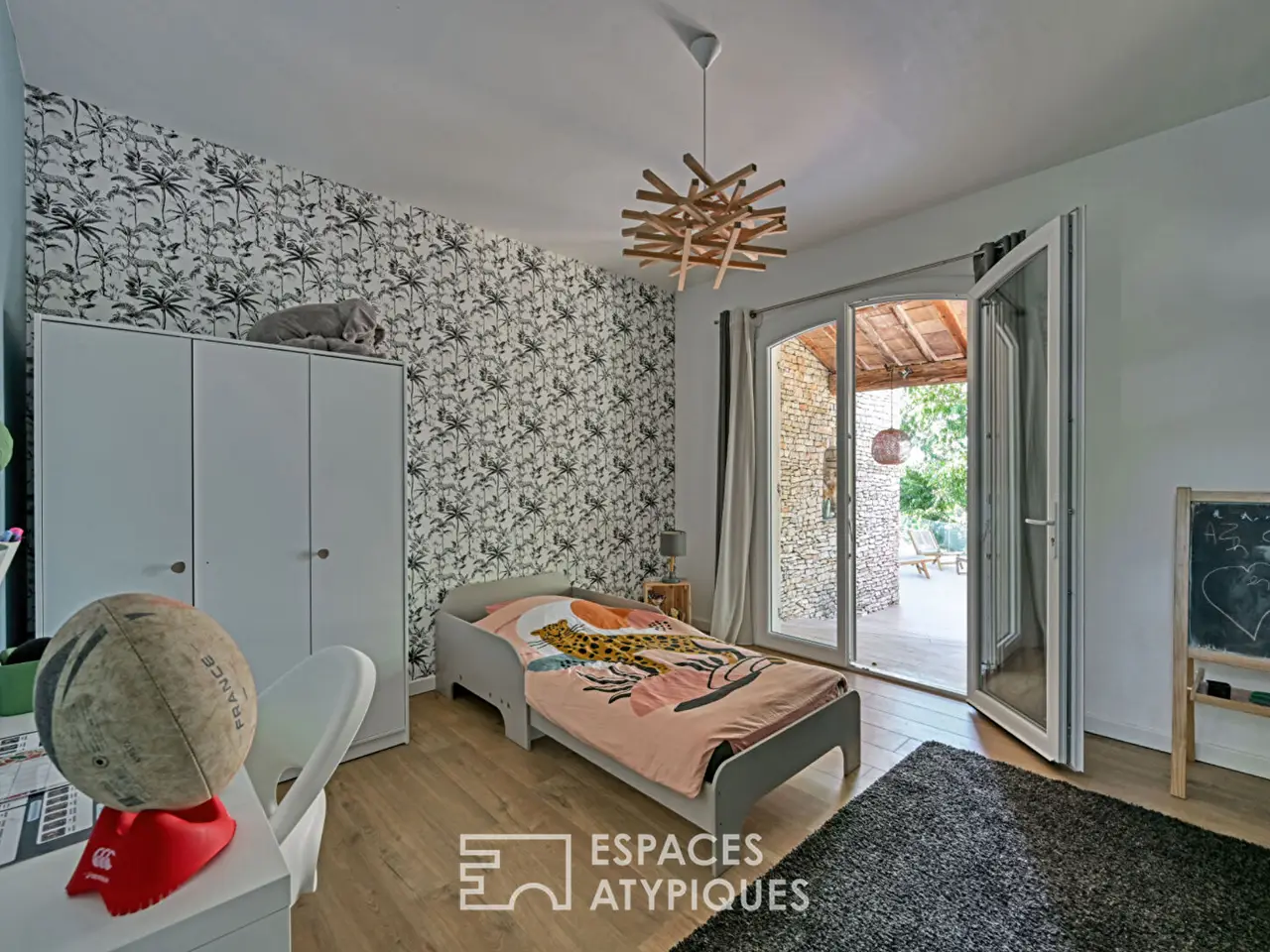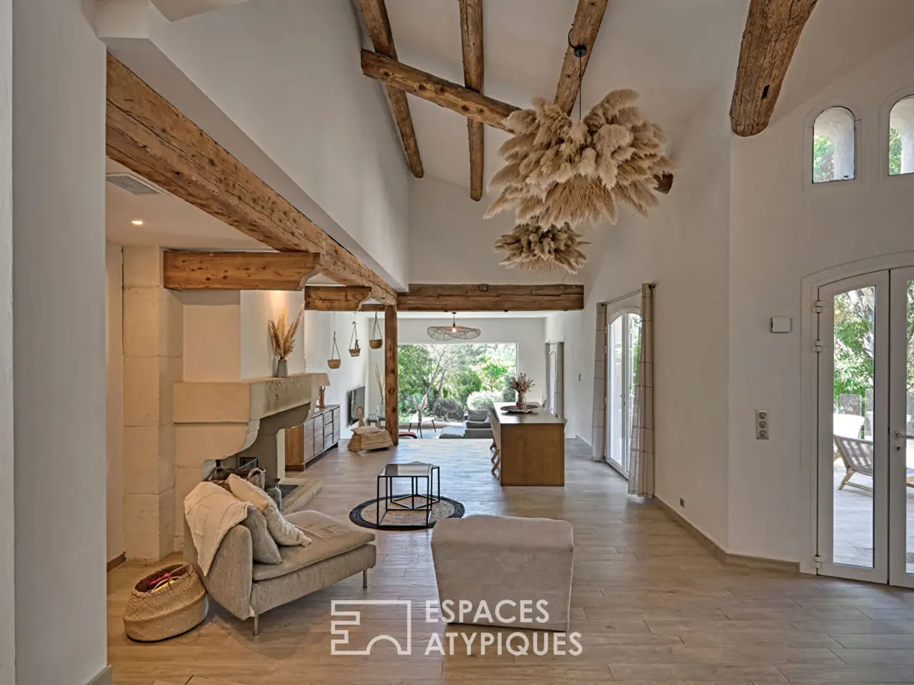 Just minutes from downtown Nimes, nestled on a hillside, a rare living environment. On a meticulously landscaped 3000 sqm plot, this fully renovated old house offers 220 sqm of elegance and comfort, in a serene and luminous atmosphere. Upon entering, the eye is drawn to the generous volumes and the fluid flow between the spaces. Stone, glass, and natural materials intertwine skillfully, creating an ambiance that is both warm and contemporary. The spacious living room, bathed in light thanks to large bay windows, opens onto a private terrace with panoramic views of the surrounding nature. The central fireplace and the attention paid to every decorative detail reinforce this feeling of well-being. The open, fully equipped kitchen extends this convivial living space, designed for entertaining. On the ground floor, two elegant bedrooms and a shower room welcome guests, while a master suite with a private bathroom offers an intimate and refined cocoon. Upstairs, a hotel-worthy suite, with a custom-made dressing room and a bathroom equipped with a whirlpool tub for two, invites absolute relaxation. Outside, the Mediterranean garden evokes a Provencal postcard, with its stone walls. Every corner has been designed to offer moments of calm or conviviality. A beautiful swimming pool completes this ensemble, accompanied by its pool house and a fully equipped summer kitchen. This villa perfectly combines character and modern comfort. It also features photovoltaic panels for better energy management, as well as four private parking spaces. This unique place is an invitation to slow down, to contemplate, to live fully. A rare house, designed as a refuge of beauty and light, just steps from all amenities. ENERGY CLASS B (107) / CLIMATE CLASS A (3) Estimated average amount of annual energy expenditure for standard use: between 1694 and 2292 euros/year Additional information * 6 rooms * 4 bedrooms * 2 bathrooms * 1 bathroom * Outdoor space : 2800 SQM * Parking : 4 parking spaces * Property tax : 3 850 € Energy Performance Certificate Primary energy consumption b : 107 kWh/m2.year High performance housing