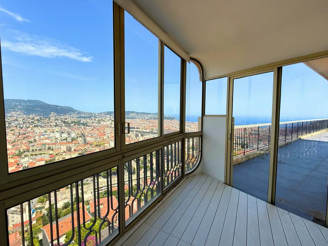 In a dominant position, this 136 sqm (136.05 Carrez) rooftop is an ode to the art of living in Nice. Its 150 sqm terrace, a true belvedere, offers a sought-after panorama of the sea, the green hills and the vibrant city. A Mediterranean oasis takes root there, between yuka, cycads and banana trees, creating an idyllic setting.A perfectly appointed summer kitchen (plancha, fridge, worktop) promises enchanting moments, in the open air. Inside, a very large 74 sqm living space, enhanced by a boudoir-like veranda, and by a fitted and equipped open kitchen, invites conviviality.The master suite, a haven of refinement, offers a bathroom with a spacious walk-in shower and a vast dressing room, with the possibility of setting up an office or a bedroom.A layout incorporating the veranda would allow the creation of an additional bedroom.A fitted back kitchen with an American fridge, a laundry room, a large storage space on the terrace, air conditioning, an alarm: everything has been designed to live in a comfortable and exceptional living environment.This gem is part of a secure residence with a swimming pool, complemented by a cellar and covered outdoor parking.ENERGY CLASS: C / CLIMATE CLASS: C Estimated average amount of annual energy expenditure for standard use, established from the prices for the years 2021, 2022, 2023 is between EUR1,781 and EUR2,409.Information on the risks to which this property is exposed is available on the Georisques website: www.georisques.gouv.frREF. 11759Additional information* 4 rooms* 2 bedrooms* 1 bathroom* Floor : 5* 5 floors in the building* Parking : 1 parking space* 110 co-ownership lots* Annual co-ownership fees : 7 200 €* Property tax : 4 427 €* Proceeding : NonEnergy Performance CertificateEPC blank or in progressAgency feesThe fees include VAT and are payable by the vendorMediatorMediation Franchise-Consommateurswww.mediation-franchise.com29 Boulevard de Courcelles 75008 ParisInformation on the risks to which this property is exposed is available on the Geohazards website : www.georisques.gouv.fr