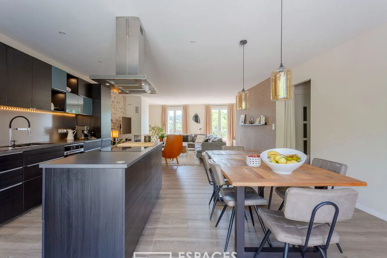 Hidden from view, in the heart of a typically Uzes stone setting, this 258sqm property reveals itself as a hidden treasure, just a few steps from the lively Place aux Herbes.Two houses, like two breaths of fresh air. One family-friendly, generous, bathed in light. The other, more intimate, perfect for friends, grown-up children, or the stays of passing guests. Between the two, a garden like a refuge, and a long, gentle Roman-style swimming pool, heated to better stretch out the sunny days.The ancient stone tells the story of the place, while the large openings write that of a bright daily life, open to the outside. Everywhere, light enters, soft and natural, gliding over the walls and highlighting the nobility of the materials.The main house opens onto a generous 60 sqm living space, where the volumes interact seamlessly: open kitchen, dining room, living room around a gas fireplace, designed for winter evenings when we still dream of summer.Two bedrooms, a bathroom and toilets complete this level. Upstairs, three additional bedrooms, two with private bathrooms, a large dressing room and two toilets invite you to relax. Everything is air-conditioned, fluid, functional and yet unique.The guest house, meanwhile, offers two bedrooms, a bathroom, a living room with kitchen, and opens onto a shaded terrace, ideal for slow reading or endless conversations.Two independent entrances complete this configuration, paving the way for seasonal rental use or simply for a life with variable geometry, between family privacy and chosen welcome. A double garage of 60 sqm with automatic gate completes the whole.A rare place, between heritage and poetry, where each stone seems to have been laid to welcome a story to come.Contact: Virginie 06 77 39 33 14ENERGY CLASS: C / CLIMATE CLASS: BEstimated average amount of annual energy expenditure for standard use, established from energy prices for the year 2021 2022 2023: between 1740 and 2420 eurosREF. 11114Additional information* 10 rooms* 7 bedrooms* 1 bathroom* 3 shower rooms* Outdoor space : 450 SQM* Property tax : 2 500 €Energy Performance CertificateEPC blank or in progressEstimated average annual energy costs for standard use, indexed to specific years 2021, 2022, 2023 : between 1740 € and 2420 € Subscription IncludedAgency feesThe fees include VAT and are payable by the vendorMediatorMediation Franchise-Consommateurswww.mediation-franchise.com29 Boulevard de Courcelles 75008 ParisInformation on the risks to which this property is exposed is available on the Geohazards website : www.georisques.gouv.fr