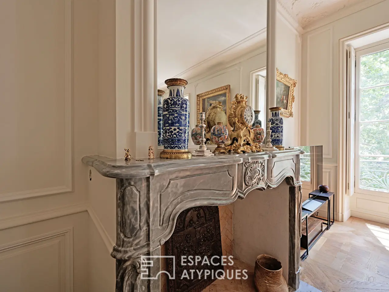 In the heart of the Jardins de la Fontaine in Nimes, this exceptional apartment with 6 main rooms on 212m2 occupies the entire upper floor of one of the most beautiful private mansions of the 19th century. Entirely restored with high quality materials, it offers a timeless living environment. A beautiful living room with period marble fireplace, a dining room with period walnut fireplace, four bedrooms, a bathroom and two shower rooms, make up this apartment ideally located on the quays. Out of sight, a magnificent 156 m2 terrace offers a breathtaking view of the Tour Magne. A large 35 m2 garage with mezzanine and cellar and a 32 m2 wine cellar complete the ensemble. File on request. REF. 7965 Additional information * 6 rooms * 4 bedrooms * 1 bathroom * 1 bathroom * Floor : 3 * 4 floors in the building * 4 co-ownership lots * Annual co-ownership fees : 2 000 € * Proceeding : Non