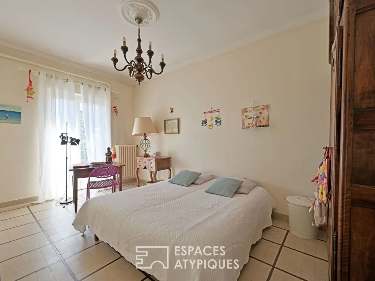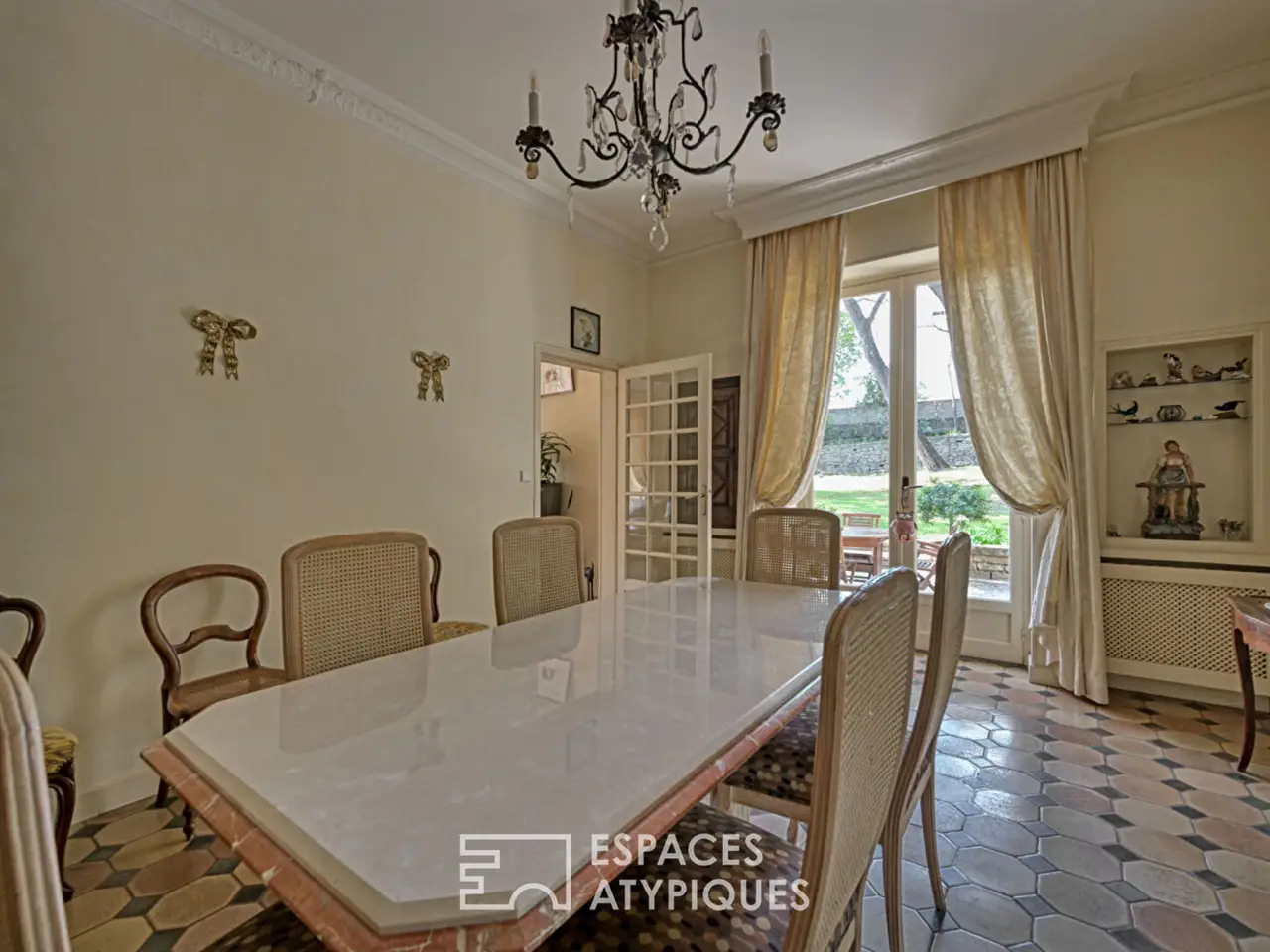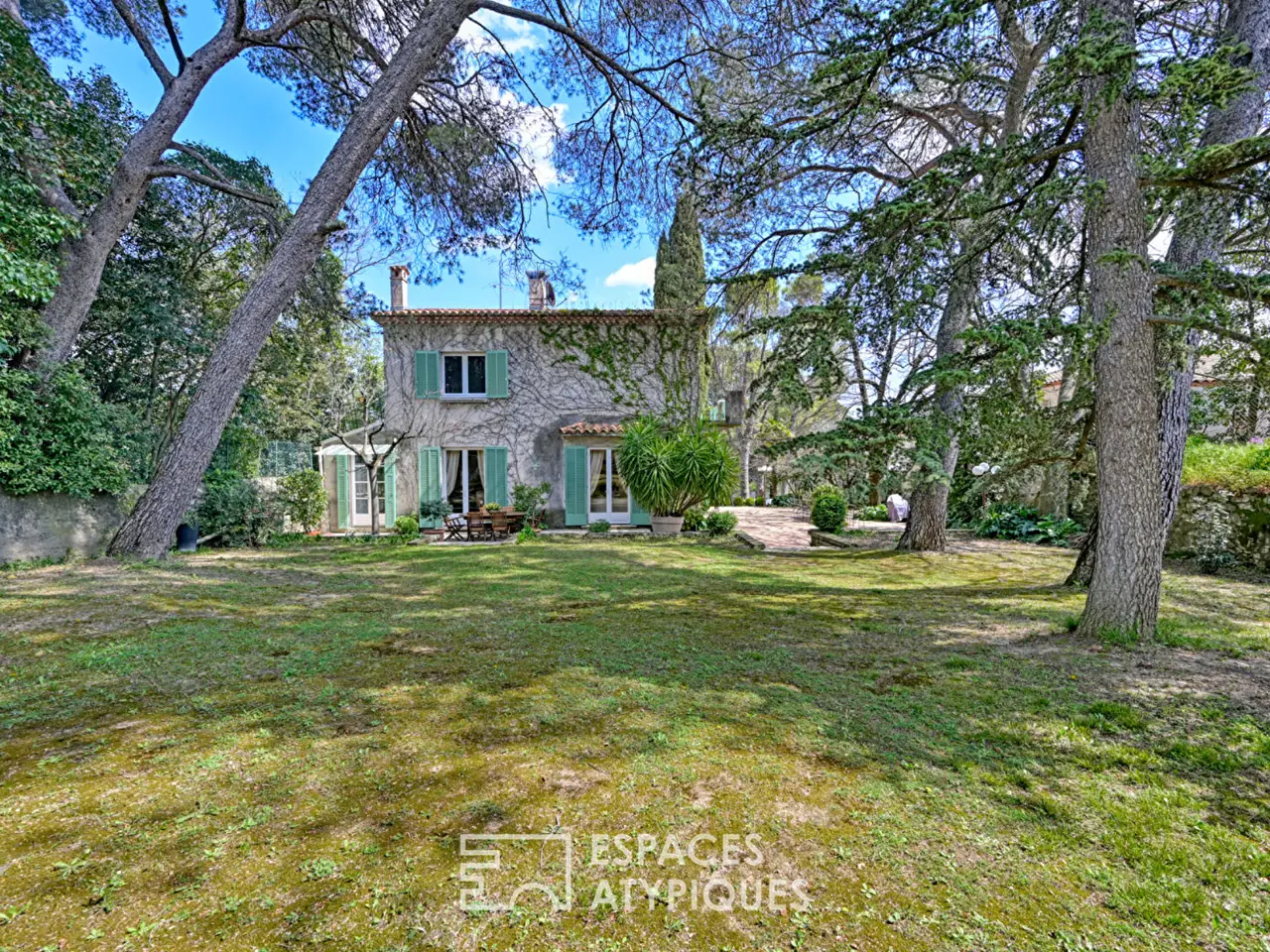 In one of the most sought-after neighborhoods in Nimes, close to the city center, this authentic 1950s house will captivate you with its timeless charm and exceptional potential. Set on a magnificent wooded and landscaped plot of over 2,300 m², this property boasts a particularly charming garden. It offers 273 m² of living space, plus outbuildings and a garage. The ground floor features a light-filled living room with a fireplace, a dining room, a fitted kitchen, and a games room. Each room opens onto spacious terraces, designed as true outdoor spaces, perfect for al fresco dining and relaxing moments. Upstairs, the sleeping area includes an office and four bedrooms, one with a private shower room, as well as an additional bathroom. The perfectly finished basement offers over 100 m² of additional space, including a laundry room, cellar, boiler room, and a garage with an automatic door. Combining the charm of the past, the comfort of its spaciousness, and the quality of its surroundings, this property is a real opportunity for lovers of beautiful homes, to live as is or reinvent according to your desires. ENERGY CLASS: D / CLIMATE CLASS: D Estimated average annual energy costs for standard use, based on 2022 energy prices: between €3,022 and €4,088. Contact: Eleonore Brunel +33 6 66 23 78 64 REF. 10500 Additional Information * 7 rooms * 4 bedrooms * 1 bathroom * 1 powder room * Land area: 2,350 m² * Parking: 4 spaces * Property tax: €3,600 Energy performance audit Primary energy consumption d: 203 kWh/m²/year Extremely efficient housing
