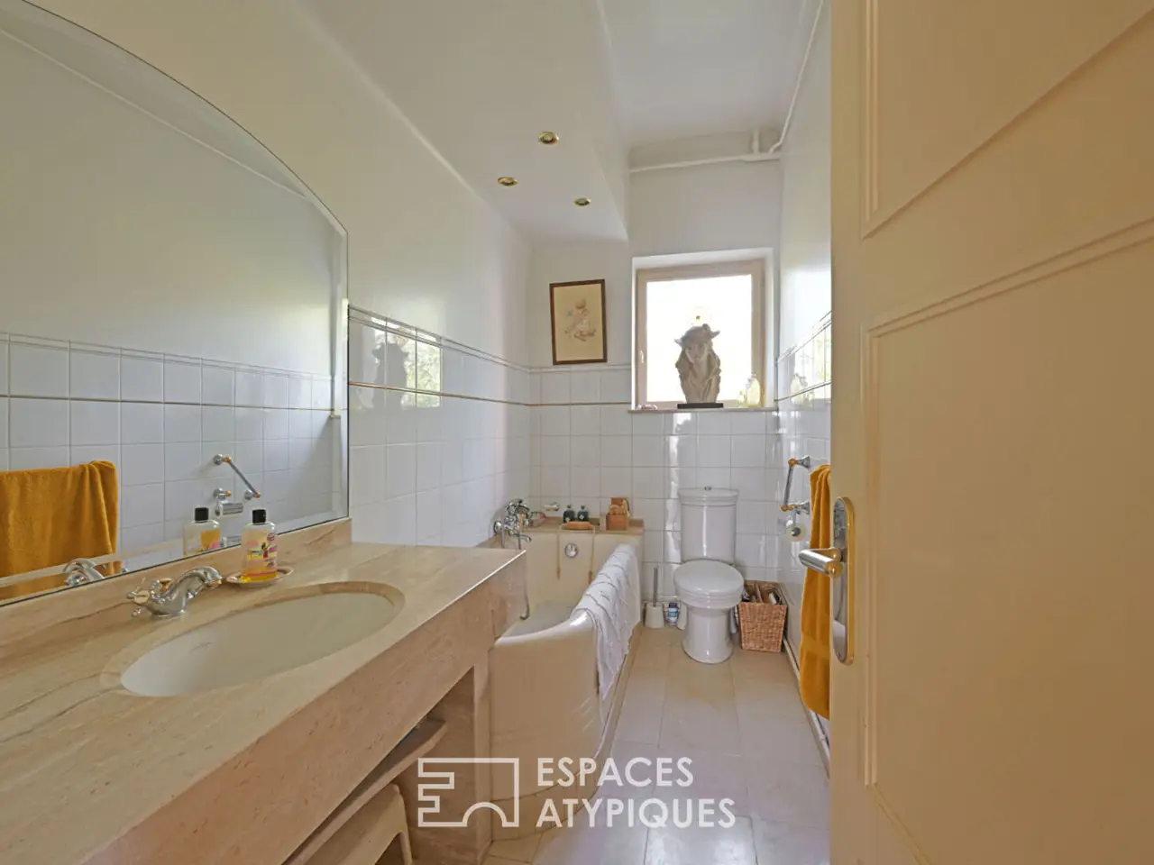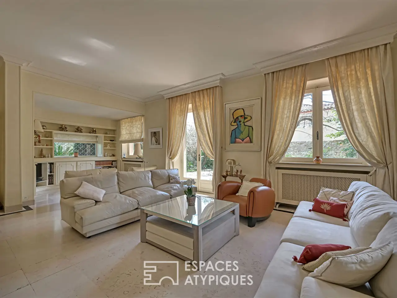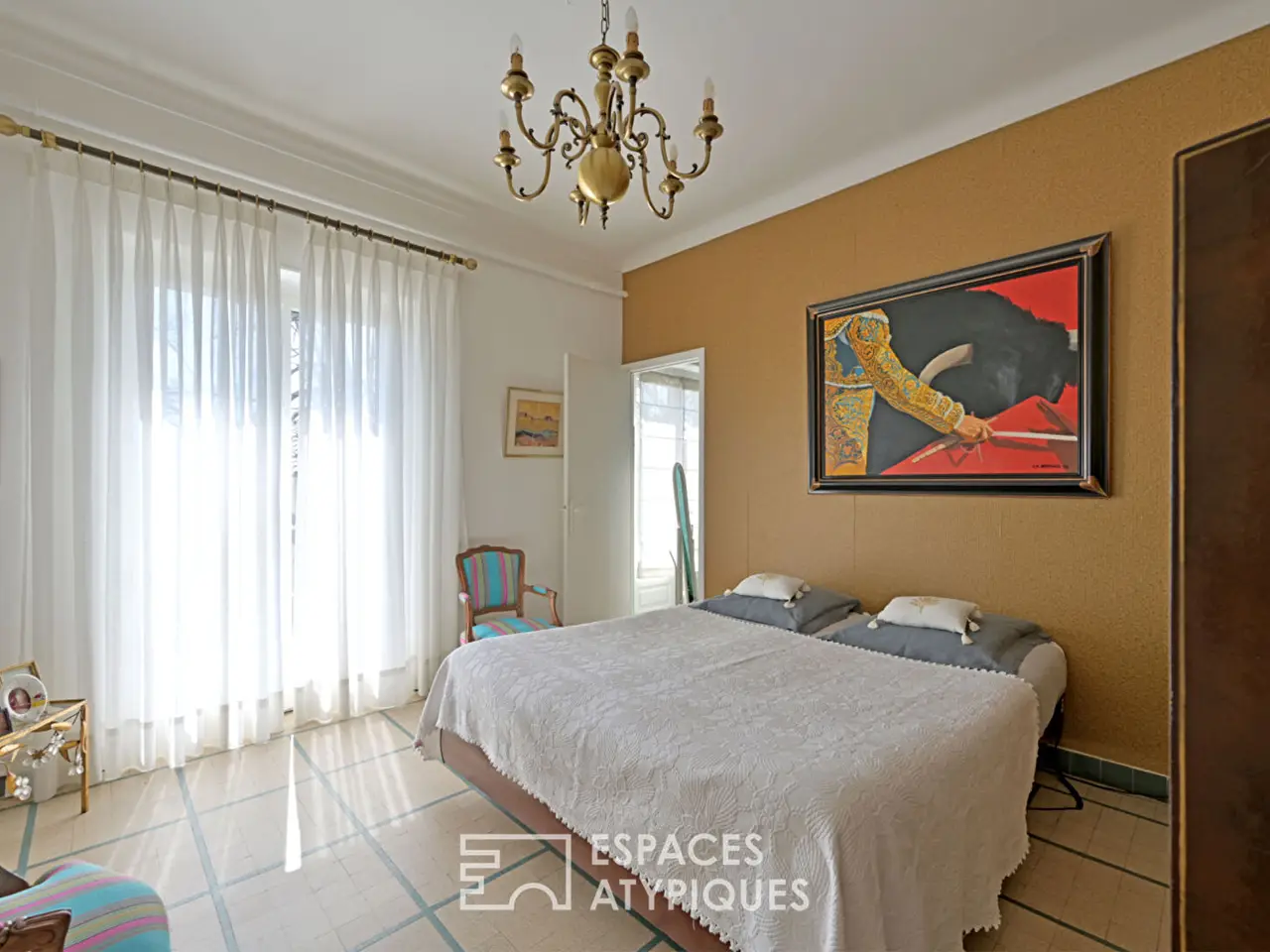 In one of the most sought-after neighborhoods in Nimes, close to the city center, this authentic 1950s house will captivate you with its timeless charm and exceptional potential. Set on a magnificent wooded and landscaped plot of over 2,300 m², this property boasts a particularly charming garden. It offers 273 m² of living space, plus outbuildings and a garage. The ground floor features a light-filled living room with a fireplace, a dining room, a fitted kitchen, and a games room. Each room opens onto spacious terraces, designed as true outdoor spaces, perfect for al fresco dining and relaxing moments. Upstairs, the sleeping area includes an office and four bedrooms, one with a private shower room, as well as an additional bathroom. The perfectly finished basement offers over 100 m² of additional space, including a laundry room, cellar, boiler room, and a garage with an automatic door. Combining the charm of the past, the comfort of its spaciousness, and the quality of its surroundings, this property is a real opportunity for lovers of beautiful homes, to live as is or reinvent according to your desires. ENERGY CLASS: D / CLIMATE CLASS: D Estimated average annual energy costs for standard use, based on 2022 energy prices: between €3,022 and €4,088. Contact: Eleonore Brunel +33 6 66 23 78 64 REF. 10500 Additional Information * 7 rooms * 4 bedrooms * 1 bathroom * 1 powder room * Land area: 2,350 m² * Parking: 4 spaces * Property tax: €3,600 Energy performance audit Primary energy consumption d: 203 kWh/m²/year Extremely efficient housing