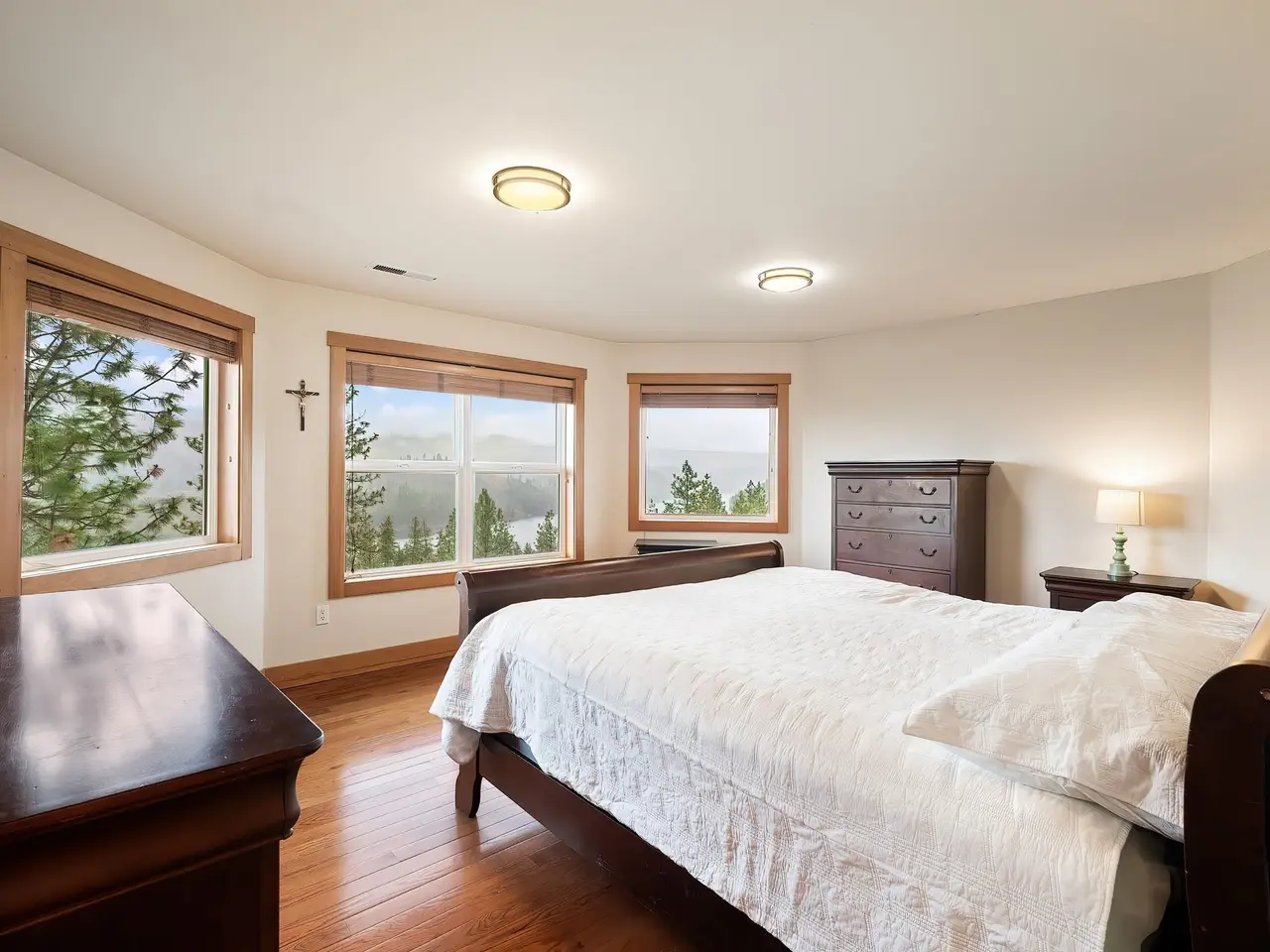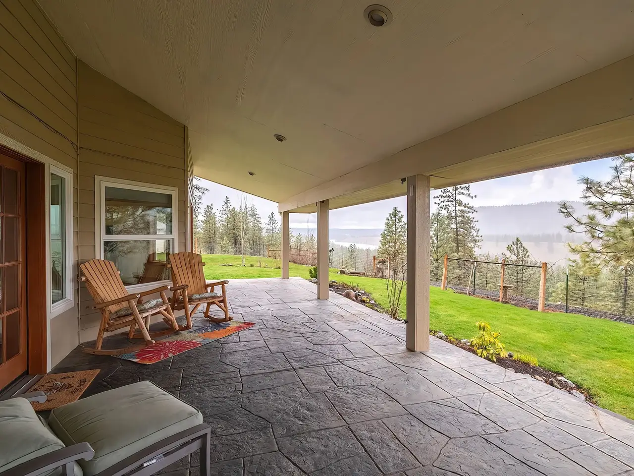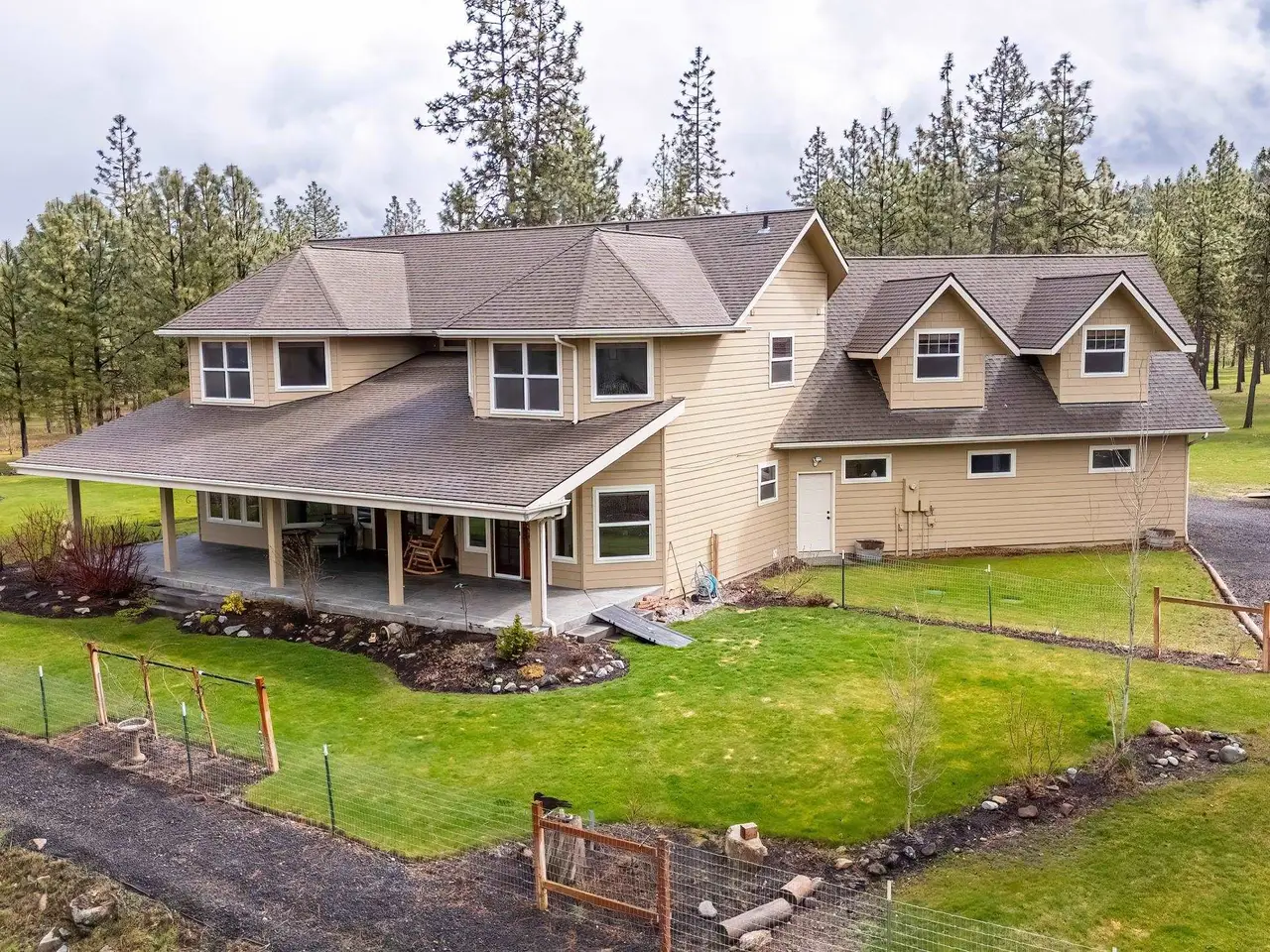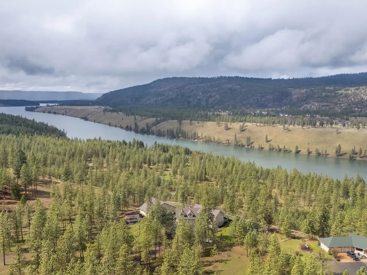 Welcome to this remarkable custom-built home, perfectly situated on 10 acres of park-like grounds with breathtaking views of Lake Spokane. This energy-efficient home boasts zonal Geothermal heating and cooling. The chef’s kitchen is a dream, offering ample cabinet space, double ovens, and a spacious walk-in pantry. The main floor includes a guest suite with an attached bath, a cozy family room, a formal living room, an office, a half bath, and a mudroom for added convenience. Upstairs, you’ll find a large master suite, two generously sized bedrooms, a laundry room, and another full bath. Don’t miss the impressive 687 sq. ft. bonus room, perfect for entertainment or additional living space. For car enthusiasts and hobbyists, the home features an attached 3-car garage and a massive 40x62 detached shop with radiant floor heat in the center bay, making it ideal for year-round use. Enjoy sunsets and endless river views from the expansive back patio that extends the length of the home.