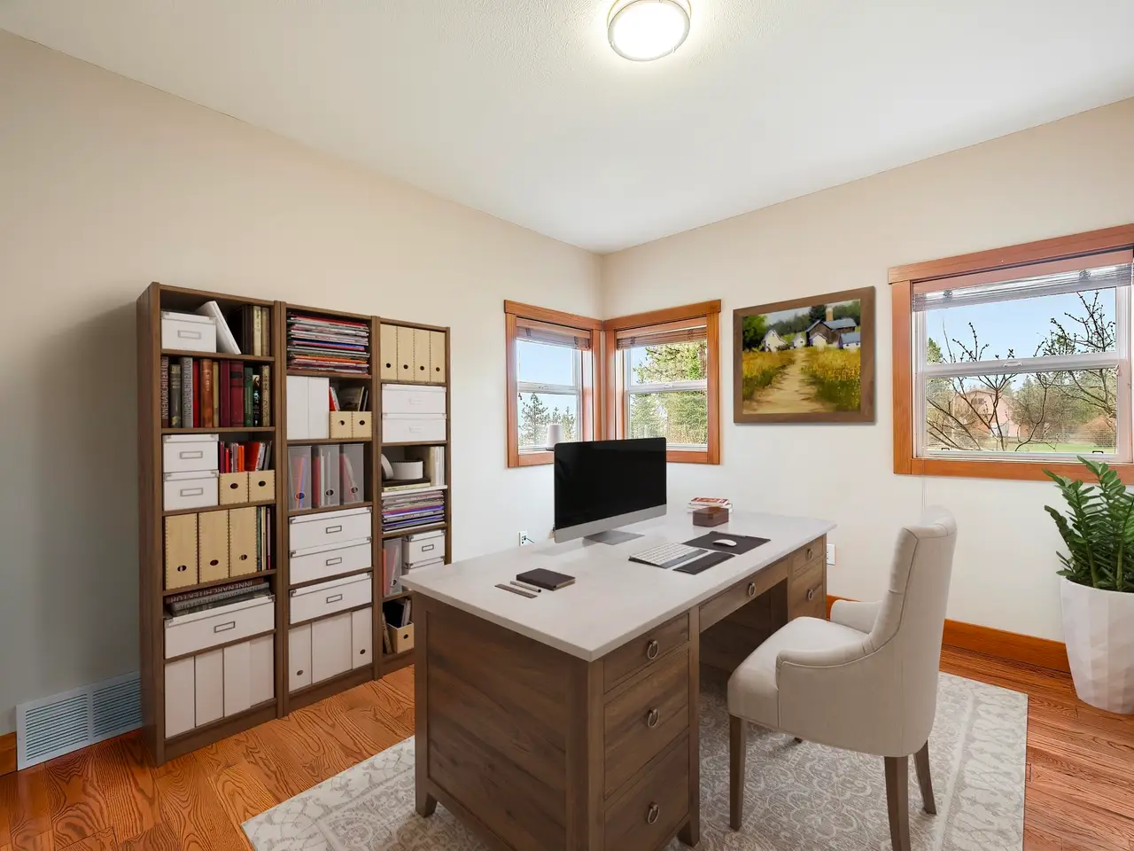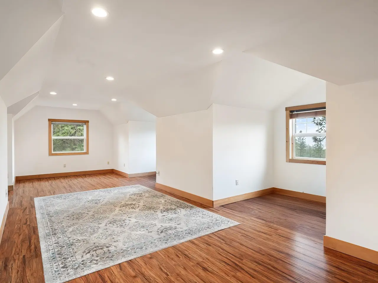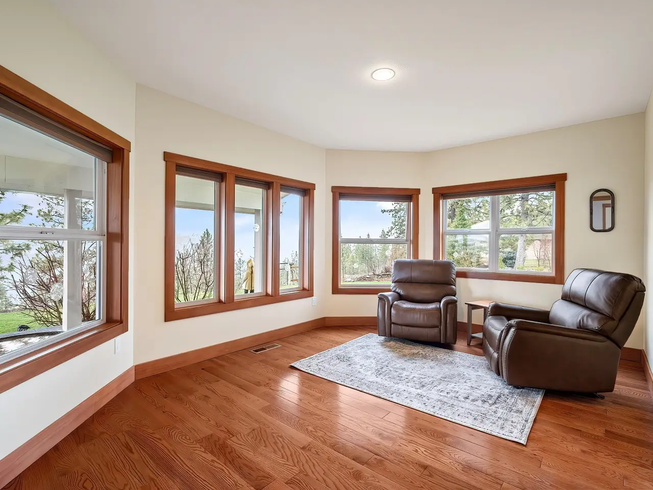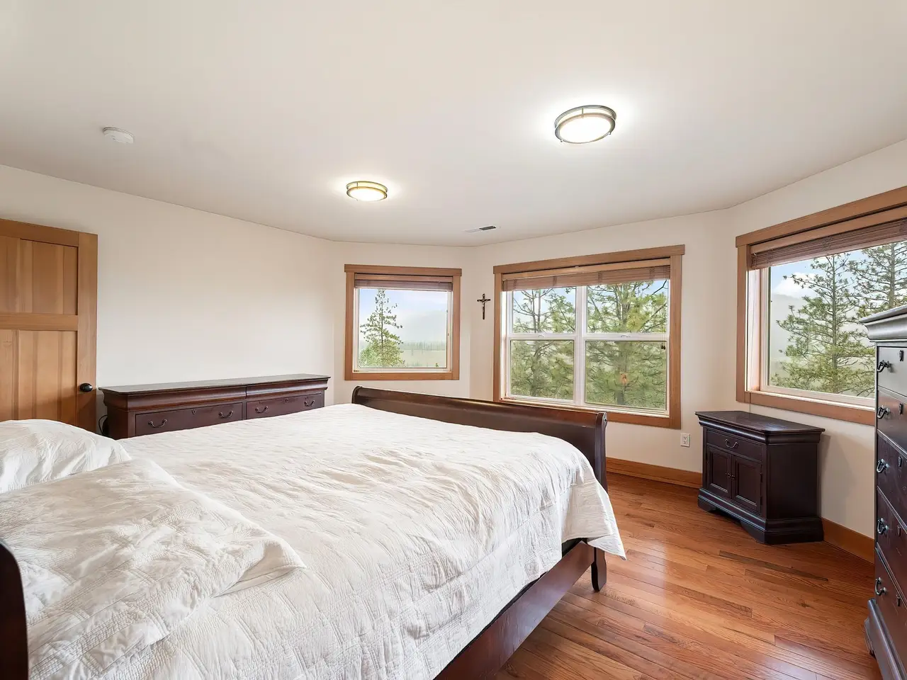Welcome to this remarkable custom-built home, perfectly situated on 10 acres of park-like grounds with breathtaking views of Lake Spokane. This energy-efficient home boasts zonal Geothermal heating and cooling. The chef’s kitchen is a dream, offering ample cabinet space, double ovens, and a spacious walk-in pantry. The main floor includes a guest suite with an attached bath, a cozy family room, a formal living room, an office, a half bath, and a mudroom for added convenience. Upstairs, you’ll find a large master suite, two generously sized bedrooms, a laundry room, and another full bath. Don’t miss the impressive 687 sq. ft. bonus room, perfect for entertainment or additional living space. For car enthusiasts and hobbyists, the home features an attached 3-car garage and a massive 40x62 detached shop with radiant floor heat in the center bay, making it ideal for year-round use. Enjoy sunsets and endless river views from the expansive back patio that extends the length of the home.