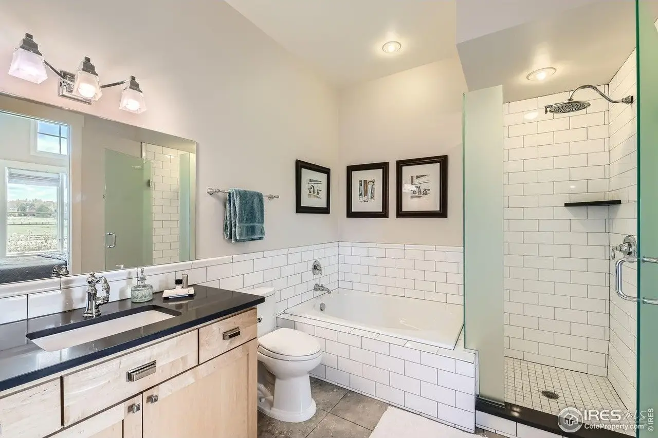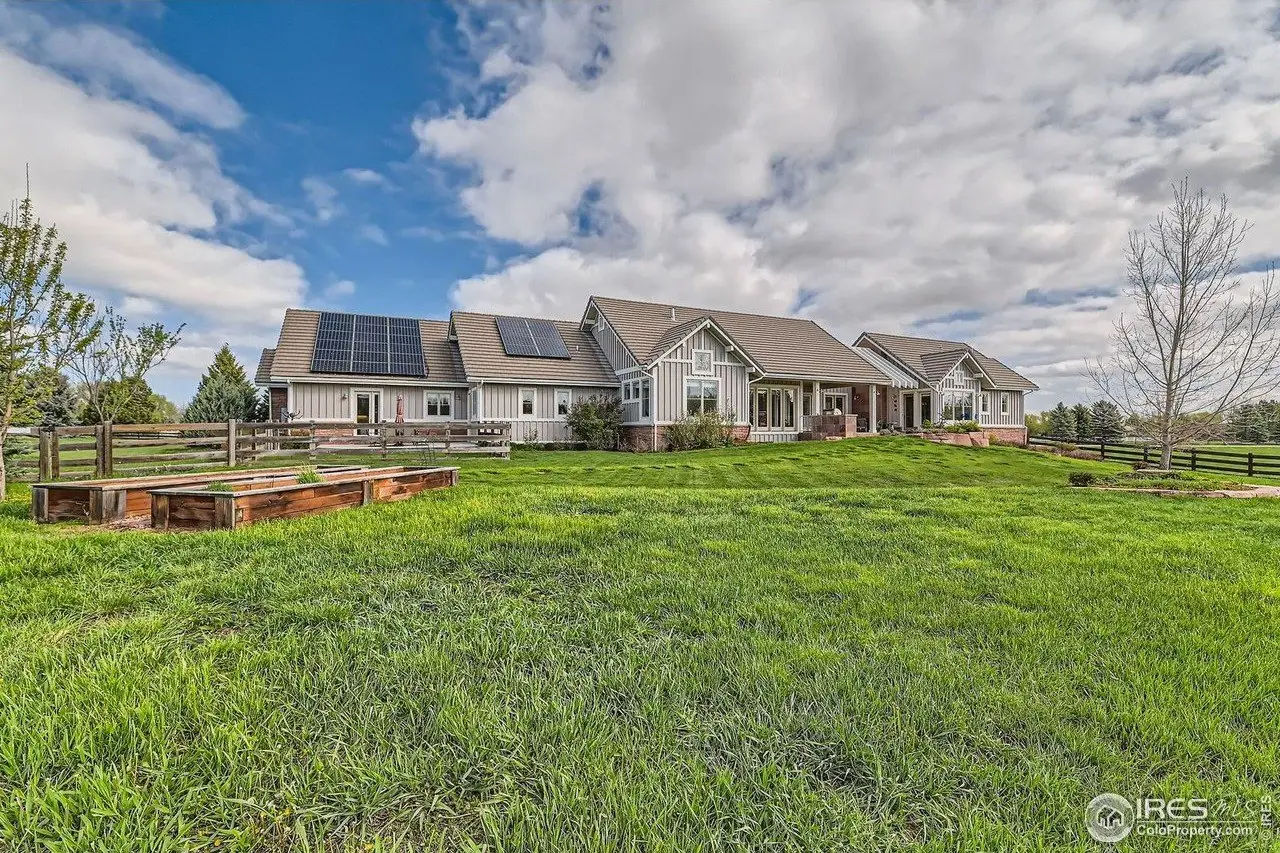 Welcome to 8392 Niwot Meadow Farm Rd, an architect-designed masterpiece in the serene and sought-after Niwot Meadow Farms community. Built by the owner, an accomplished architect, this one-of-a-kind estate blends timeless design with luxurious modern living. Set on 2.77 private, protected acres that cannot be built on, the home enjoys a tranquil, pastoral setting with expansive front views, offering peace, privacy, and a stunning connection to nature. The exterior features natural Colorado red sandstone, solid wood board-and-batten siding, and a concrete tile roof. Inside, vaulted ceilings with tongue-and-groove details, engineered wood floors, custom millwork and telescoping doors create light-filled spaces and seamless indoor-outdoor living. The gourmet kitchen includes Dacor appliances, a Miele built-in coffee maker, custom cabinetry with a rolling ladder, and a walk-in pantry. The great room showcases a horizontal fireplace with a red sandstone surround, flowing into the dining and outdoor areas. The main level offers a luxurious primary suite with a two-sided fireplace and stone accents; a guest suite with a private bath; a spacious office; a custom mudroom; an oversized two-car garage with a shop space and a built-in dog wash shower; and a separate one-car garage. A private studio suite with bath, wet bar and washer/dryer provides flexible living options. The lower level features a family room with a wet bar, three bedrooms, two bathrooms, a laundry room and ample storage. Outdoor living shines with a large covered patio, trellis, outdoor fireplace, and new landscaping. Sustainability meets luxury with geothermal heating and cooling, radiant floor heating, a solar PV system and new exterior paint. Located within walking and cycling distance to downtown Niwot, award-winning schools, and minutes to Boulder and Longmont, this extraordinary estate is a true legacy property.