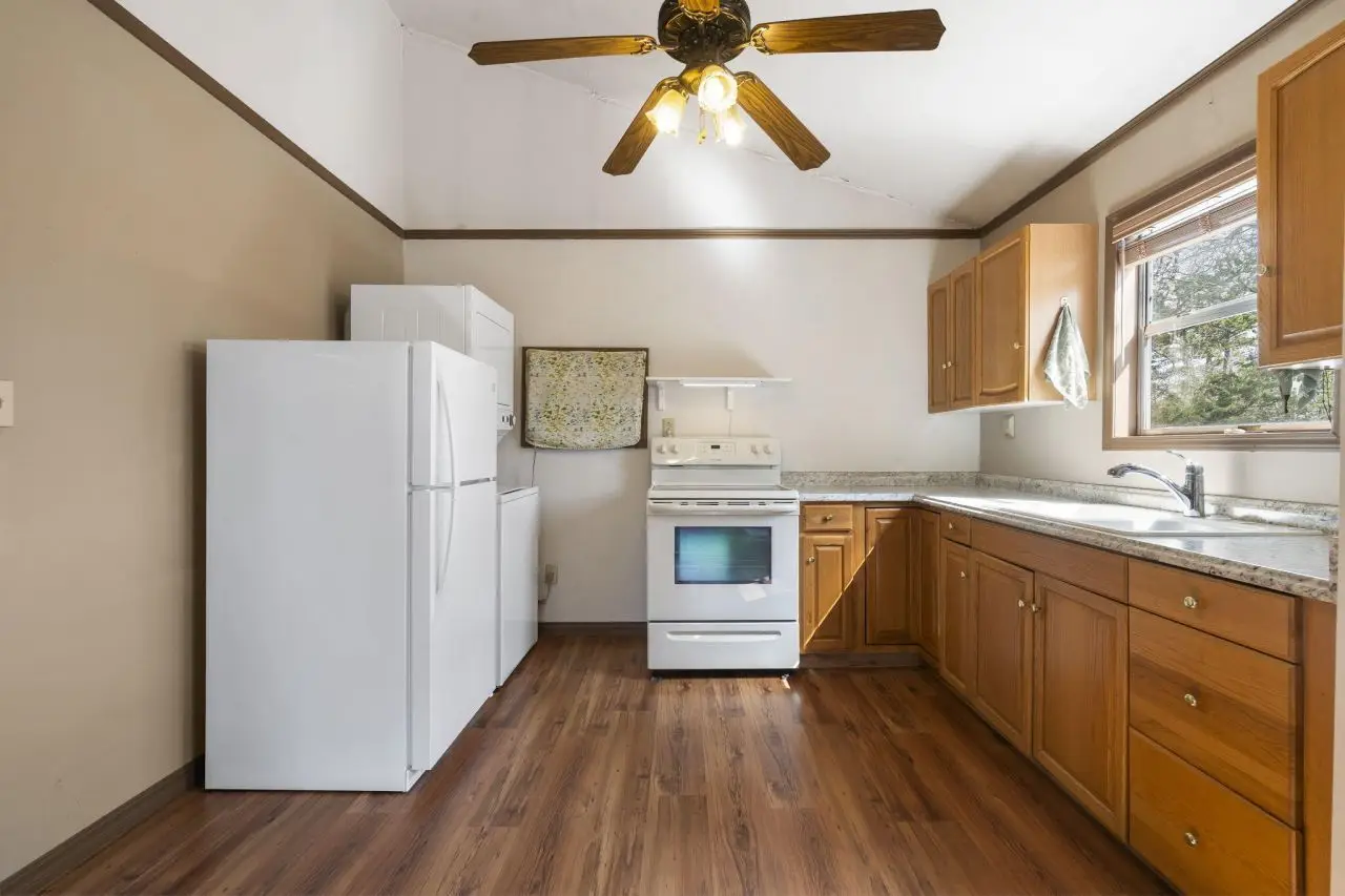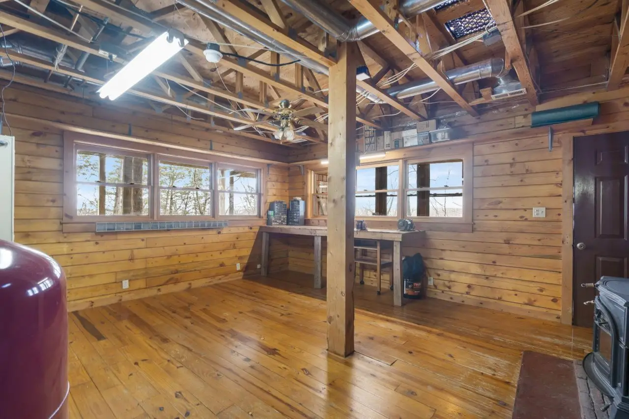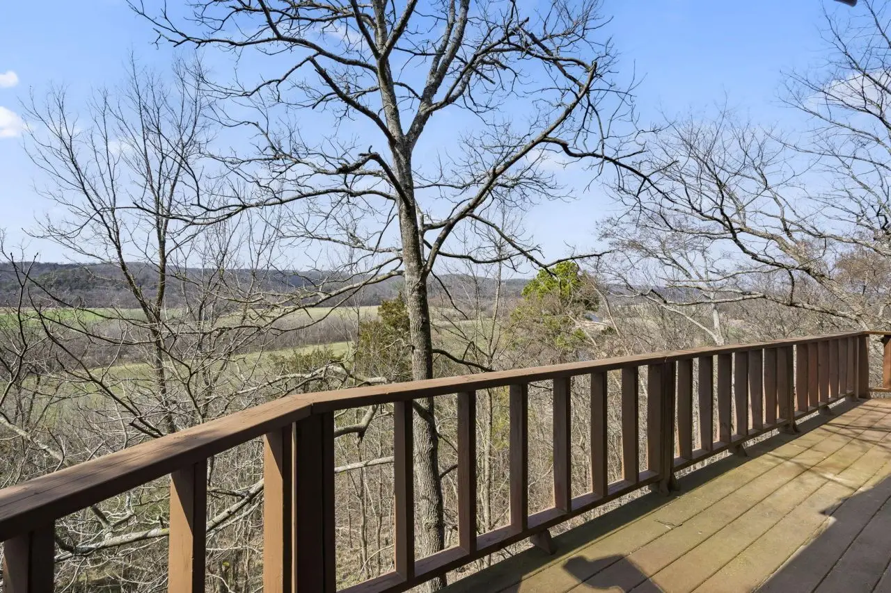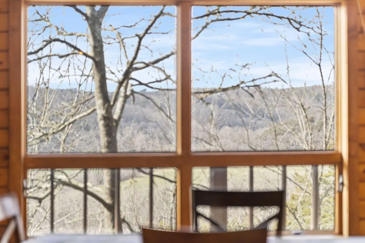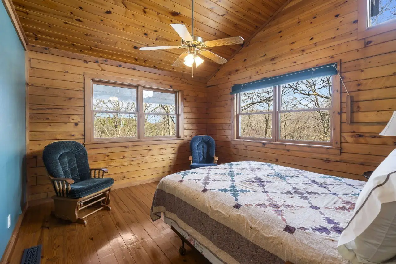 Private, peaceful and perfectly maintained--this two-story log home on 83 wooded acres offers a rare blend of rustic charm, modern comfort, and breathtaking natural beauty. Designed for exceptional mountain living, the home features an open concept main level with soaring vaulted ceilings, exposed wood beams and floor to ceiling windows that frame sweeping river and valley vistas. The spacious primary suite includes an ensuite bath, a custom walk-in closet and direct access to the wraparound deck--perfect for morning coffee while eagle watching and soaking in the serene privacy. Downstairs, you'll find two additional bedrooms, two full bathrooms, and a versatile workshop or hobby space, complete with a cozy wood-burning stove. A separate, fully renovated 1 bed/1bath guest house provides excellent privacy--ideal for visiting family, rental income, or remote work. Both addresses are move in ready and include all appliances. The oversized two-car garage offers ample storage. The property shares a paved driveway with one neighboring home but maintains a strong sense of seclusion throughout. The 83 acre parcel features mature hardwood forest, gently rolling hills and an elevated terrain overlooking the scenic Elk River Valley. Whether you're seeking a peaceful homestead, a weekend retreat, or simply a place to unwind and reconnect with nature, this property offers a rare opportunity--just a short, scenic drive to Bella Vista and Bentonville for easy access to shopping, dining and amenities.