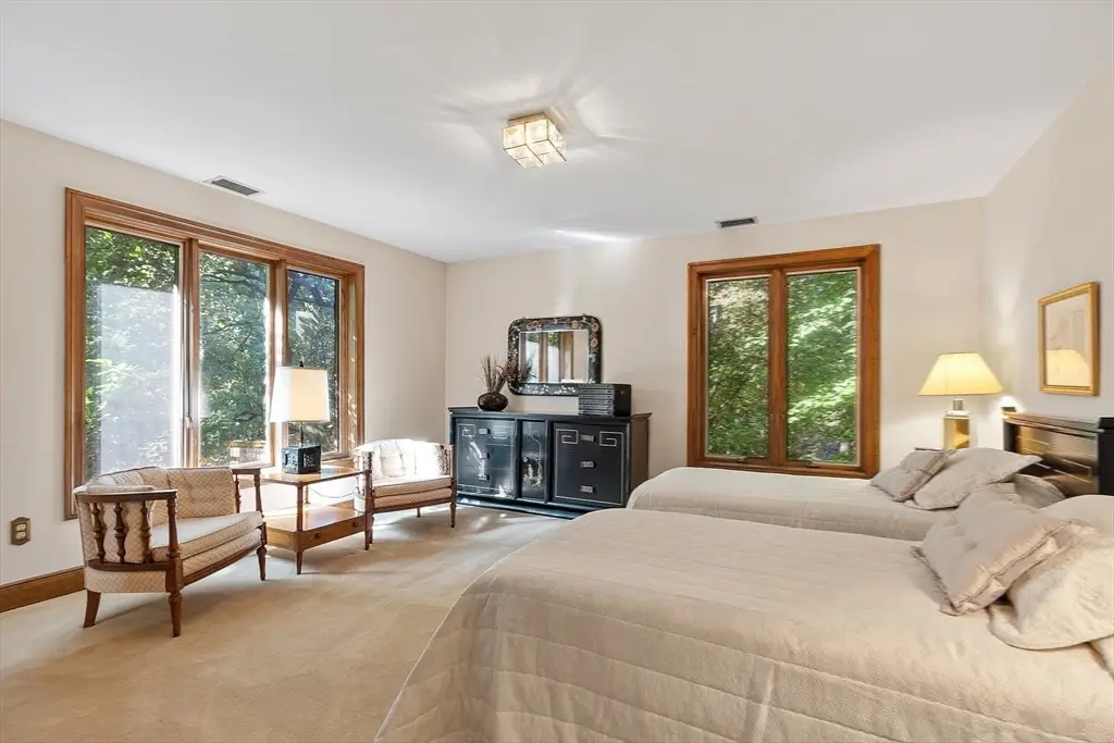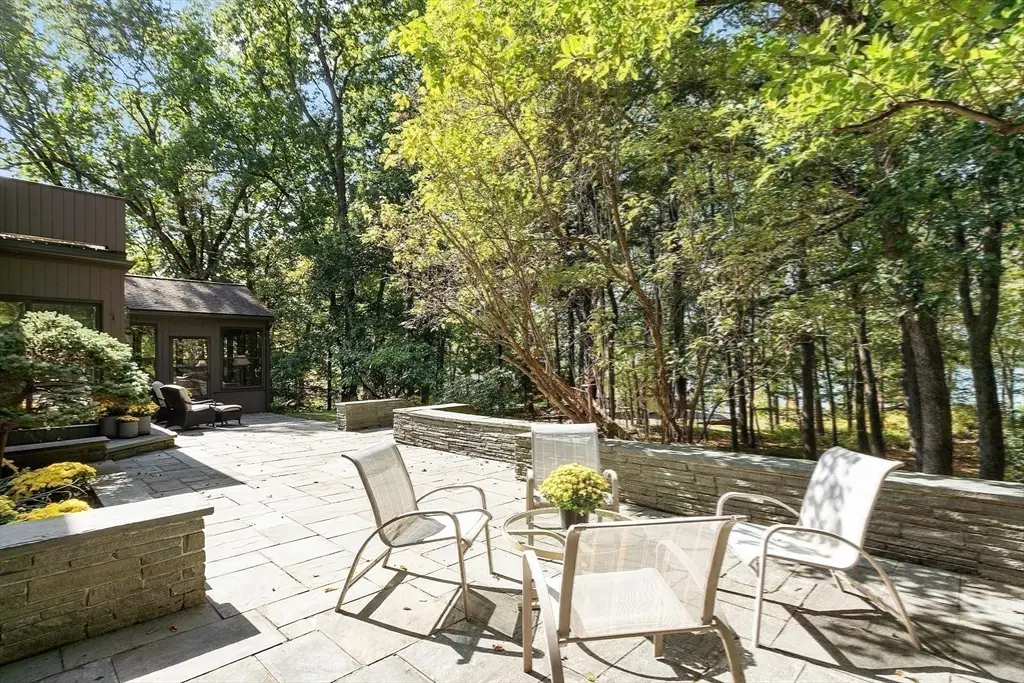 Sprawling contemporary residence with views of glorious Lake Cochichewick in prestigious cul-de-sac neighborhood of beautiful homes! Pristinely situated, this exceptional property offers ~6000sf of living space including expansive main level showcasing family room w/gas fireplace & hardwood, kitchen w/granite, stainless & abundance of cabinetry as well as spacious 3-season sunroom, home office w/built-ins & 2 half baths. Stunning dining room features French doors leading to patio & opens to over-sized living room creating perfect space for entertaining. Multiple lakeside doors & windows offer water views & lead to custom bi-level blue stone patios. Upper level has 4 bedrooms including vast primary suite w/dual bathrooms, walk-in closet, gas fireplace & balcony. Two bedrooms share full bath while fourth bedroom offers ensuite bath. Additionally, property has finished lower level & whole-house generator. This special property is engulfed in year round natural beauty & offers lake access.