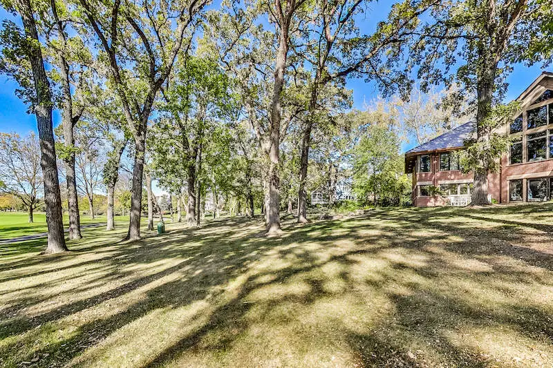 Designed by the talented and highly acclaimed architect, Ron McCormick. Iconic home situated on approximately 1.3 acres and overlooking the sweeping views of 16th fairway of Wynstone Golf Course. For those discriminating buyers desiring the finest of a unique custom built home with features including stone and woods incorporating the gorgeous oaks of outside and the contemporary oasis of the inside. One is welcomed by a dramatic entrance to almost 4000 square feet on the first floor! The layout and style of the home captures every aspect of the property. Ideal home for those seeking multi generational situation or more elegant and private guest space. Expansive primary suite on main level, blend of mid century and Frank Lloyd Wright tones in the kitchen, dining area, and great room with expensive flooring and wood touches. Upstairs provides the perfect guest quarters with living space, bedroom, and separate kitchenette area. The finished walkout emphasizes the openness of the home and highlights the floating staircase. Incredible spaciousness to entertain, enjoy the fine elements of the home, and the impressive property with towering trees. Recent HVAC replaced and one year new roof.