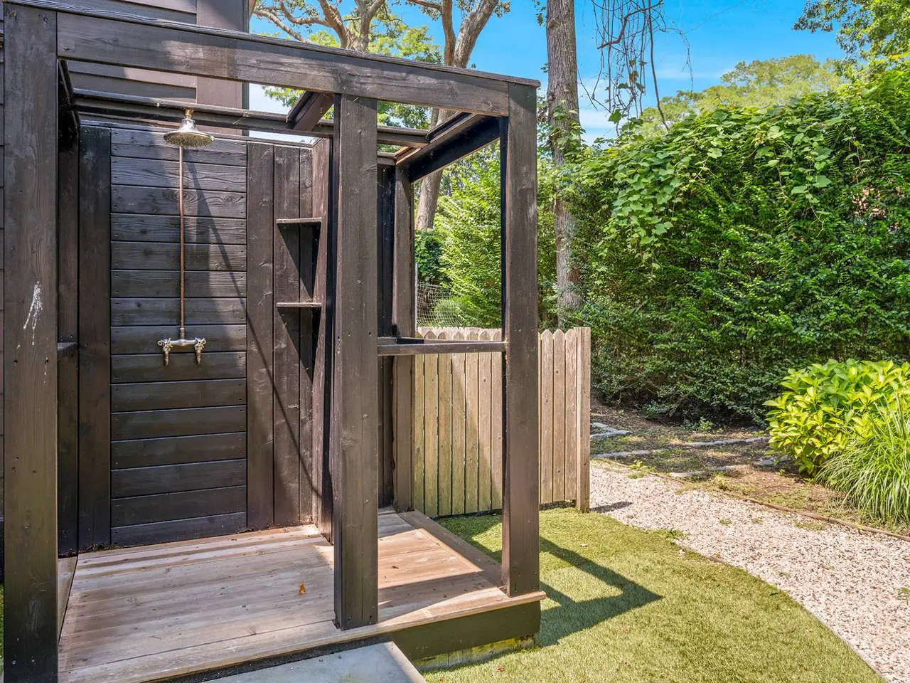 Discover the epitome of modern elegance at 37 Coves End Lane in North Haven, NY. A custom-built, transitional style home with 2,600+/- sf of beautifully designed interior living space just outside the Village of Sag Harbor. Featuring 4 bedrooms and 3 full bathrooms, this residence is designed for those who appreciate luxury and style. The gourmet kitchen is a chef's dream, featuring a Viking stove and hood, two Sub Zero refrigerators, and stainless-steel appliances. The torched black quartz countertops, white quartz accents, and backsplash, along with Du Chateau wide plank oak flooring, create a warm and elegant ambiance. The adjacent breakfast/dining room, with its soaring 18-foot cathedral ceilings and abundant natural light, offers stunning views of the pool and custom-designed backyard. The home includes two ensuite bedrooms, including a luxurious primary suite, and two additional bedrooms with charming custom lofts. The sunken great room, with its modern wood-burning fireplace, Du Chateau flooring, and cathedral ceilings, is bathed in natural light. The lower level is a haven for entertainment, featuring a chic gaming room currently set up as a professional race simulation room, an entertainment room, an office, and a dynamic sauna. Outside, enjoy the 20 x 40 solar-heated pool, outdoor shower, a chic covered gazebo, and a zen-like backyard with bluestone and polished white cement. The sunken garden sitting area is perfect for evening cocktails or lounging. To top it all off, this exceptional Sag Harbor property has water access at the end of the private cul-de-sac. Perfect for paddle boarding, kayaking and fishing. Live the Hamptons dream in turnkey luxury, convenience, and style just moments from the Village of Sag Harbor in North Haven.