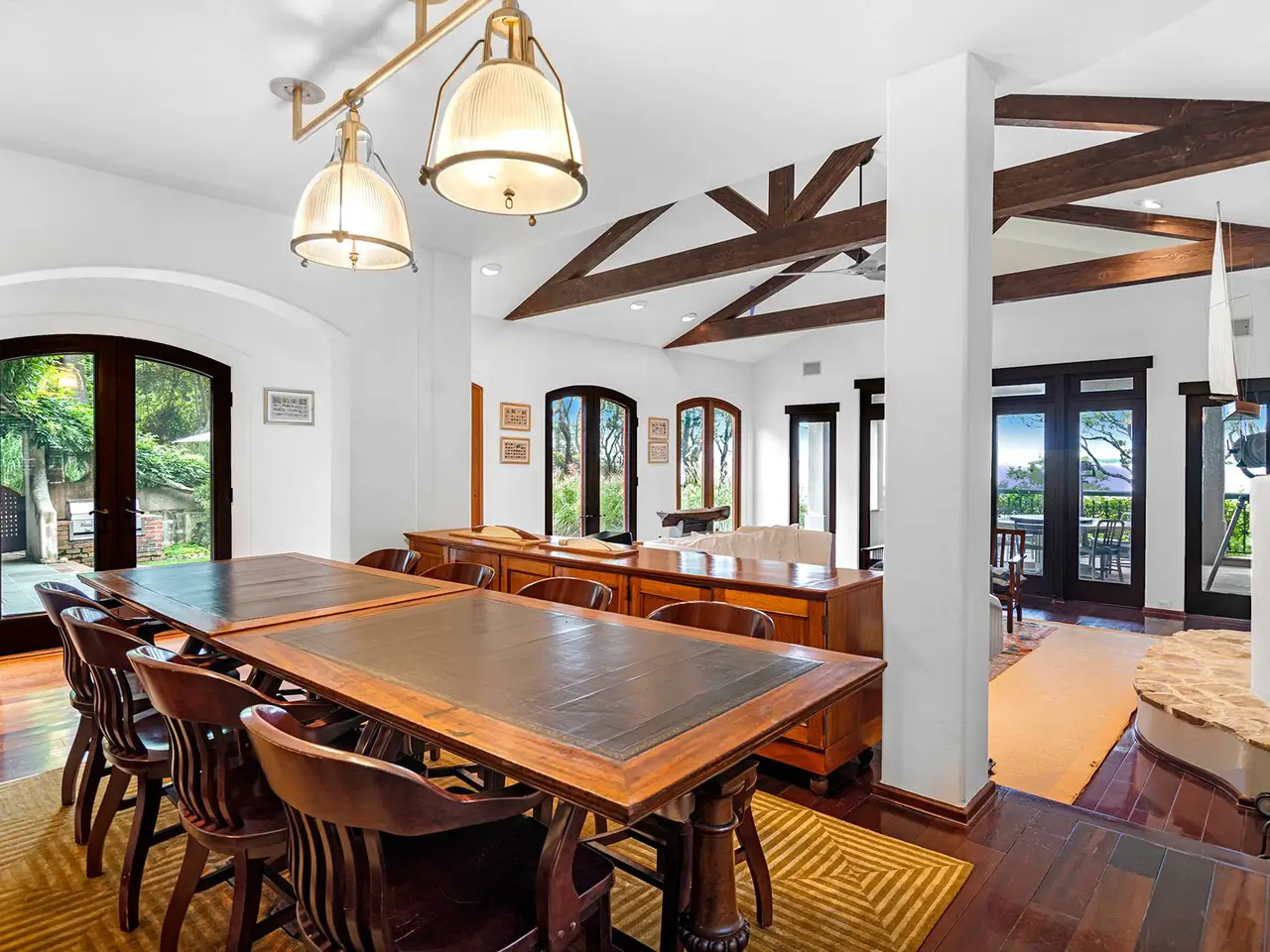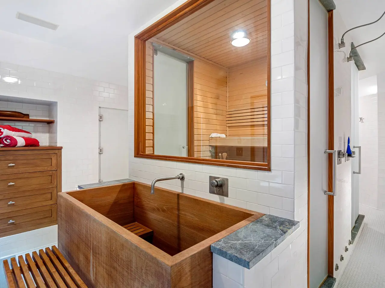 Luxury and comfort await you. This six-bedroom villa is designed for both indoor and outdoor living and an active waterfront lifestyle. Moor your boat just yards away in the bay, or lounge by the unique, wrap-around pool. There's also a full spa with sauna and steam shower, a gorgeous chef's kitchen, and intimate covered patios for relaxation and entertainment. The views over the bay at sunset are absolutely breathtaking, and the lush grounds filled with flowering trees and shrubs are reminiscent of the Tuscan countryside. A private chef is available for an additional cost.