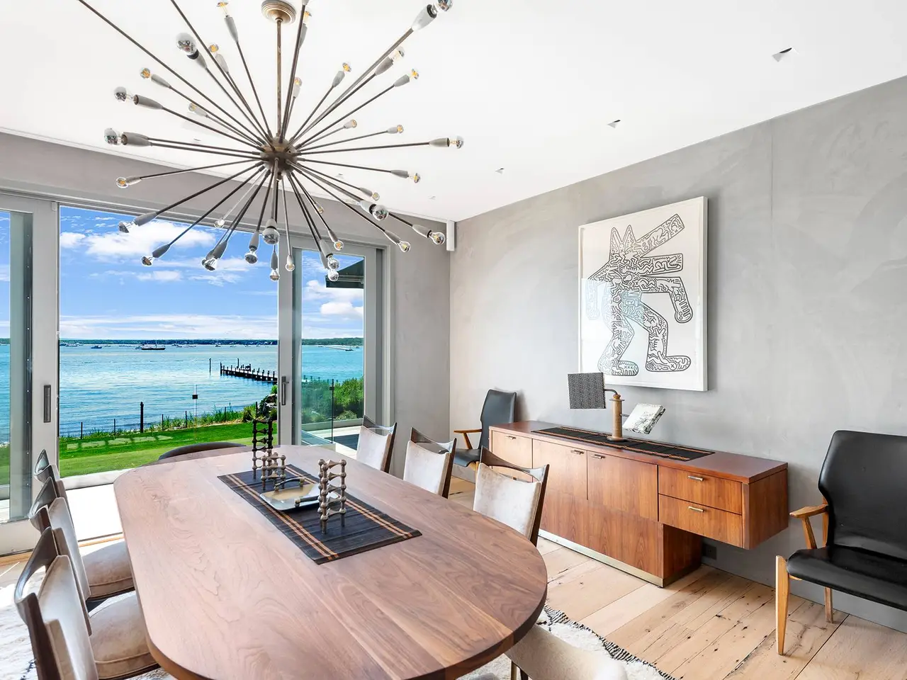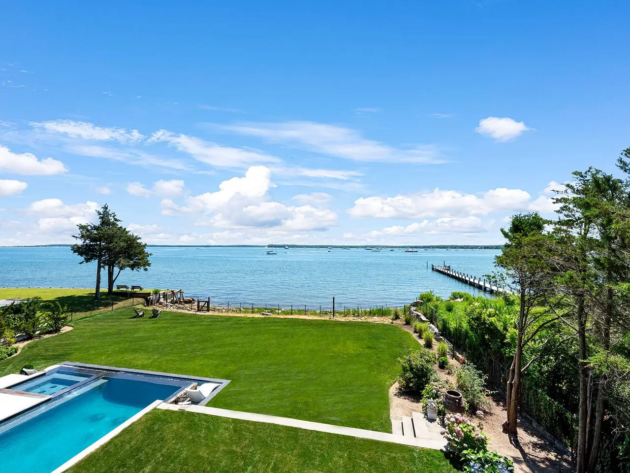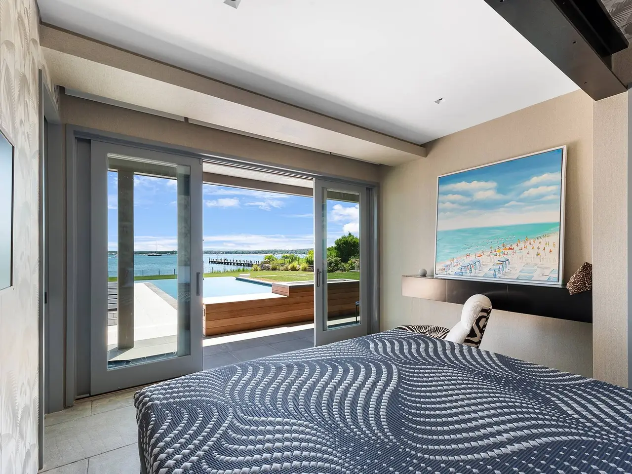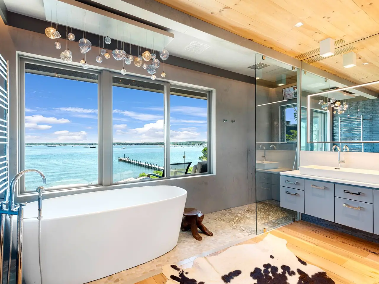 Experience the epitome of luxury in this newly renovated, modern waterfront property in Sag Harbor. This exceptional home offers breathtaking, unobstructed views of Sag Harbor Bay from every room thanks to walls of glass and an open-concept design. Relax in style on multiple private decks, around a saltwater infinity pool, or in the outdoor living room with a fireplace as you watch the yachts sail by. Inside, indulge in the gourmet kitchen, boasting top-of-the-line amenities that seamlessly flow into a cozy lounge area with unparalleled vistas. This designer masterpiece features five bedrooms, each with stunning water views, and 5.5 baths. The flexible layout allows for potential expansion, making room for a fifth bedroom or overflow space. Enjoy added luxuries like a gym, a roof deck, a finished loft play area with kitchenette, a media room, a steam shower, and wet bars. Custom tile work, radiant heated floors, a two-car garage with an electric vehicle charging station, and much more complete this unique home. Nestled in the private enclave of Bay Haven in North Haven, this jewel of a property is a rare find that combines sophisticated design with the serene beauty of its waterfront location. A boater's paradise awaits your arrival for your summer vacation!!