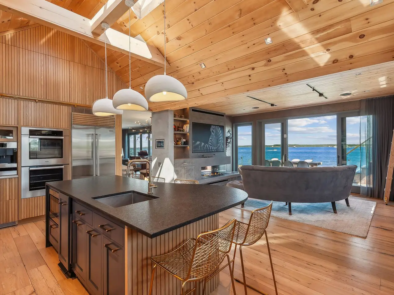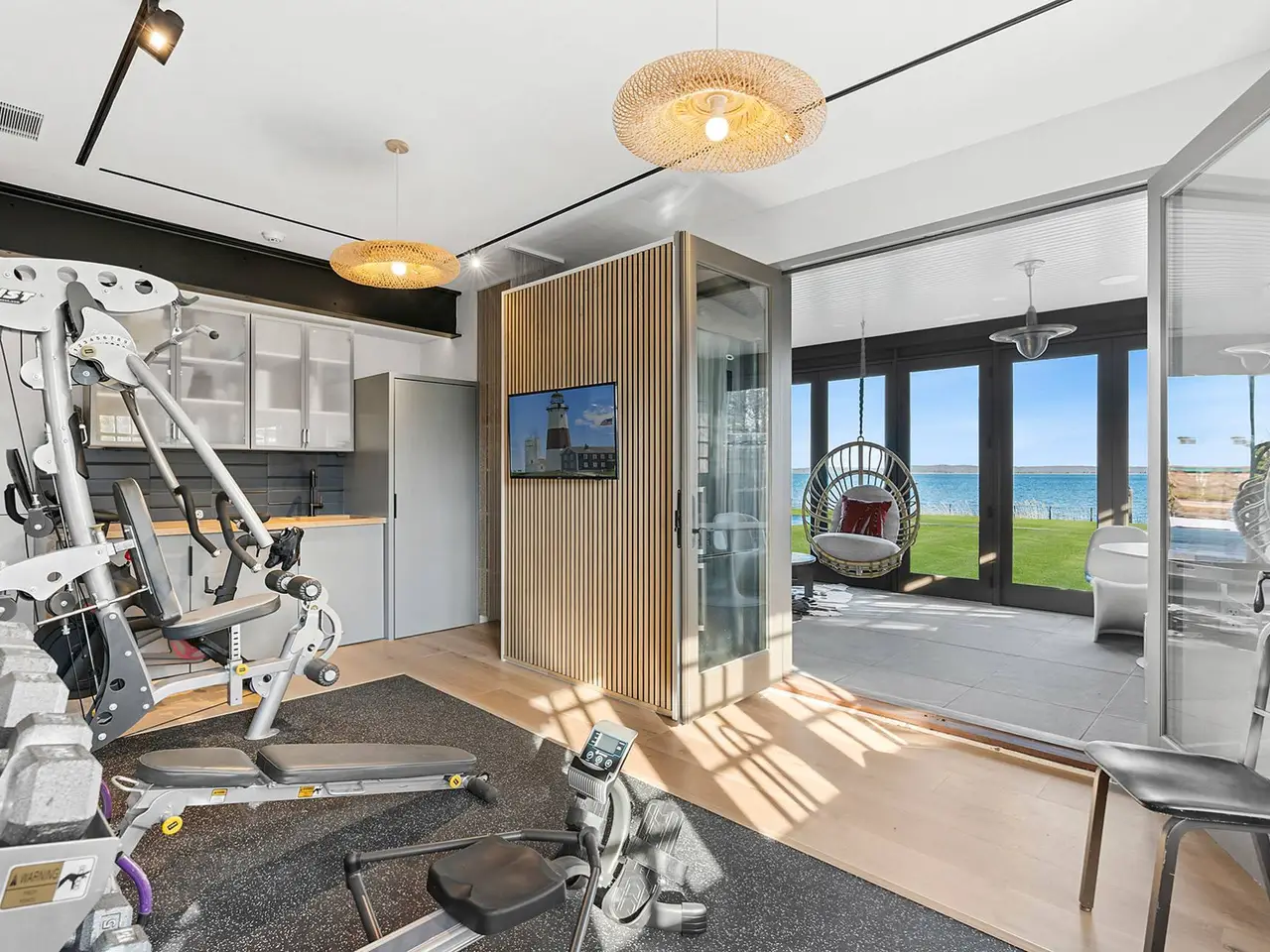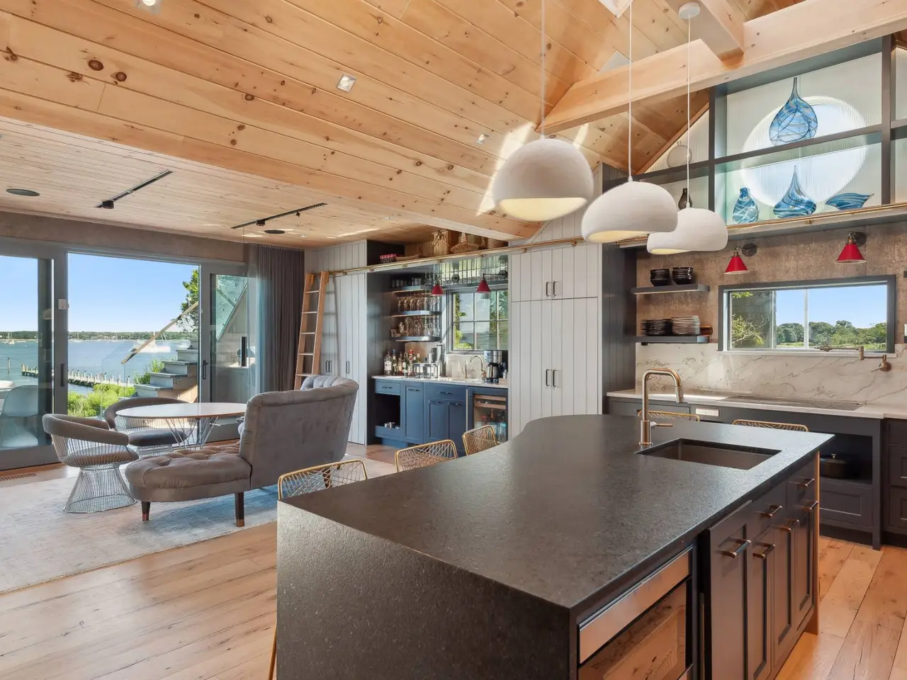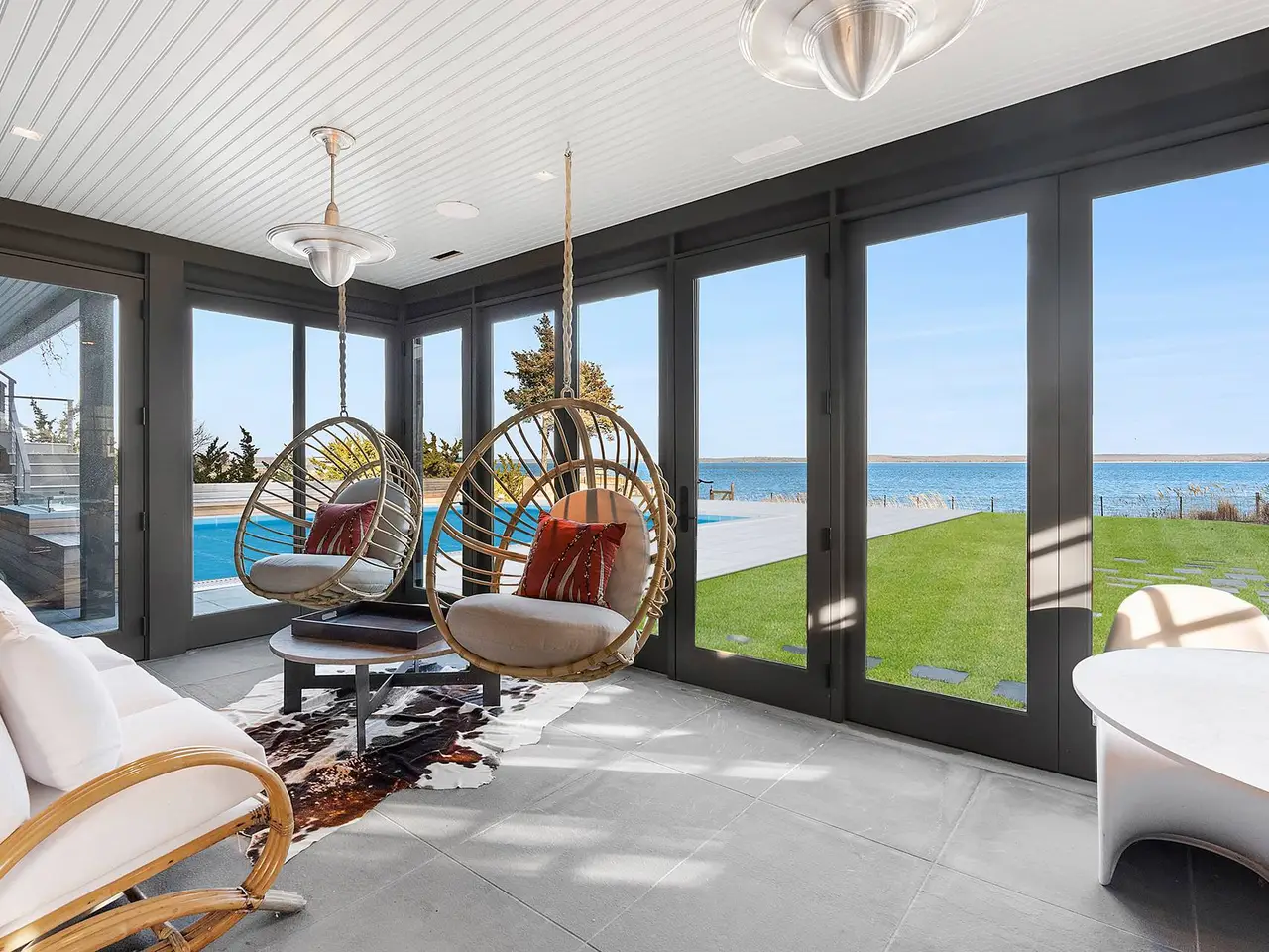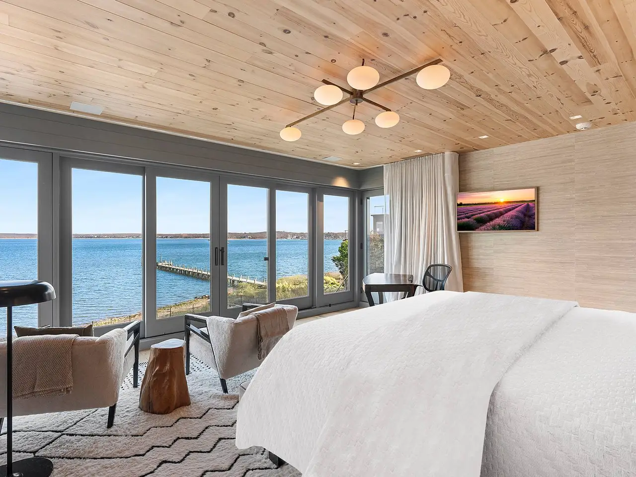 Experience the epitome of luxury in this newly renovated, modern waterfront property in Sag Harbor. This exceptional home offers breathtaking, unobstructed views of Sag Harbor Bay from every room thanks to walls of glass and an open-concept design. Relax in style on multiple private decks, around a saltwater infinity pool, or in the outdoor living room with a fireplace as you watch the yachts sail by. Inside, indulge in the gourmet kitchen, boasting top-of-the-line amenities that seamlessly flow into a cozy lounge area with unparalleled vistas. This designer masterpiece features five bedrooms, each with stunning water views, and 5.5 baths. The flexible layout allows for potential expansion, making room for a fifth bedroom or overflow space. Enjoy added luxuries like a gym, a roof deck, a finished loft play area with kitchenette, a media room, a steam shower, and wet bars. Custom tile work, radiant heated floors, a two-car garage with an electric vehicle charging station, and much more complete this unique home. Nestled in the private enclave of Bay Haven in North Haven, this jewel of a property is a rare find that combines sophisticated design with the serene beauty of its waterfront location. A boater's paradise awaits your arrival for your summer vacation!!