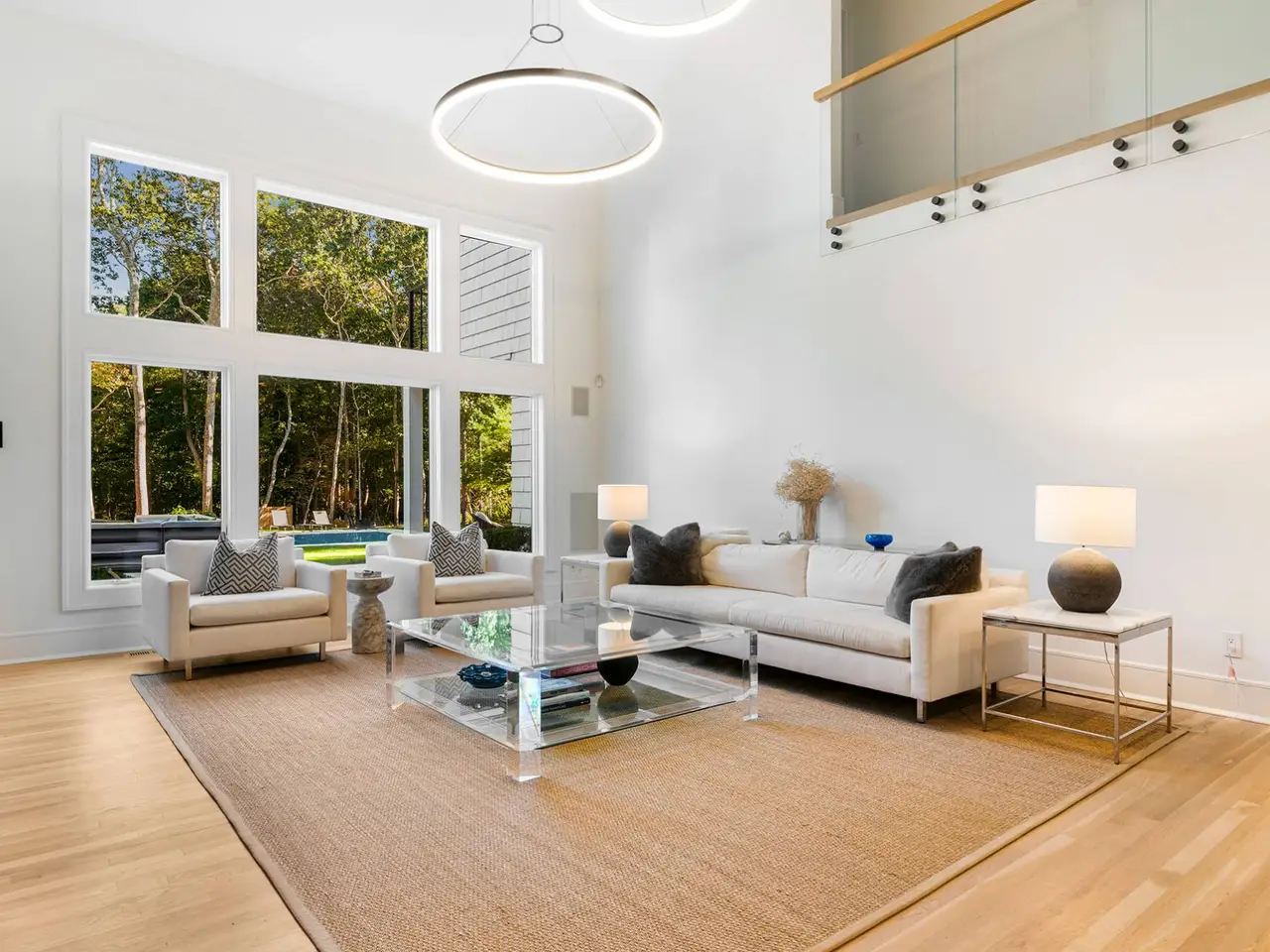 Located near Sag Harbor Village in the gated waterfront enclave of West Banks - North Haven, this stunning residence, sited on a private approximately 1.27-acre parcel offers five bedrooms and 4.5 baths across approximately 5,500 square feet of beautifully designed living spaces. Upon entry you are captivated by the soaring double height ceilings opening to an open floor plan spanning the whole first level. A living room and fireplace hearth flowing into a new modern chef's kitchen with a large center island , Sub-Zero and Wolf appliances and wide granite counters for entertaining. A great room featuring a modern jewel fireplace, a full wet bar and entertainment area with gorgeous Nanawall glass doors for indoor- outdoor living at its best. Glass panels enclose the wine storage room and line the floating catwalk on the second level. A first level plush primary suite opening out to lush gardens is a perfect addition. Your second level features a second primary suite with a designer bath, a large custom closet, and decking overlooking this stunning property. An open modern landing and three additional guest suites, complete this magnificent modern design. An upstairs bonus room located over the three-car large garage is a pleasant surprise. The finished lower-level offers a state-of-the-art theater with an entertainment and game area, and top of the line , fully equipped gym adding to this already perfect summer retreat. This private property has beautiful mature plantings with many sun drenched entertaining area's and expansive stone patio's surrounding the salt water, gunite infinity pool and spa. Additional amenities include a private community beach with gorgeous westerly sunsets , deep water dock, community tennis and just minutes to shops, renowned restaurants and marinas in Sag Harbor Village. A divine Hampton's retreat and summer living at its best.