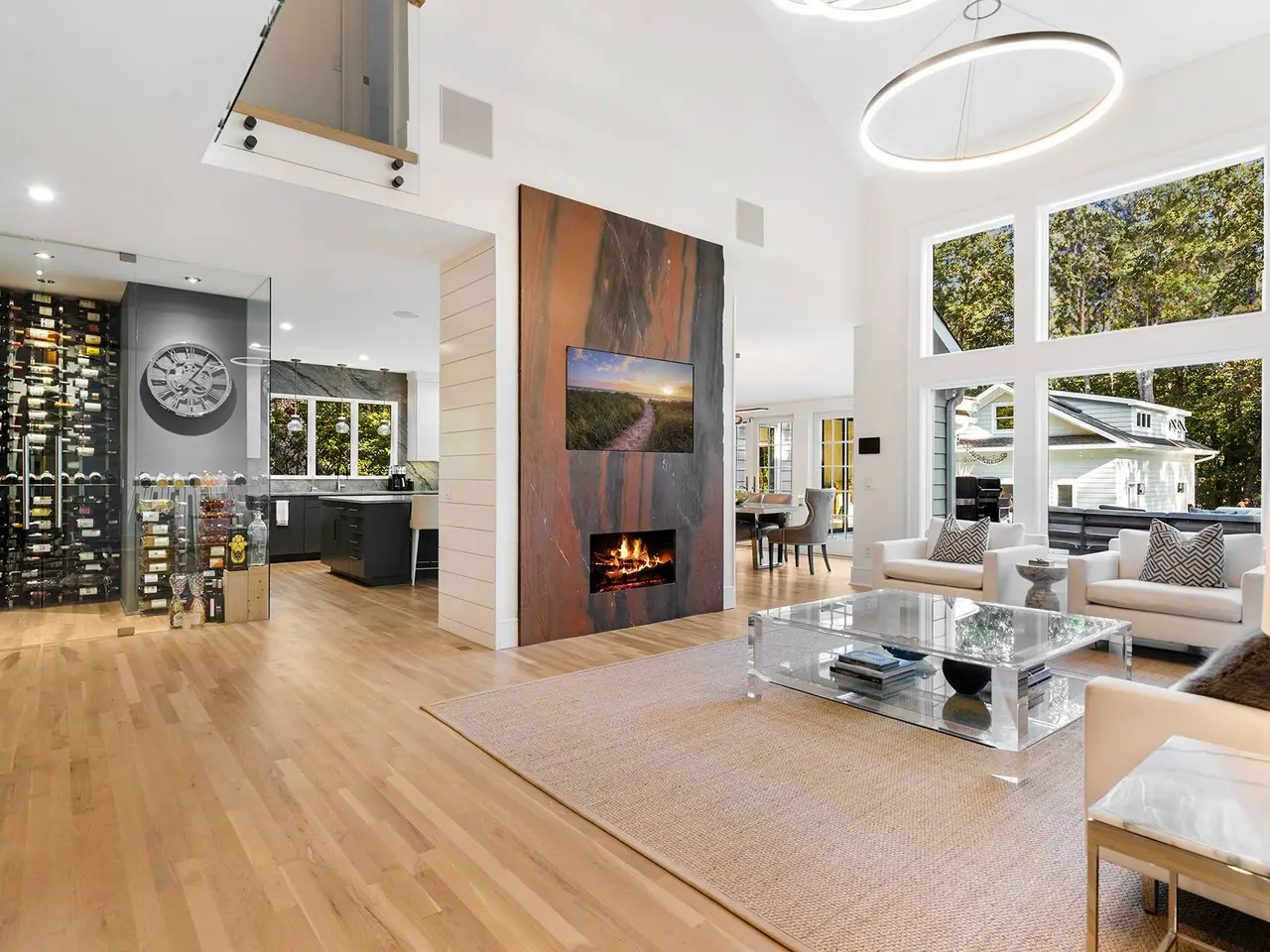 • Modern jewel fireplace in great room