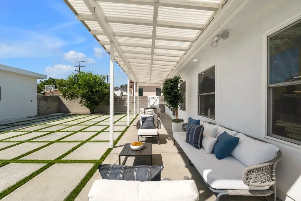Introducing this beautifully upgraded single-family home in North Hollywood! Spanning 1,650 square feet, this charming residence features 3 bedrooms and 2 bathrooms. Upon entering, you'll be captivated by the exquisite details, including stylish light fixtures, textured walls, and stunning marble countertops. The entire home boasts elegant engineered wood flooring and recessed lighting, creating a warm, inviting ambiance. Step into the cozy living room, complete with a sophisticated fireplace that adds character to the space. The first bathroom, conveniently located in the hallway, showcases a modern design with a floating vanity and a skylight that fills the room with natural light. The primary bedroom includes two spacious closets and an ensuite bathroom for added convenience. The gourmet kitchen is a chef's dream, equipped with a 36-inch professional-grade stove, luxurious marble countertops, a large island, and custom cabinetry. This area flows effortlessly into the open living and dining spaces, making it perfect for entertaining guests. The third bedroom, situated near the dining room, offers flexibility as a potential home office. The thoughtfully designed landscaping and hardscaping enhance the property’s appeal, all framed by a secure perimeter gate that ensures privacy and safety. Additionally, a detached garage at the back presents an exciting opportunity for a fully permitted ADU conversion (approximately 566 sq. ft.), with paid plans available for a 1-bedroom, 1-bathroom unit. This property is move-in ready and ideally located close to the vibrant NoHo Arts District, a variety of shopping and dining options, and major freeways, making it a perfect blend of luxury living and future income potential. Don’t miss out on this incredible opportunity!