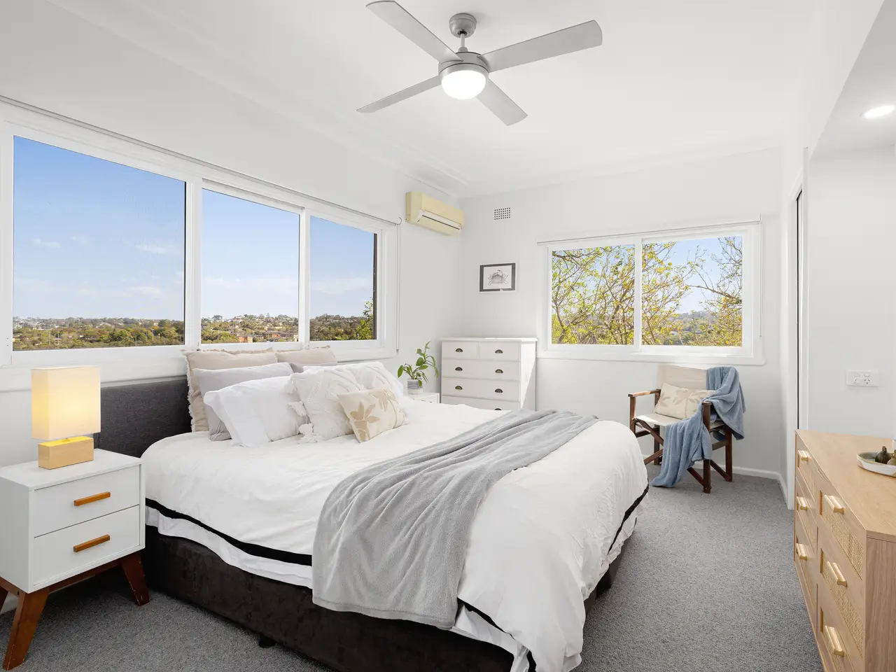 Elevated above a leafy cul-de-sac with sweeping views over picturesque Nolan Reserve to distant bushland ridges, this beautifully updated character bungalow provides an enchanting family haven of relaxed coastal charm and tranquil privacy. Sun-washed living and dining spaces connect with a deluxe stone island kitchen to form the vibrant social heart of the home, and glass bi-folds enable seamless flow to a covered rear entertainers' terrace and near level north rear lawns. Complete with a versatile near self-contained retreat and a private front verandah perfectly poised for drinking in sublime views and sunset cocktails, it sits on 613 square meters of lush landscaped tropical gardens within footsteps of playing fields and buses, and moments from schools, village shops, beaches and Manly's buzzing hub. - Elegant white rendered façade rising above lush tropical gardens - Wide verandah with sweeping views over parkland to distant leafy-ridge sunsets - Spacious sunlit living room, large dining area flows to the rear terrace via glass bi-folds - Sleek stone island kitchen with gas cooktops and a stainless steel Miele dishwasher - Large bedrooms with built-ins and ceiling fans, the main has a gleaming white ensuite - Ultra-modern full bathroom, high ceilings, timber flooring, air-con and a gas outlet - Refurbished basement retreat area with a large utility room, kitchenette and bathroom - Near level rear lawn with a synthetic lawn hidden at the rear, tailored for a trampoline - Sandstone-flagged terraces, paths and lush tropical gardens envelop the residence - 160 meters to Nolan Reserve, two minute stroll from buses to Manly Wharf and Warringah Mall - Eight minute wander to express city buses, nine minutes on foot to Freshwater Village - 15 minute walk to B-Line buses, easy few minutes by bicycle to Queenscliff/Manly Beach - Two car spaces plug LUG with a side path to a hot/cold beach shower and a basement laundry