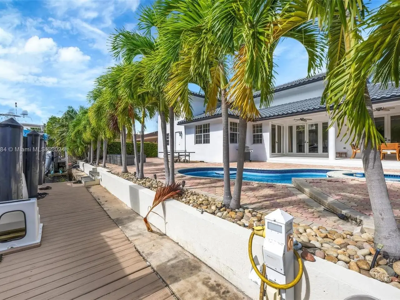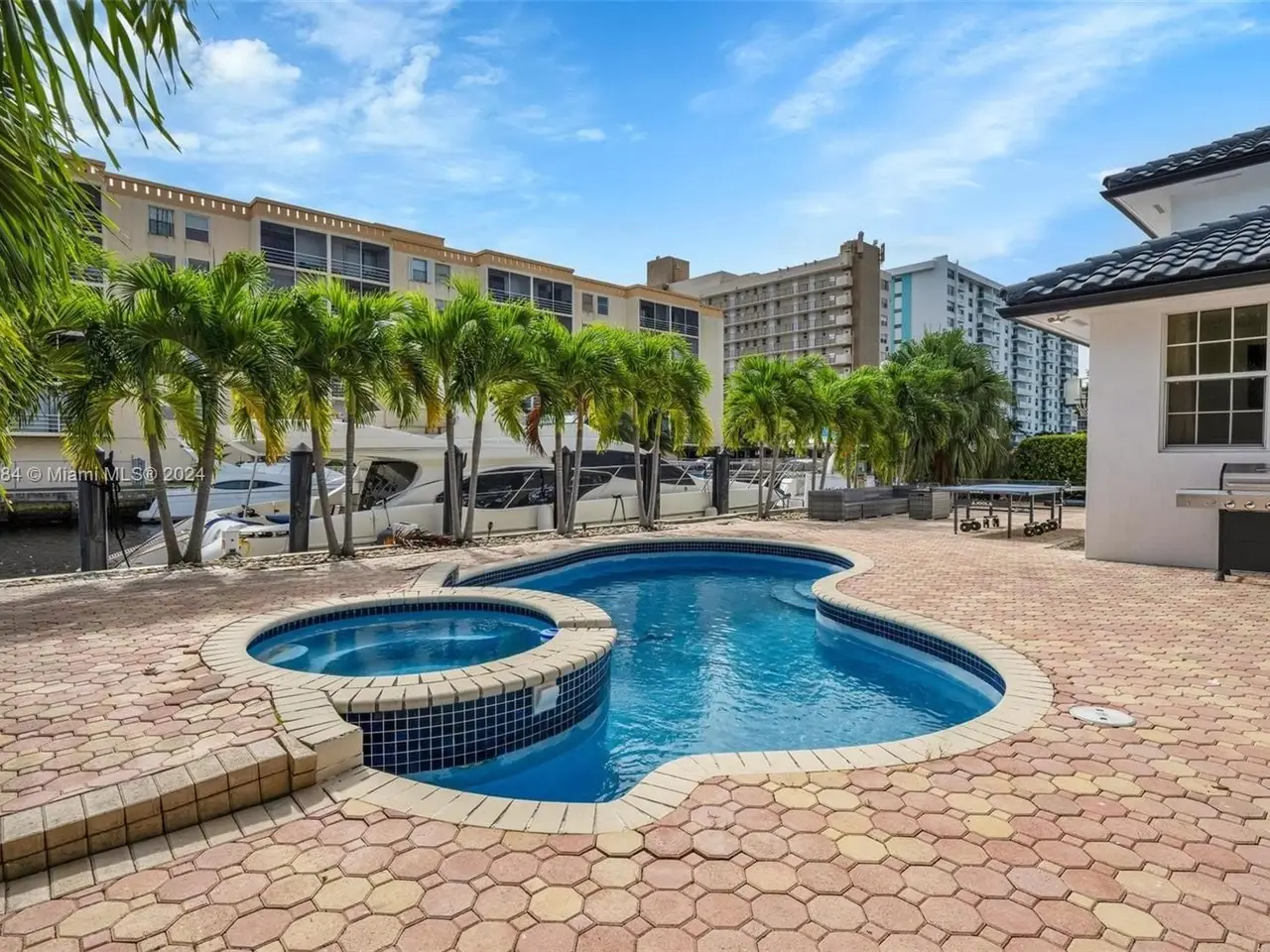 Welcome to this stunning 5-bedroom, 4-bathroom waterfront masterpiece in the prestigious, guard-gated community of Eastern Shores. With direct ocean access and no fixed bridges, this property offers the ultimate in luxury and convenience for boating enthusiasts, featuring a private dock capable of accommodating an 80-foot yacht and a Wave runner elevator lift for added water sport enjoyment. Designed with modern elegance, this home boasts soaring high ceilings, exquisite marble flooring, and premium granite countertops throughout. Hurricane-impact windows ensure safety and peace of mind, while the home is also equipped with 4 separate A/C zones, a heated pool, and a relaxing spa to elevate your living experience.