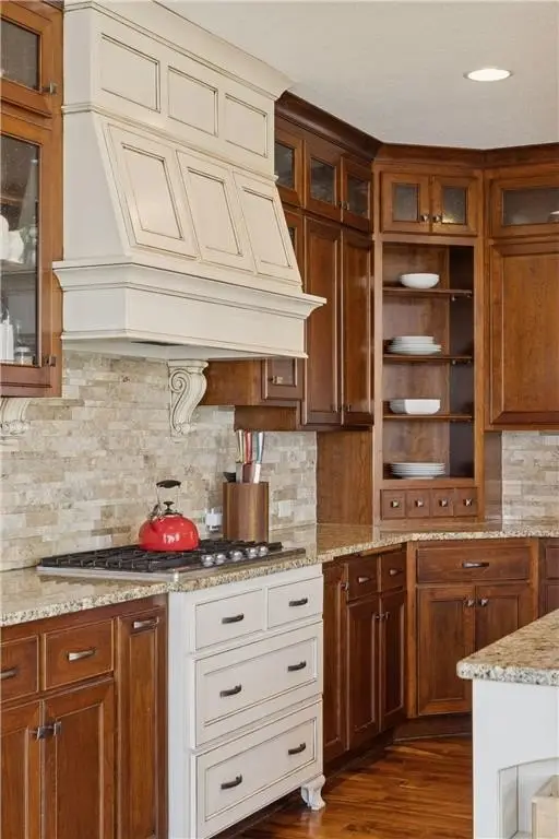 Beautifully finished 2-story home set on a quiet cul-de-sac with a private, fenced backyard overlooking serene nature views. Rich architectural details, wood floors, and sun-filled spaces create a warm, move-in-ready setting. The main level features a grand 2-story Great Room with a full wall of windows and a 2-sided fireplace shared with the inviting Sunroom. The large Kitchen impresses with an enameled island with breakfast bar, walk-in pantry, double wall ovens, and furniture-style cabinetry for the cooktop. Formal and Informal Dining spaces offer flexibility for everyday living and gatherings. A spacious Mud Room provides built-in seating, open locker-style storage, and its own walk-in closet, plus a convenient half Bath. Upstairs, the Primary Suite feels luxurious with a fireplace-accented seating area and an inset ceiling for added definition. The private spa-like Bath includes dual vanities, soaking tub, separate shower, and private water closet plus a large closet with an organized closet system. Bedroom 2 has a full en-suite Bath with tub, while Bedrooms 3 and 4 share a Jack & Jill Bath. The large upper-level Laundry features upper cabinets and open shelving under the counter for easy organization. The walkout lower level adds exceptional versatility - ideal for multi-generational living or effortless entertaining. Highlights include a 5th Bedroom, 3/4 Bath, Wet Bar with fridge & seating, media-ready Family Room, Recreation Room, Flex/Storage Room, and built-in cabinetry. Step out to the expansive Patio or enjoy the newer Deck above. Neighborhood amenities just steps away include an outdoor pool, clubhouse, walking trails, and an outdoor sports court. A welcoming covered front porch completes this exceptional home!