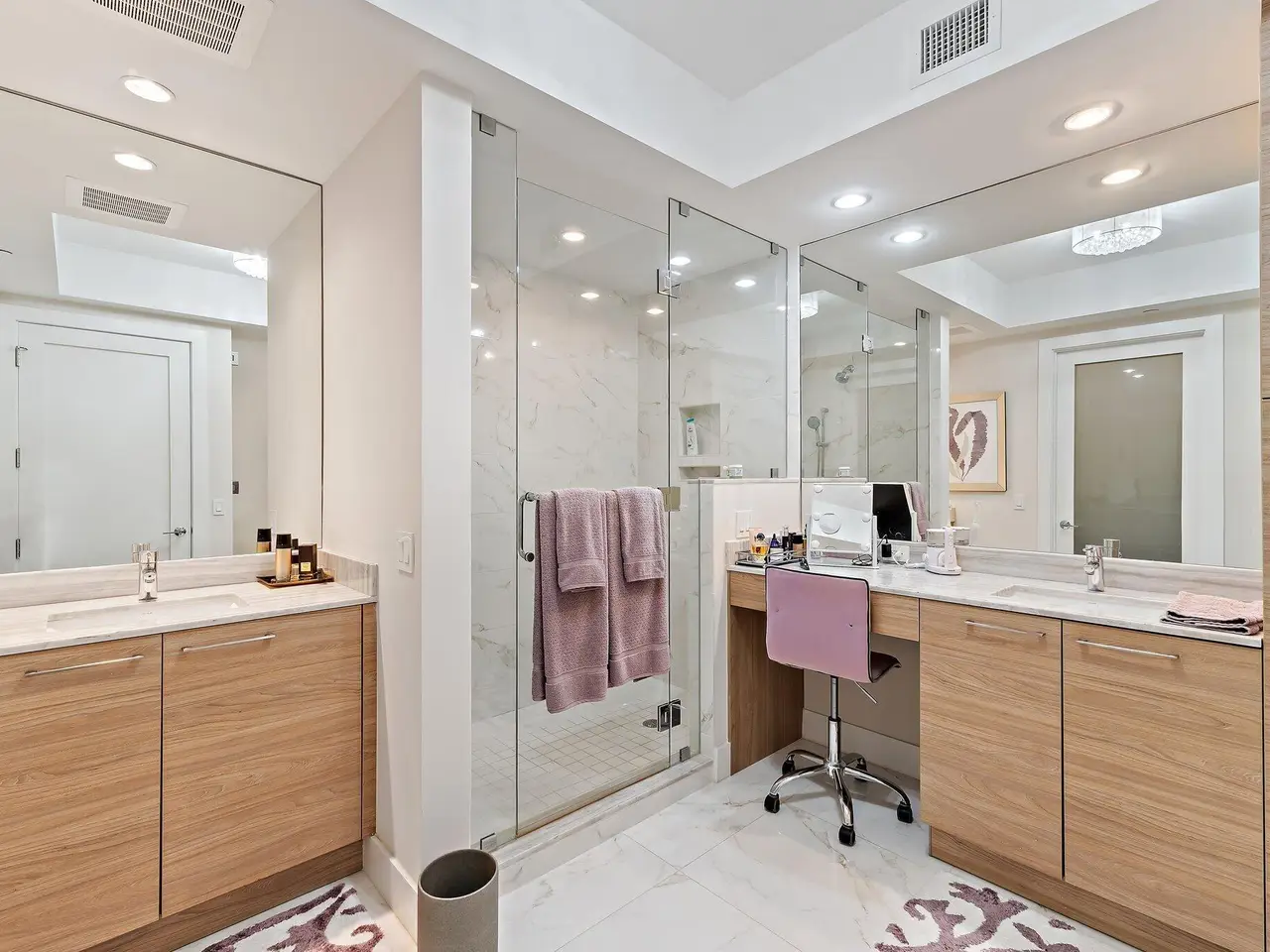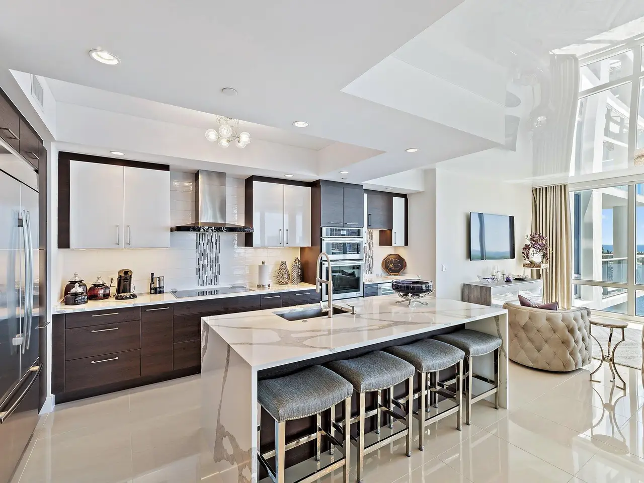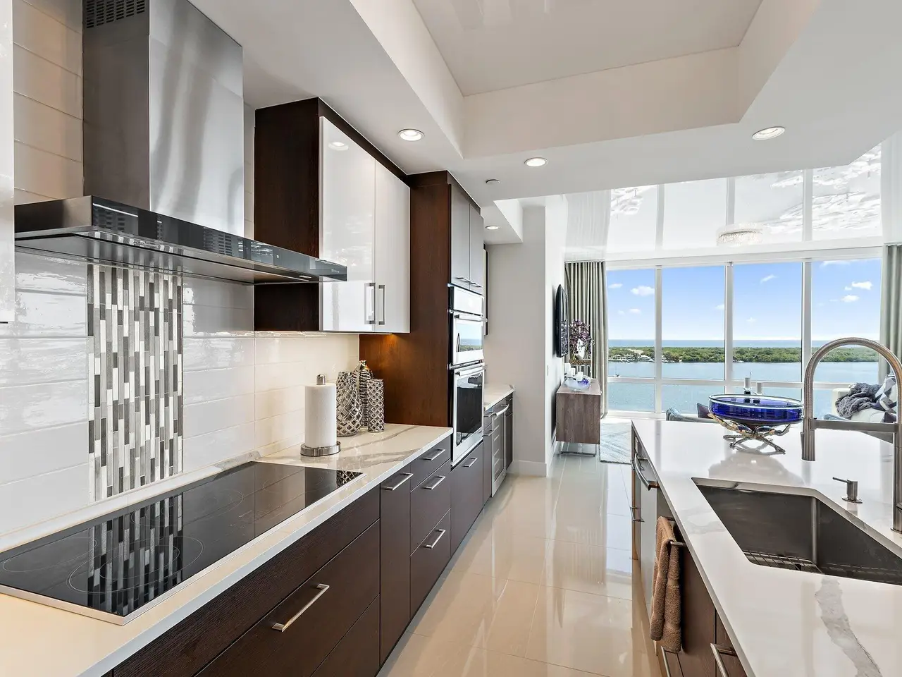Enjoy amazing views to the ocean, Lake Worth Lagoon, and as far South as The Breakers Hotel in Palm Beach from this ultra-luxury ''Cobalt'' floor plan in Water Club. This unit has a den/office that could serve as a 3rd bedroom with use of the hall Power Room on those rare occasions when you have an extra guest. Best of all, Water Club has world class amenities like 24/7 manned and gated security, private elevator lobbies, under building parking, a private clubhouse with bar and billiards table, resort style pool, day docks, lap pool, fitness center with yoga/pilates studio, spa, fire pits, pickle ball court, guest suites, and more..
