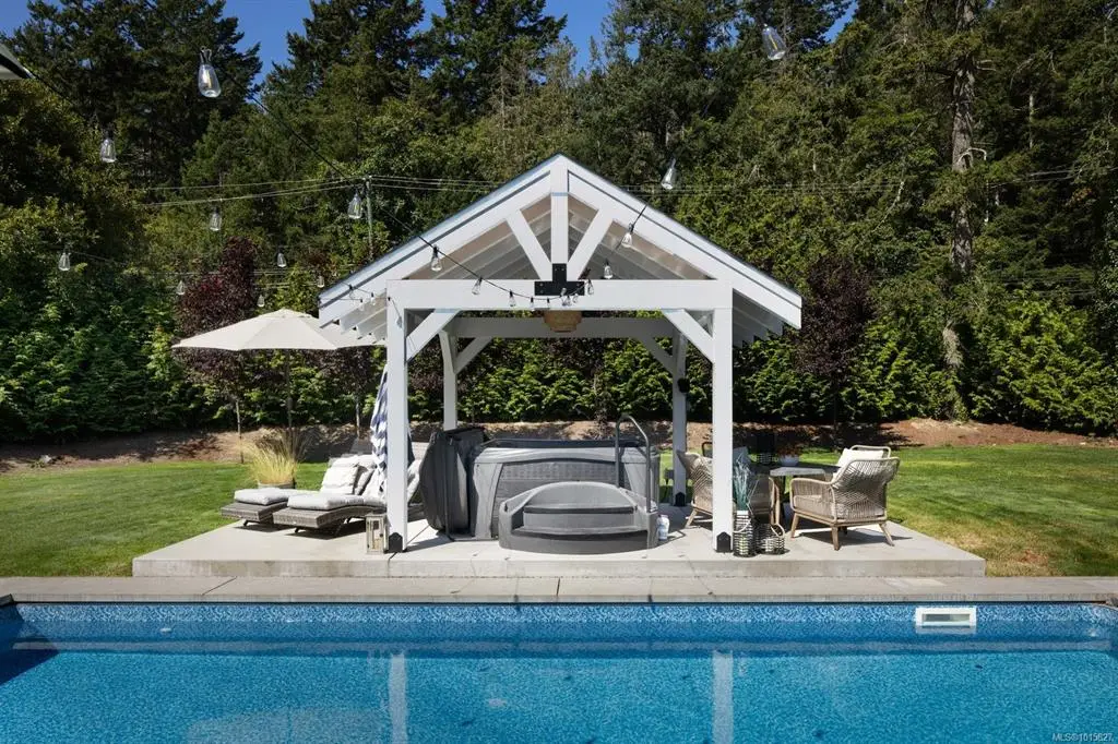 Beautiful custom home situated on a private .57-acre property in the prestigious Shoal Harbour Estates. This 5 bed/4 bath + office residence spans 3,986 sq.ft and features timeless design with spacious open-concept living, a gourmet kitchen with walk-in pantry, and soaring 20’ ceilings in the great room. The thoughtful layout includes a main-level primary suite, large mudroom, and flexible spaces perfect for family living or hosting guests. A one-bedroom self-contained suite with 9’ ceilings functions as a private carriage home. The west-facing backyard is an entertainer’s dream with an in-ground pool, outdoor kitchen, covered patio, and lush landscaping. A triple car garage and substantial driveway provide ample parking. Conveniently located just minutes to the Town of Sidney, BC Ferries, and YYJ. Outstanding quality and value. 3D Virtual tour and online brochure available.