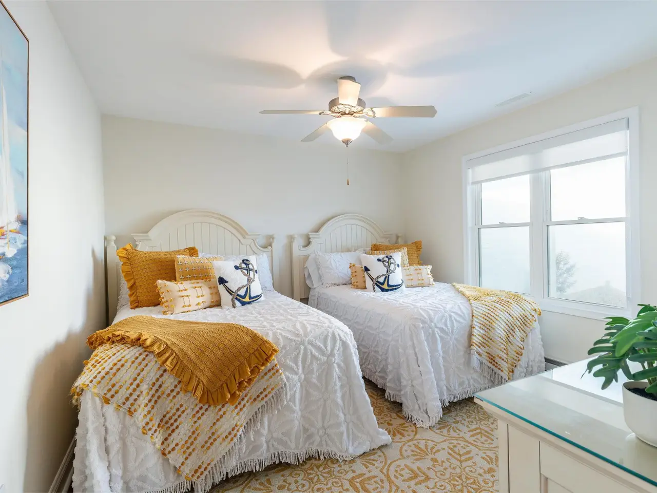 Your North Wildwood Sanctuary by the Sea! Step inside and feel the calm of coastal living wash over you. This stunning, fully updated North Wildwood retreat perfectly captures the magic of life by the ocean - where morning sunlight glimmers off the waves, the scent of salt air drifts through open doors, and every day feels like a seaside escape. For the current owners, this has been a peaceful haven - a place to gather with family, unwind after long days, and wake up to the soft sound of the surf. With 4 spacious bedrooms (including 2 luxurious master suites), 3 full baths, and 2 powder rooms, plus a finished lower-level suite with kitchenette and private entrance, this home blends comfort, elegance, and functionality in every square foot. The heart of the home - a bright, white chef's kitchen - is an entertainer's dream, featuring a 7.5' quartz island, Frigidaire Professional appliances, double pantries, an exquisite designer backsplash, and a coffee bar with a plumbed-in Keurig and wine fridge. It's the perfect place to cook, connect, and create memories. Open the sliders and let the sea breeze in as you relax on one of four expansive decks - three with sweeping ocean views - where sunrises are breathtaking, and Friday night fireworks feel close enough to touch. Upstairs, the primary suite is your private retreat in the sky, with panoramic ocean views and a marble spa bath designed for pure indulgence. Every detail of this home speaks of quality and care - from the gas fireplace with full stone surround to the custom window treatments, luxury vinyl flooring, and beautifully updated marble baths. The fenced backyard is ideal for entertaining, featuring a built-in stone dining table, outdoor shower, and lush new sod with irrigation. You'll love starting your mornings with coffee on the back deck, strolling across the street to Russo's Market, and being just steps from the beach and boardwalk. This is where luxury meets laid-back coastal charm - where every moment feels like vacation and every breeze reminds you, you're home. Don't miss this rare opportunity to own a piece of paradise. Come experience your private beachside oasis - your North Wildwood dream home awaits!